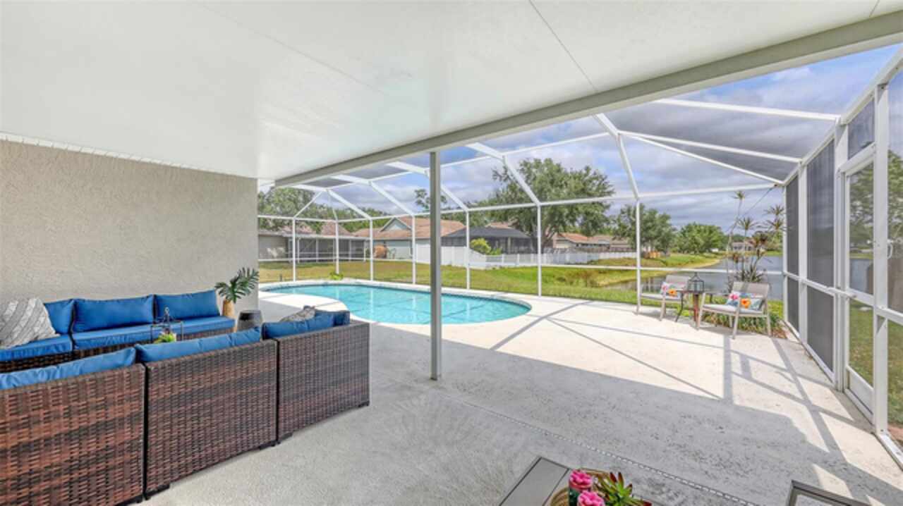 Charming Lakefront Pool Home in Gates Creek! Discover this stunning 4-bedroom, 2-bathroom home with an additional den/office, offering beautiful lake views and a private pool. The heart of the home features a spacious great room with a large granite breakfast bar, perfect for entertaining, while the stainless steel appliances and tile floors add modern elegance. The eastern exposure fills the home with natural light, creating a warm and inviting ambiance. Enjoy the tranquility of lakefront living from your own backyard, complete with a covered lanai and pool deck, ideal for relaxing or hosting guests. The home also offers a 2-car garage and easy access to State Road 64, providing convenience to shopping, dining, and top-rated schools. Recent Updates: New roof in 2024. New water backflow.