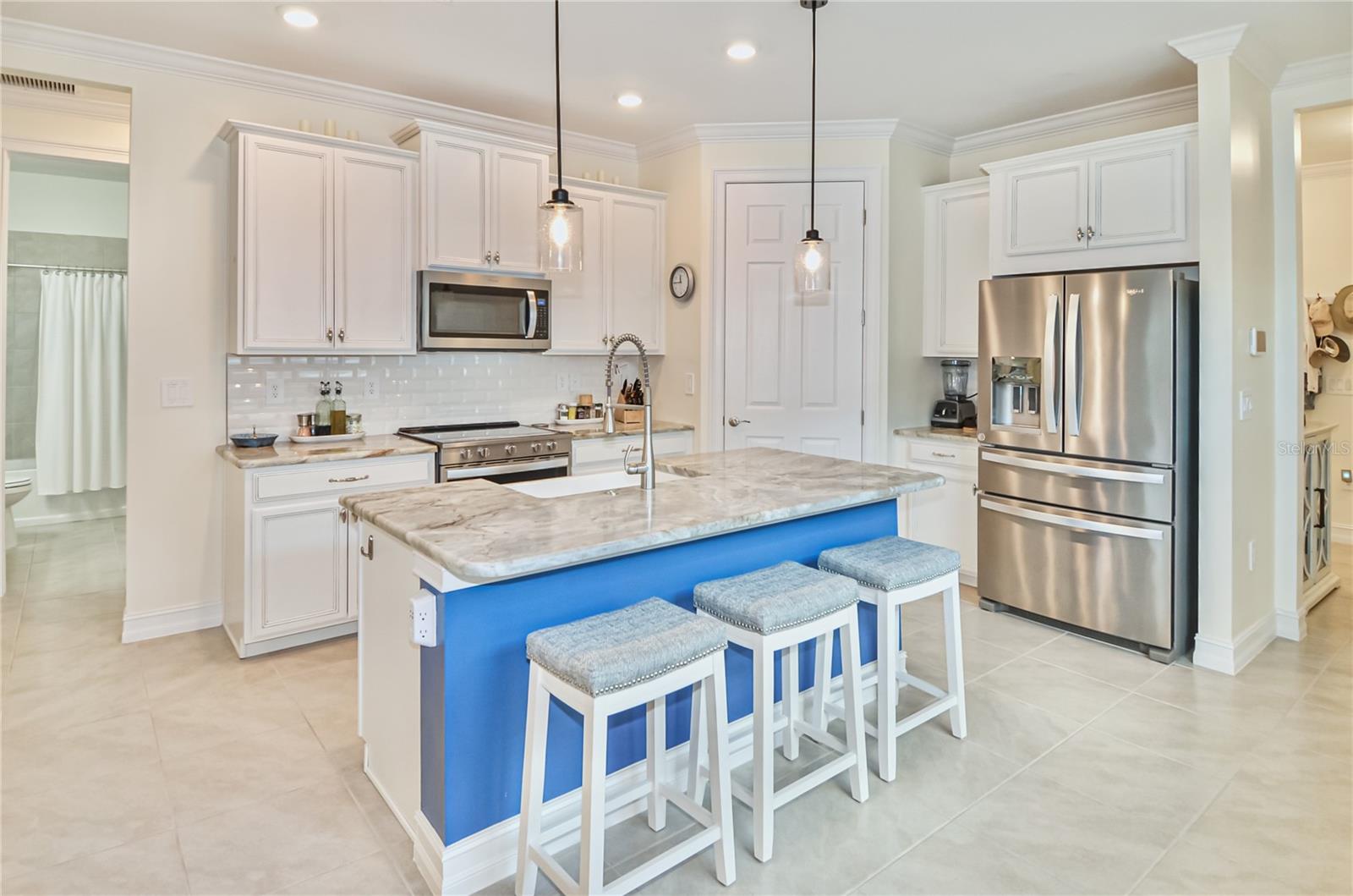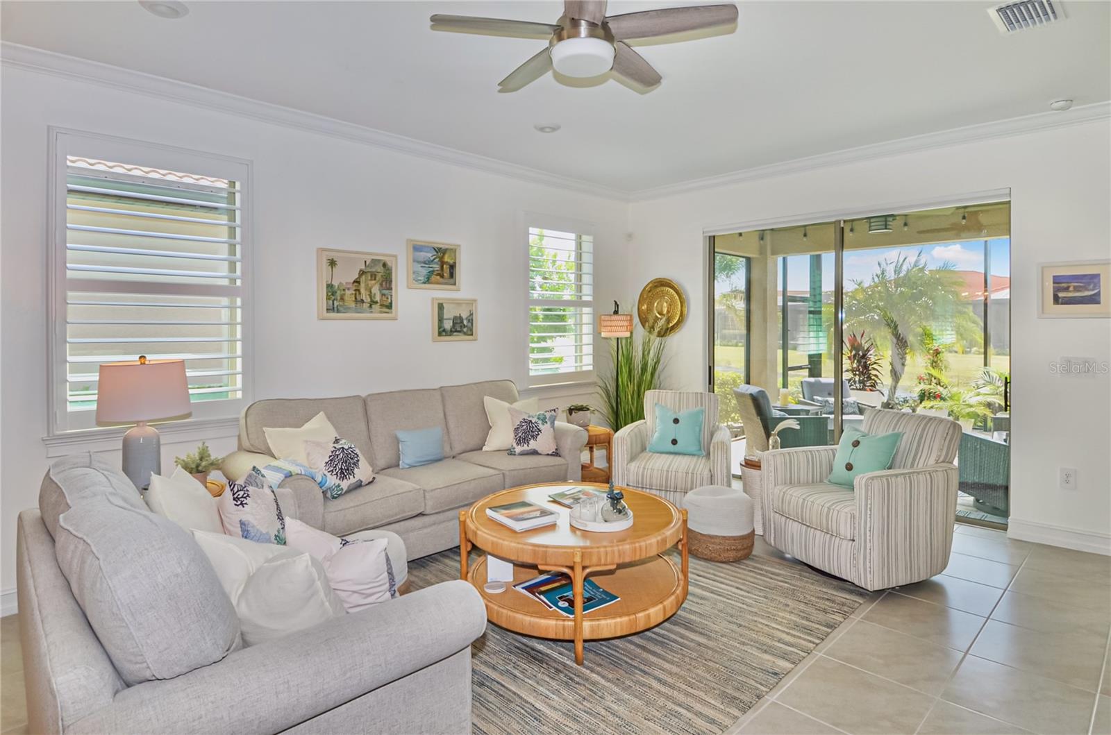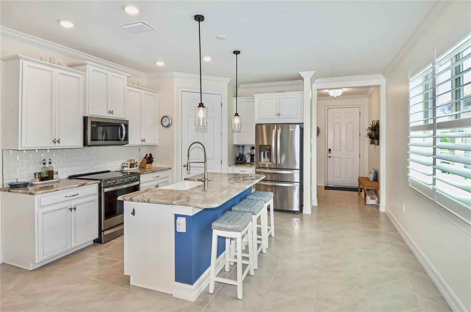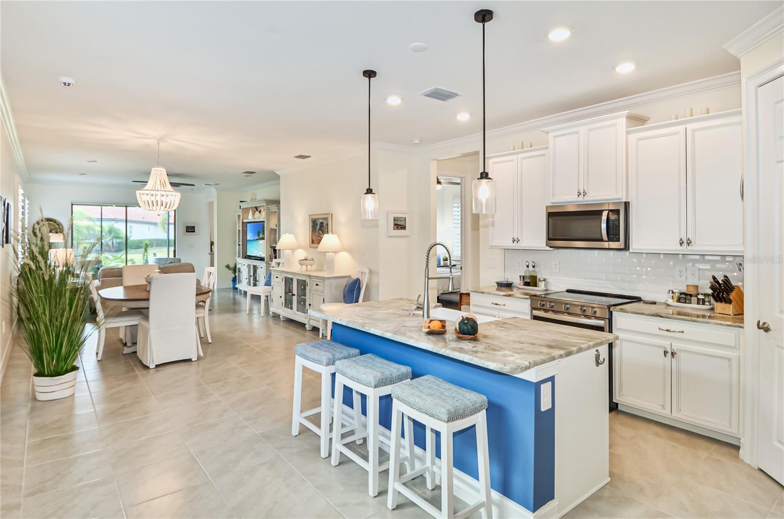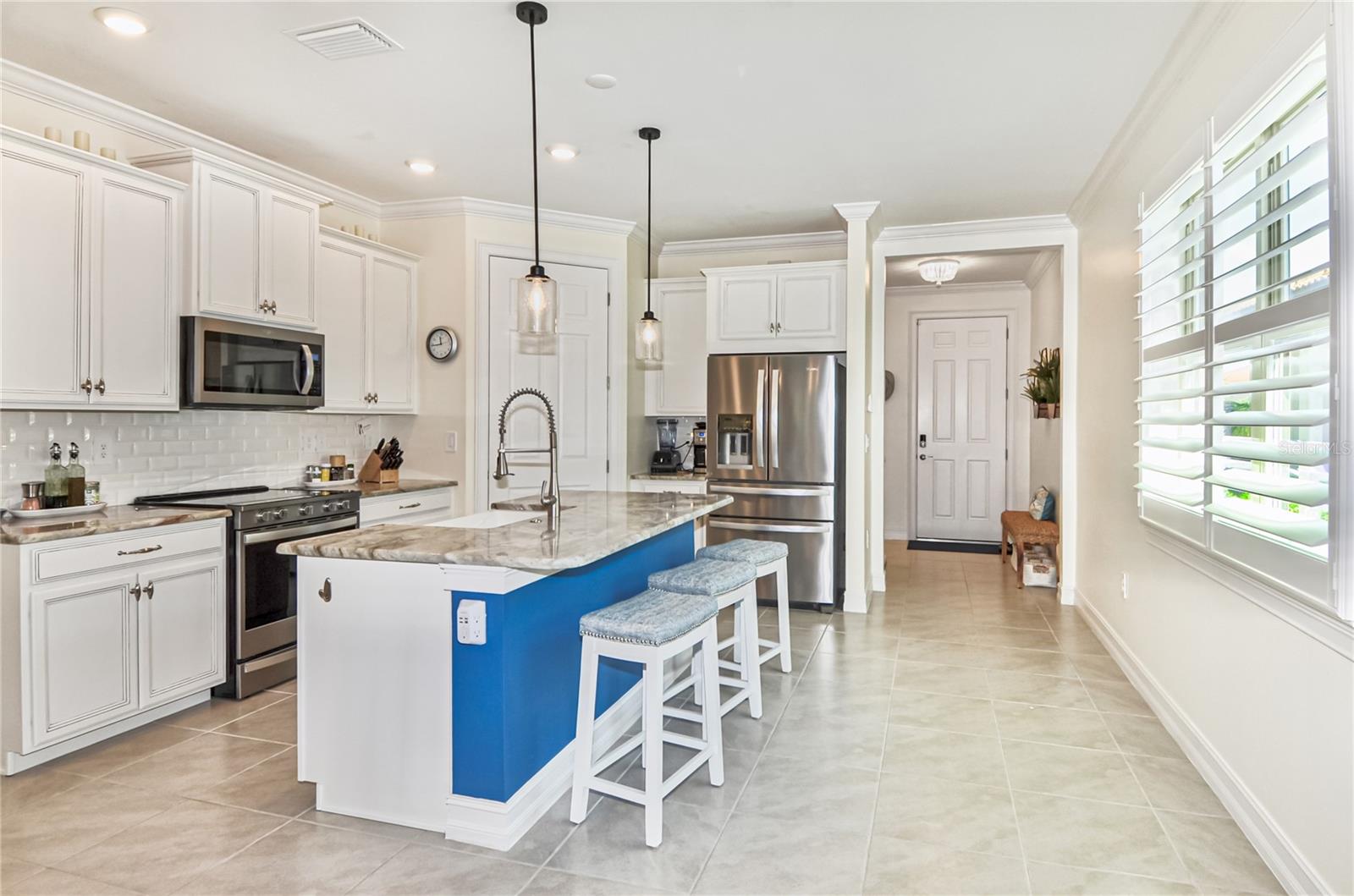 Immaculate Toscana Isles Home With Lake View! Welcome to this beautifully maintained 3-bedroom, 2-bath, 2-car garage home located in the highly sought-after, gated community of Toscana Isles in Nokomis, Florida. From the moment you arrive, the home’s pristine landscaping and pavered driveway make an impressive first impression, showcasing true curb appeal. Inside, you’ll find a bright open-concept layout that seamlessly connects the kitchen, dining, and living areas, perfect for modern living and entertaining. The modern style kitchen features stainless steel appliances, a large island with breakfast bar seating, recessed-panel cabinetry, granite stone countertops, subway tile backsplash, porcelain farmhouse sink, walk-in pantry, and recessed and pendant lighting for a warm, inviting ambiance. The split-bedroom floor plan provides privacy and convenience. The primary suite is a tranquil retreat with a walk-in closet located inside the en suite bathroom featuring dual sinks, a water closet, walk-in shower, and generous vanity storage and counter space. The additional two bedrooms each have built-in closets and share a guest bathroom with a garden tub/shower combo. Enjoy Florida living at its finest from the oversized screened lanai, where sliding glass doors lead you to a relaxing outdoor space with covered seating offering breathtaking views of the expansive lake and great bird watching. Additional highlights include a laundry room, crown molding, interior plantation shutters, and motorized blinds for the sliding glass doors to the lanai, ceiling fans, dimmer light switches, and freshly painted interior. Home also includes motorized outdoor hurricane screens for the lanai. Note that a security system is available with an activated subscription, and the property allows room for a pool to be built. Residents of Toscana Isles enjoy resort-style amenities, including walking sidewalks, a playground, dog park, tennis and pickleball courts, bocce ball, a kayak launch, and a stunning clubhouse featuring a gathering room, billiards room, library, fitness center, community kitchen and bar, and an infinity-edge pool overlooking the sparkling lake. This home combines elegance, functionality, and community living—making it the perfect Florida retreat or year-round residence. Home is just a few miles from I-75, Sarasota Memorial Hospital - Venice, multiple golf courses, shopping, grocery, and restaurants, as well as Historic Downtown Venice, and multiple Gulf beaches. Don't miss the opportunity to experience luxury living with the convenience of the amazing amenities at Toscana Isles!