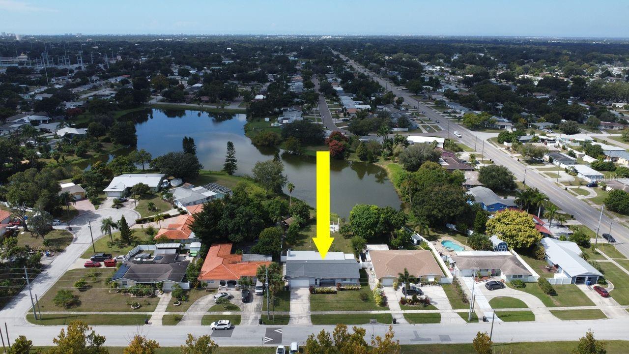 Under contract-accepting backup offers. Lakefront Home with Breathtaking Sunsets on Harshaw Lake #2 in No Flood Zone X [never flooded]. Welcome to this beautifully maintained 3-bedroom, 2-bathroom single-family home with a spacious 2-car garage, perfectly situated on a picturesque quarter-acre lot overlooking the lake. This residence offers the ideal combination of elegance, comfort, and tranquility, all while being just minutes from downtown St. Petersburg, major highways and the many beautiful gulf coast beaches. From the moment you arrive, the curb appeal sets the tone for what awaits inside. Step through the front door into a bright, sun-splashed floor plan designed for both everyday living and effortless entertaining with a front to back view of the lake. The living, dining, and kitchen areas flow seamlessly, highlighted by rich Brazilian Cherry hardwood floors that bring warmth and sophistication throughout the main spaces. The kitchen is a true centerpiece, featuring custom wood cabinets with soft-close drawers, granite countertops, and abundant workspace for the home chef. Both bathrooms have been tastefully updated with modern finishes and thoughtful details, creating a spa-like atmosphere. Relax in the inviting family room, finished with cozy carpet underfoot, a wood burning fireplace and large windows framing serene lake views. Every room in this home feels open and connected to nature, allowing you to enjoy the tranquil beauty of the outdoors from within. Step outside to your amazing backyard retreat, a private haven perfect for morning coffee, weekend barbecues, or simply unwinding at sunset. The expansive lawn slopes gently toward the lake, offering plenty of space for gardening, play, or future outdoor enhancements such as a fire pit, patio or pool. The view of Harshaw Lake #2 provides the ultimate backdrop for relaxation, and the spectacular sunsets here are truly unforgettable. The avocado and mango trees add the finishing touch to the back yard enjoyment. Over the past five years, the homeowners have invested in numerous major upgrades, ensuring peace of mind and long-term value. Recent improvements include a new roof (2025), 4 ton HVAC system (2024), energy-efficient windows, water heater, and modern lighting. These updates complement the quality finishes throughout, blending classic craftsmanship with today’s modern comfort. The lake itself is a natural masterpiece, home to graceful birds, gentle breezes, and sparkling reflections that change with the light. Whether you’re watching the sunrise shimmer on the water or the sky blaze in vibrant colors as the sun sets, every day offers a front-row seat to Florida’s natural beauty. The gentle sound of the water and the tranquil setting create an atmosphere of calm that makes this home truly special. This exceptional property blends timeless style with thoughtful upgrades and a setting that feels like a year-round vacation. Whether you’re looking for a peaceful place to call home or a stunning space to entertain family and friends, this lakefront gem delivers it all. Come experience the perfect combination of comfort, quality, and waterfront beauty, your dream home on Harshaw Lake #2 awaits.