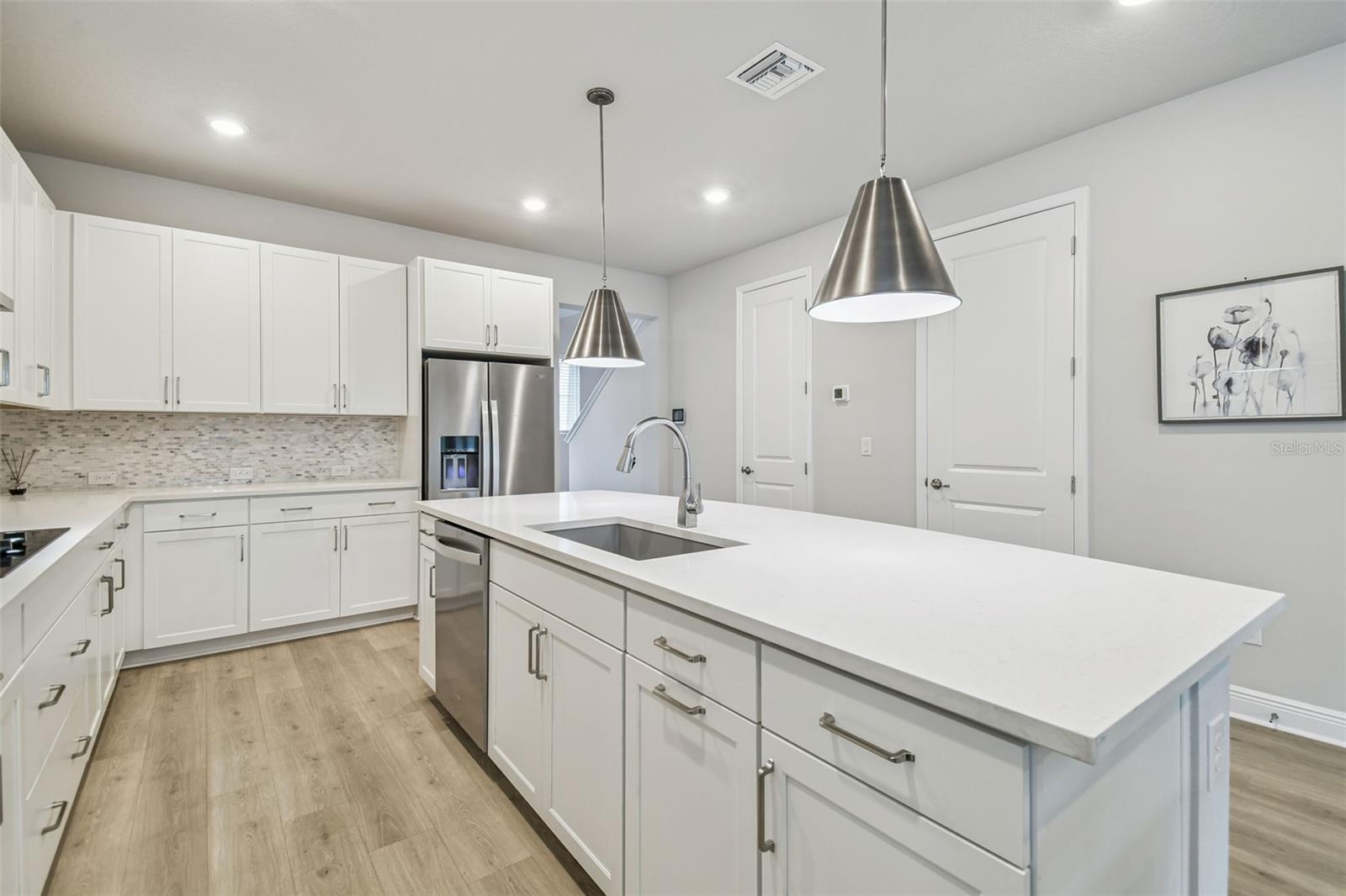 Welcome home to this nearly new townhome in a prime location, near entertainment districts, Airport, UT and minutes from Downtown. Before you even step inside, you’ll appreciate the rare lifestyle this home offers—a townhome that feels like a single-family home, with only one shared wall, a FENCED YARD, DETACHED 2 CAR GARAGE, and NO HOA. Inside, the enclosed study provides the perfect setting for a home office, while upstairs, you’ll find three additional bedrooms. The open-concept great room is ideal for entertaining, featuring a spacious counter-height kitchen island, crisp white cabinetry, quartz countertops, and a walk-in pantry. The kitchen flows seamlessly into the family room, where a wall of windows fills the space with light and overlooks the rear porch and PRIVATE YARD. It’s the perfect balance of outdoor enjoyment with low maintenance. The oversized owner’s suite boasts a tray ceiling, abundant natural light, and a luxurious bathroom with a frameless glass walk-in shower, double vanities, a private water closet, and a large walk-in closet. Throughout the home, thoughtful upgrades add comfort and style, including flush-mount LED lighting, an electric car charger, a painted garage floor with anti-skid flakes, designer backsplash tile, and built-in shower niches. With a cool, neutral color palette that complements any décor and a location within the highly sought-after A RATED Plant High School District, this home combines modern efficiency, timeless style, and convenience into one incredible opportunity.
