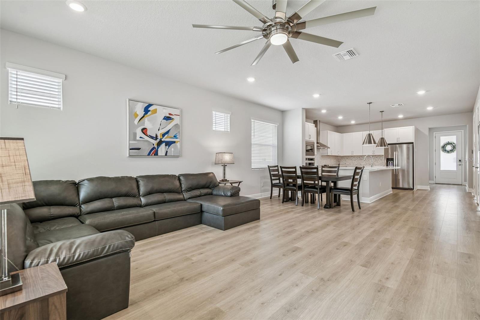 Ceiling Fans(s), High Ceilings, Living Room/Dining Room Combo, Open Floorplan, Stone Counters, Window Treatments