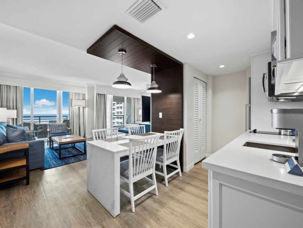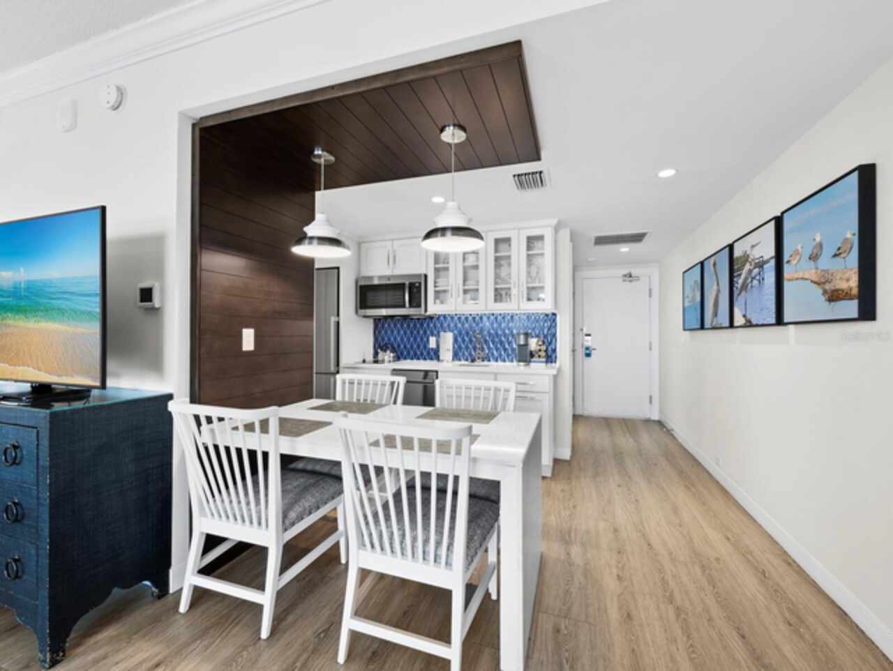 Located behind the gates of the highly desirable Longboat Key Club, this 1BR/1BA Club Suite at Inn on the Beach offers a unique opportunity to own within the prestigious Longboat Key Club Resort. Spanning 650 sq. ft., this residence provides both convenience and privacy, with an expansive covered terrace offering peaceful Gulf views while keeping you close to every amenity. Completely renovated and meticulously styled, the interior pairs warm wood accents with neutral tones, complemented by faux wood tile floors flowing throughout. Dual sliders frame shimmering Gulf waters and invite natural light into the living space. The kitchen is a standout, with stone countertops, harmonizing cabinetry with glass panel accents and a colorful tile backsplash that adds just the right touch of vibrancy. Off the bedroom space, a beautifully updated bath features all-white cabinetry, a separate water closet and a glass walk-in shower with striking tilework. For added ease, in-unit laundry utilities are included. This unit participates in the Resort Rental Program and has a healthy rental history, with nightly rentals allowed, making it both an enjoyable retreat and a strong investment. As an owner, you’ll have access to the exclusive amenities of the 410-acre Longboat Key Club, including 45 holes of championship golf, 20 Har-Tru tennis courts at the award-winning Tennis Gardens, a full-service marina, private Gulf-front beach with umbrellas and attendant service, a world-class fitness and wellness center, spa and five private dining options. Recently renovated guest services, dining areas, and resort amenities have elevated the experience even further, earning accolades such as the AAA Four-Diamond Award and recognition from Condé Nast Traveler as a Top Florida Resort.