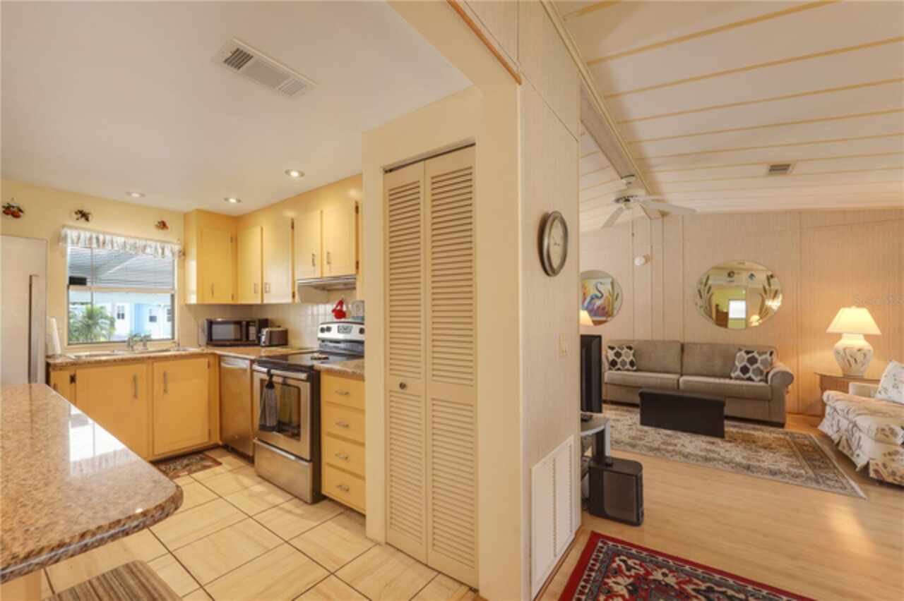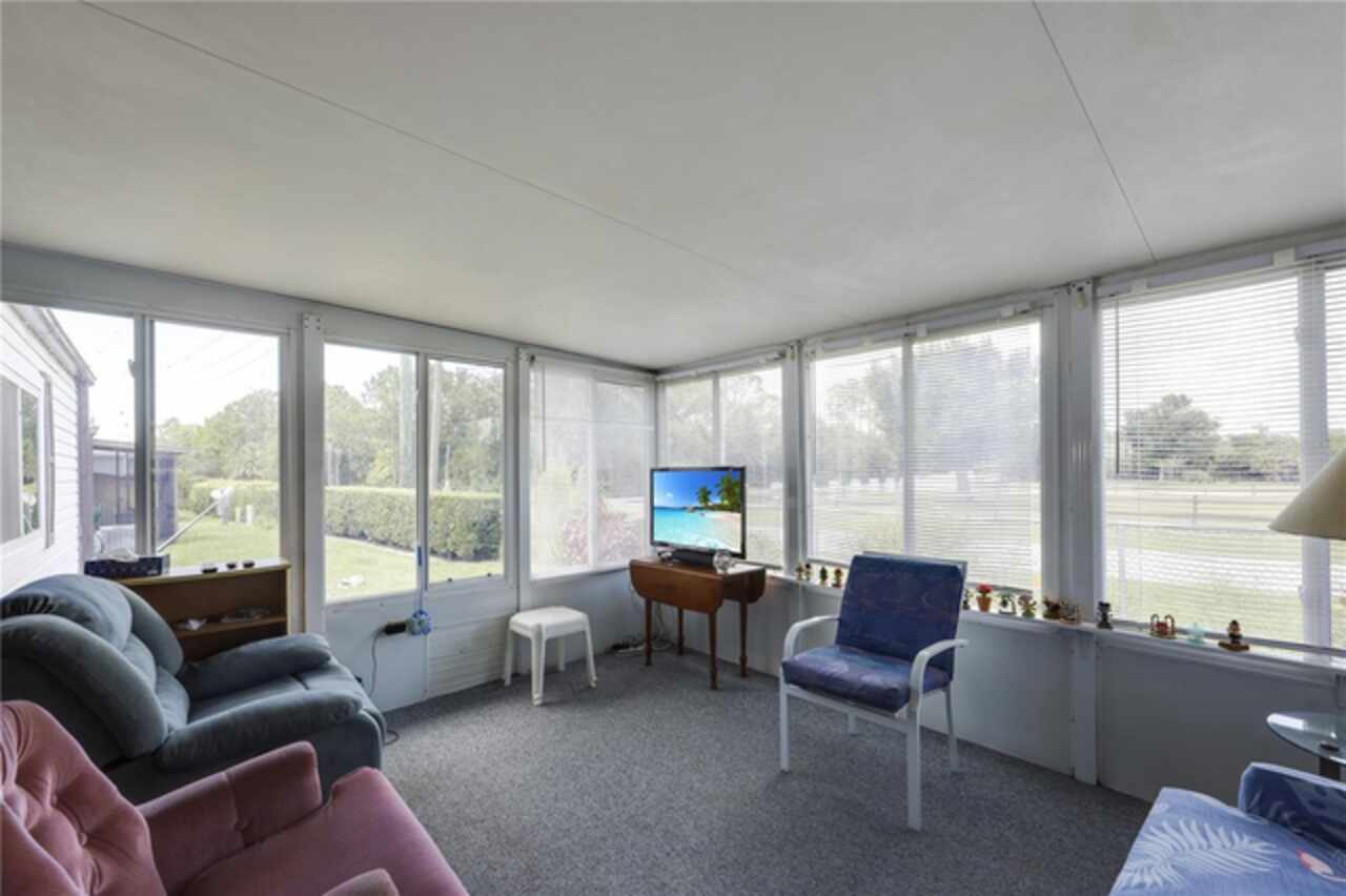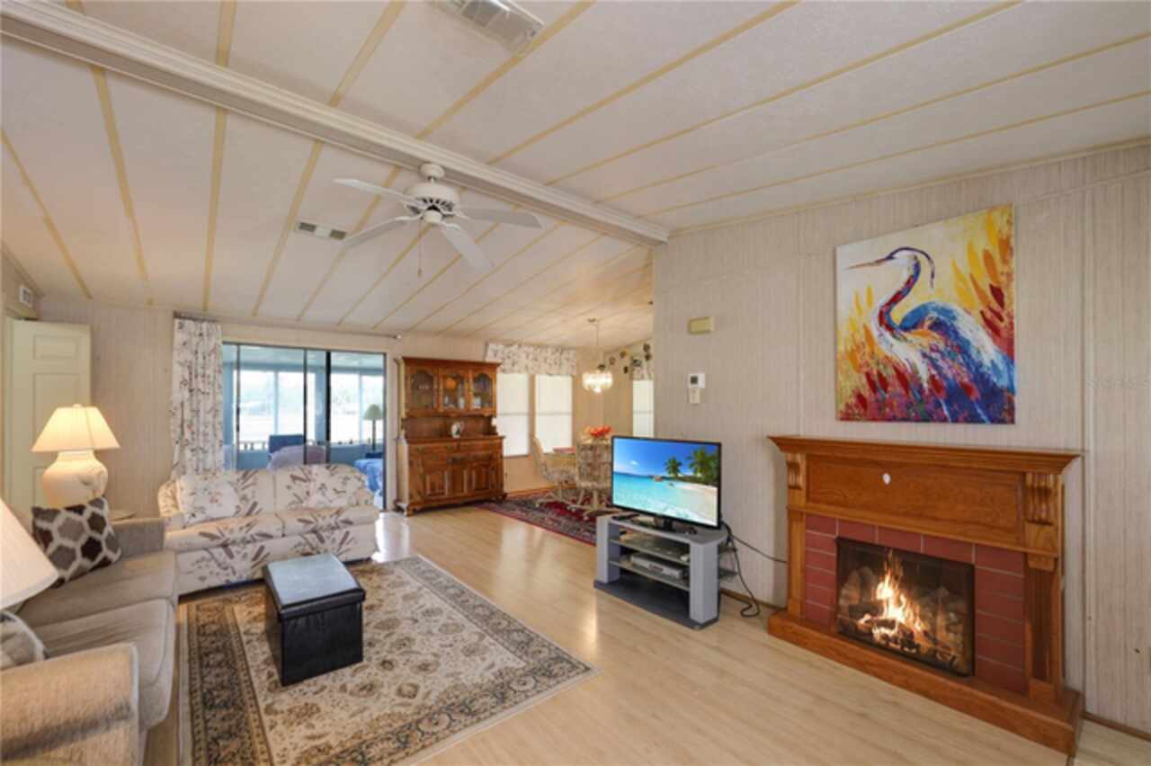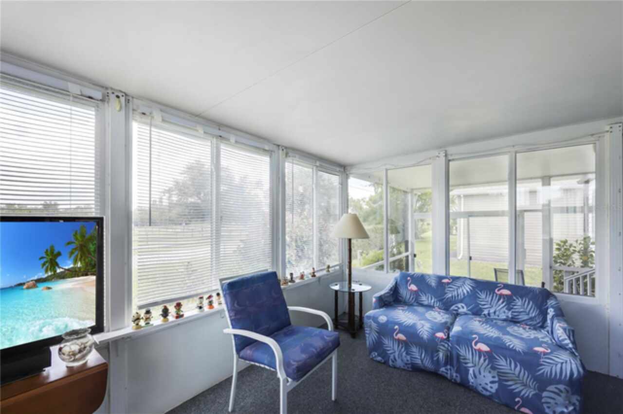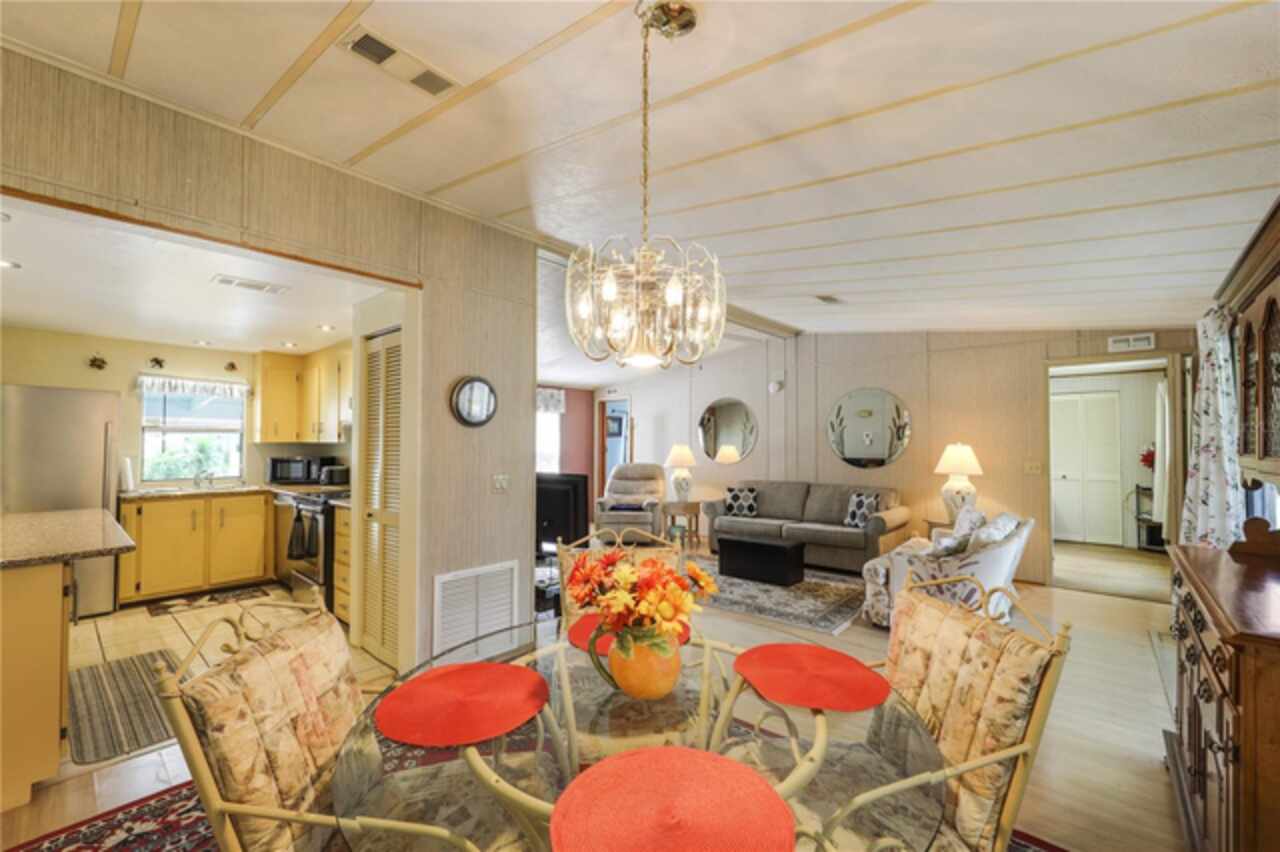 This 1986 Three bedroom Jacobsen built home is sure to please. Located on the back east side of the community on a perimeter lot with a horse paddock view. The 23 foot wide driveway is perfect for those with more than one vehicle. Interior laundry for added convenience. The split bedroom floor plan is perfect for entertaining overnight guests with primary bedroom suite on one side the home and guest rooms on the other. The two guest bedrooms share the second bathroom. On the exterior, 80sq ft storage shed and spacious 168sq ft lanai and 156sq ft screened and covered patio. AC and duct work replaced 2017, new carport 2023. Home being sold furnished. ***Be sure to check out the two virtual tours for video walk through and 3-D virtual*** Maple Leaf is a resident owned 55+ community with an active resort lifestyle. Activities include award winning par 62, 18 hole golf course, 4 heated swimming pools, 5 tennis courts, bocce, lawn bowling, 2 shuffleboard court centers, 2 hot tubs, sauna, fitness center, woodworkers shop, pottery studio, 4 pickleball courts, two restaurants, full service bar, tiki hut with bar and over 75 clubs and activities. Price of home includes membership certificate.
