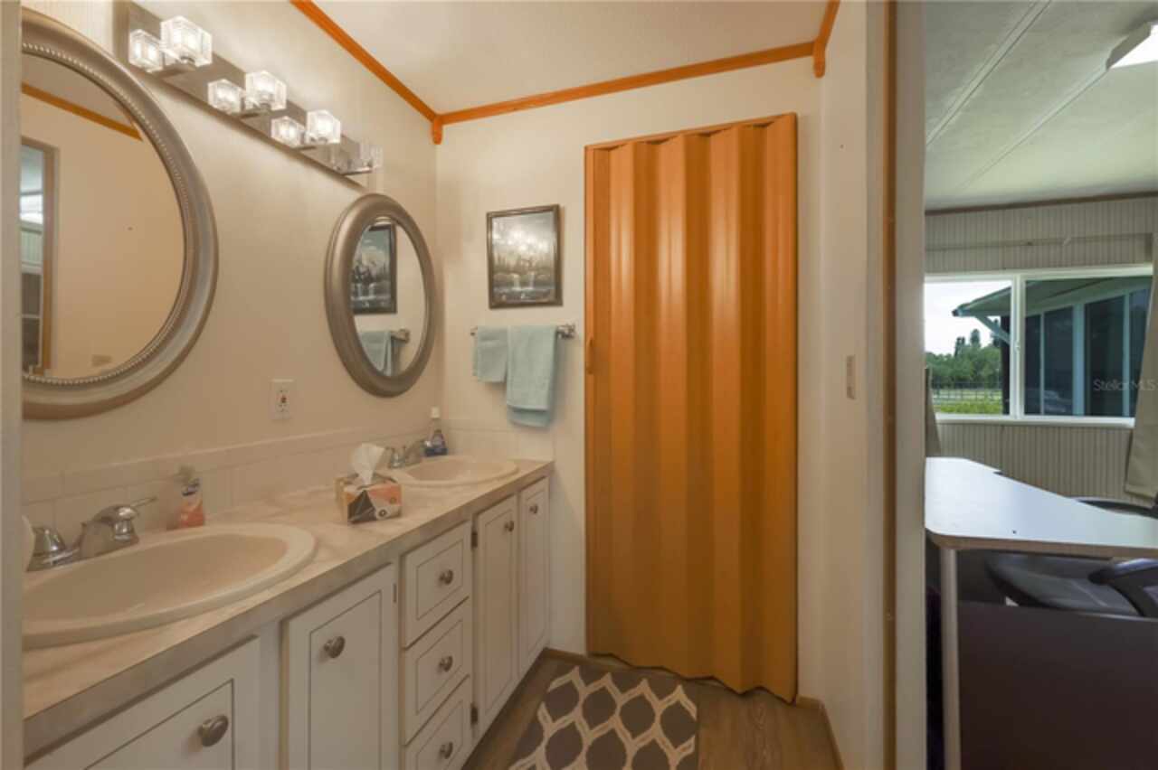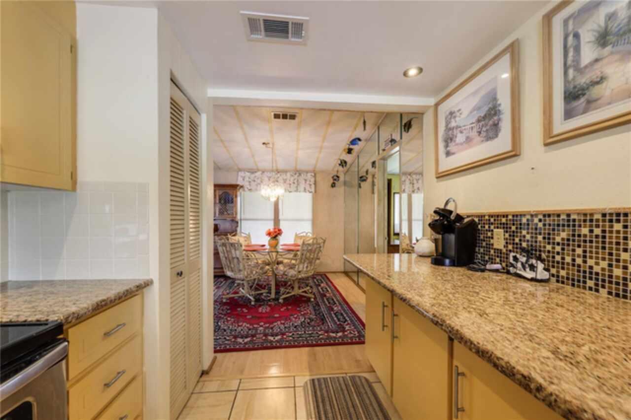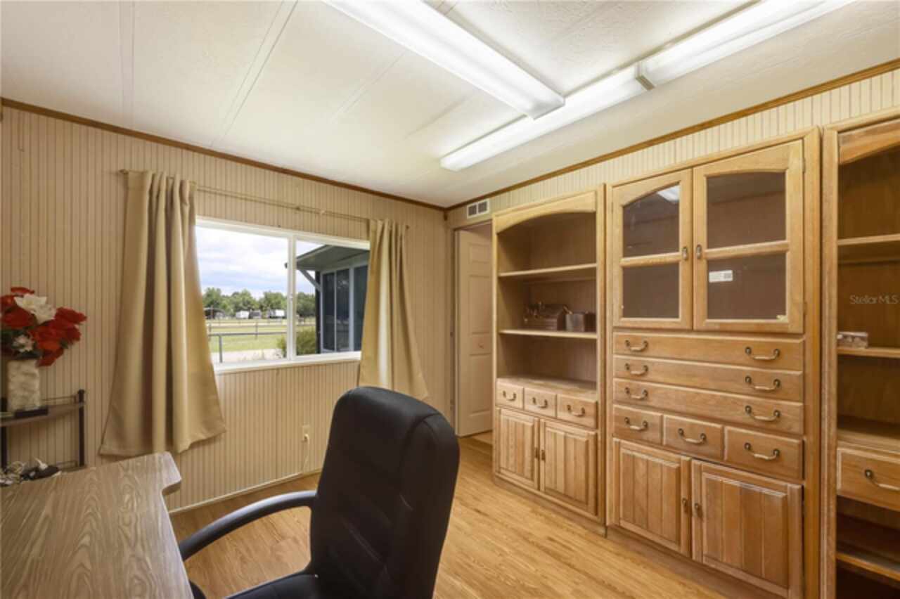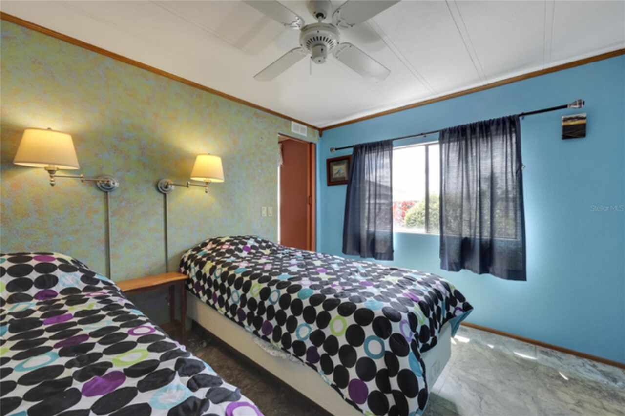 This 1986 Three bedroom Jacobsen built home is sure to please. Located on the back east side of the community on a perimeter lot with a horse paddock view. The 23 foot wide driveway is perfect for those with more than one vehicle. Interior laundry for added convenience. The split bedroom floor plan is perfect for entertaining overnight guests with primary bedroom suite on one side the home and guest rooms on the other. The two guest bedrooms share the second bathroom. On the exterior, 80sq ft storage shed and spacious 168sq ft lanai and 156sq ft screened and covered patio. AC and duct work replaced 2017, new carport 2023. Home being sold furnished. ***Be sure to check out the two virtual tours for video walk through and 3-D virtual*** Maple Leaf is a resident owned 55+ community with an active resort lifestyle. Activities include award winning par 62, 18 hole golf course, 4 heated swimming pools, 5 tennis courts, bocce, lawn bowling, 2 shuffleboard court centers, 2 hot tubs, sauna, fitness center, woodworkers shop, pottery studio, 4 pickleball courts, two restaurants, full service bar, tiki hut with bar and over 75 clubs and activities. Price of home includes membership certificate.
