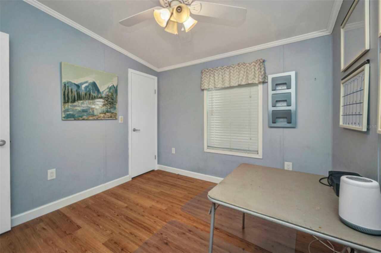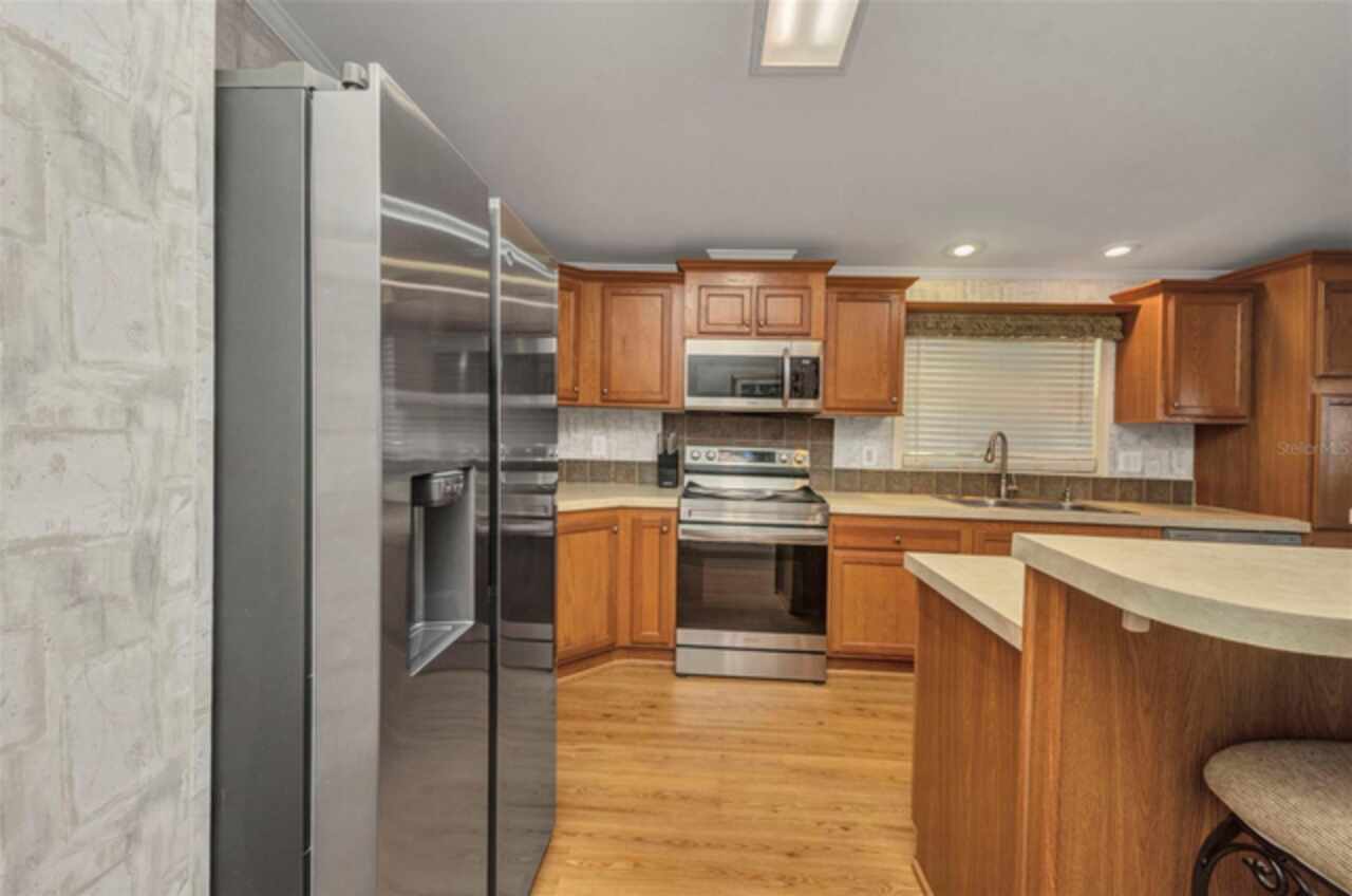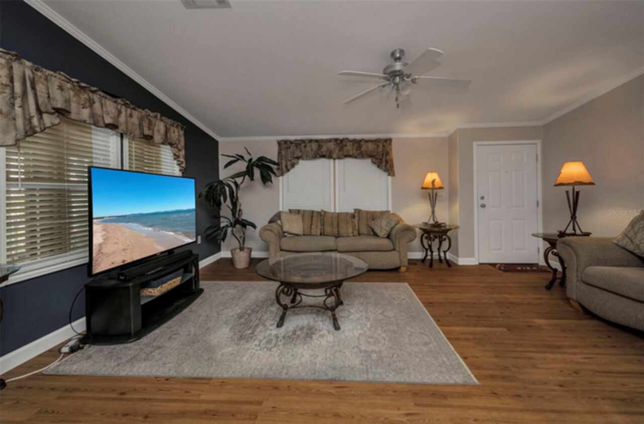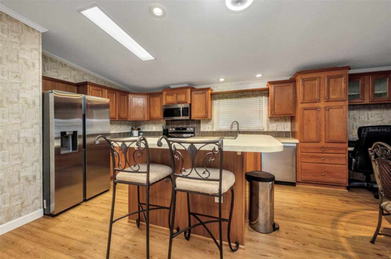 DOG APPROVED LOCATION 3 Bed 2 Bath with many upgrades! This True Three Bed Two Bath home in Gated Golf Course community features Large Living room that is open concept to your Dining area and Large Kitchen with Island that offers you addition eat-in kitchen bar area. Home features many high-end custom design updates such as drywall, rounded corners, high ceilings and Crown molding! The home updates include Newer Windows, Roof 2022, Microwave, Fridge, Dishwasher 2024 and Solid surface range. The French doors open to your large screened in lanai with custom privacy screens. Each Bedroom has nice sized closets including a walk-in closet in your Primary Suite. The Laundry/Storage room has ample closet space with a nice sink with counter space. Looking to have a Side-Side Two Car Carport, well this is it! It's an oversized carport with additional room for your golf cart. This is a Perimeter home, lowest HOA Fee. You will not want to miss this Fantastic 55+ Resident-Owned 18 Hole Executive Gated Golf Course Amenity-Rich Community has lighted Tennis Courts, Pickleball Courts, Fitness Room, Heated Swimming Pools, Clubhouses, Fishing Lakes, Bocce Ball, Lawn Bowling, Mini-Putt, Horseshoes, Many Special Clubs, Arts & Crafts, Cards, Bingo, Woodworking Shop, Ceramics and Computer Club. Enjoy the On-Site Restaurant/Bar for Dinners, Music & Entertainment! Maple Leaf Golf & Country Club is a Resident Owned community. Price Includes Membership Certificate. The membership certificate (stock certificate) is evidence of ownership of a fractional interest of the corporation, Maple Leaf Estates Homeowners' Corporation.