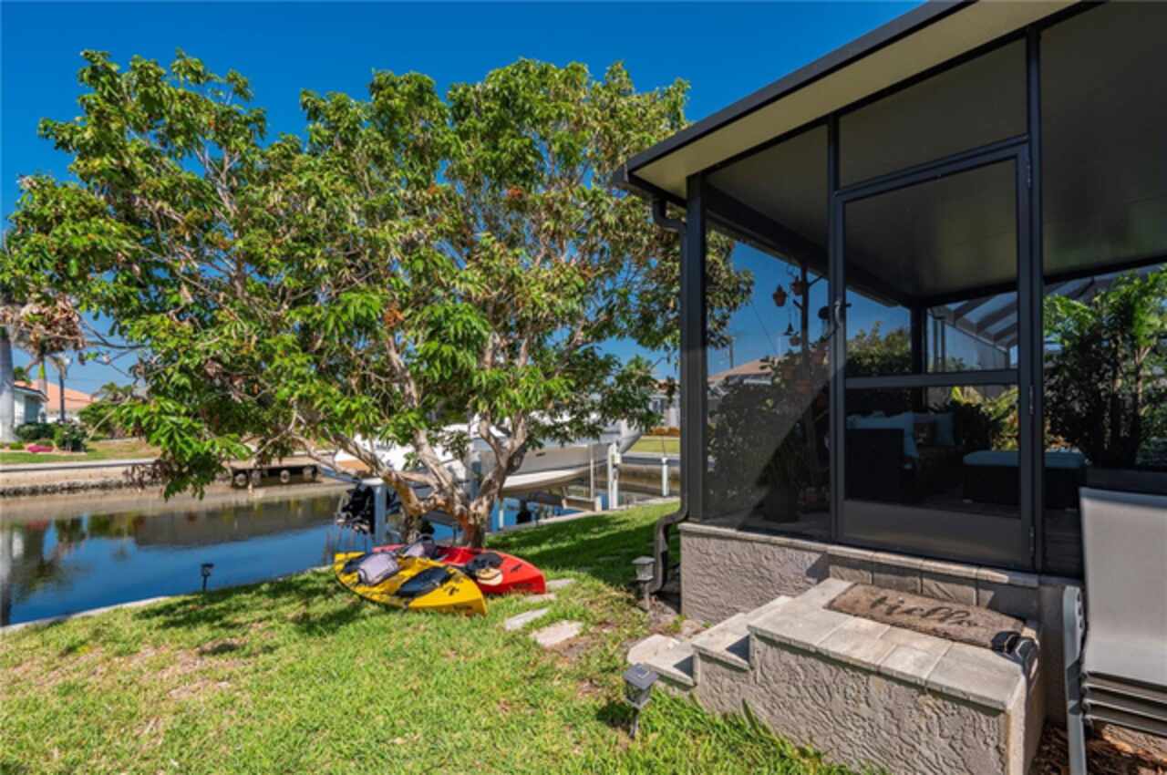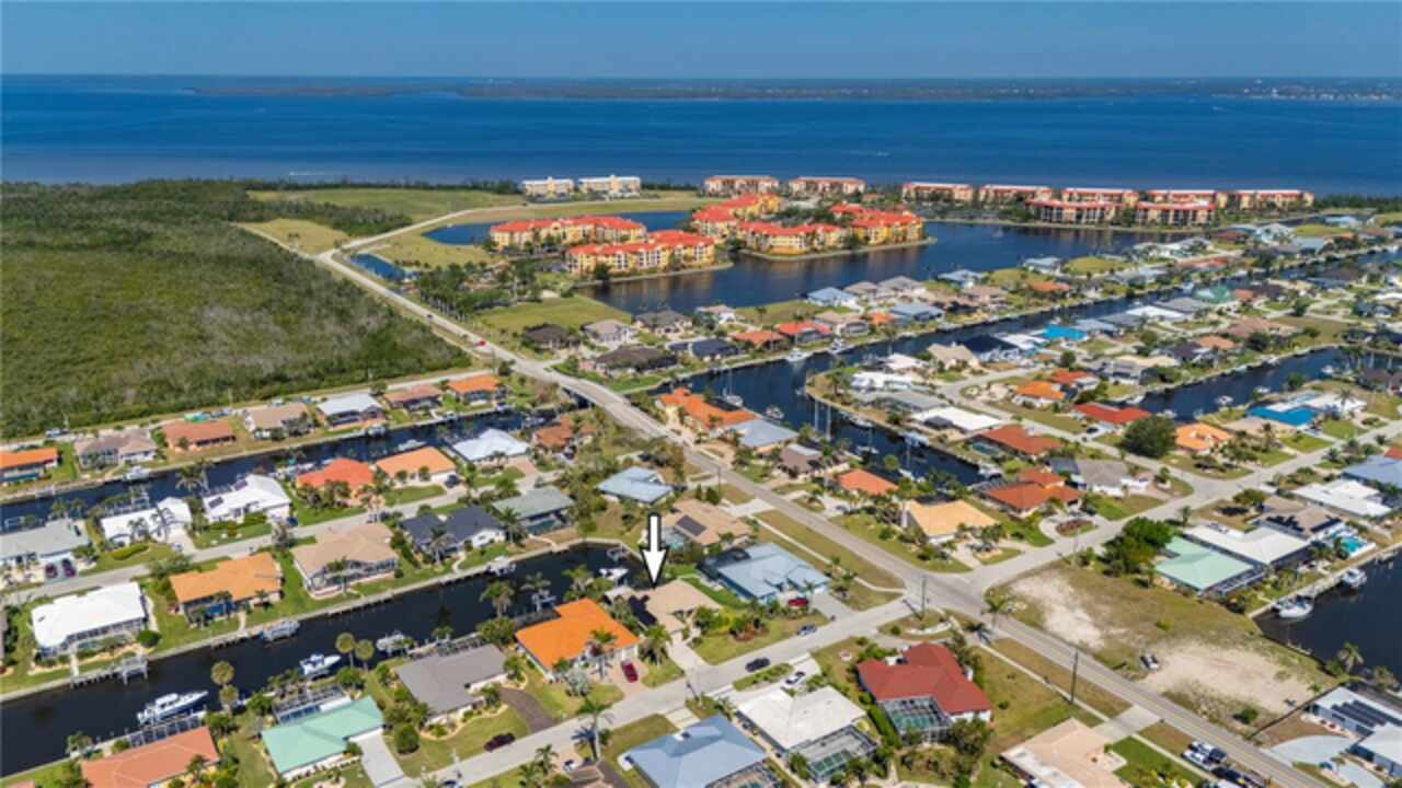 LIVE IN A PLACE YOU DON'T NEED A VACATION FROM! Southwest Florida Waterfront living has never been so realistic! You don’t need to be a financial wizard to understand that this house is not only undervalued, but you can save a ton of money as well! Completely paid for solar panels provides year-round energy savings up to $3600 annually, which equates to $60K in mortgage value for the life of a mortgage. Perfectly designed for boaters, the property offers direct access to Charlotte Harbor with no bridges, a premium 24, 000-pound SUPER-lift for larger vessels, and a City of Punta Gorda maintained seawall along private canal frontage. Inside, soaring twelve-foot ceilings, elegant tray details with crown molding, and graceful archways create a sense of sophistication throughout the semi-open floor plan. The kitchen is a chef’s delight offering granite countertops, stainless steel appliances, bar top and a dinette that welcomes natural light. The master suite serves as a private retreat with his and hers walk-in closets, upscale Hunter Douglas window treatments, and a spa-inspired bathroom offering dual granite vanities, a walk-in shower, and a soaking tub. Step outside and discover a tropical oasis built for both relaxation and entertainment. A saltwater pool with a custom rock grotto and integrated hot tub is framed by a picture window screen enclosure, complemented by custom landscape lighting that enhances the ambiance day or night. A heat pump ensures the pool remains inviting year-round, while the outdoor space becomes the perfect setting for gatherings or quiet evenings at home. This residence is as practical as it is beautiful, with fully paid solar panels providing significant energy savings, accordion and Lexan storm shutters for protection, and a PEX plumbing system with ManaBloc distribution for efficient water management. To add peace of mind, a home warranty is also included. Whether you are entertaining poolside, cruising the harbor, or simply enjoying the serenity of your surroundings, this home delivers the best of Punta Gorda Isles living with unmatched value and convenience. Schedule your private showing today and make waterfront luxury your everyday reality.