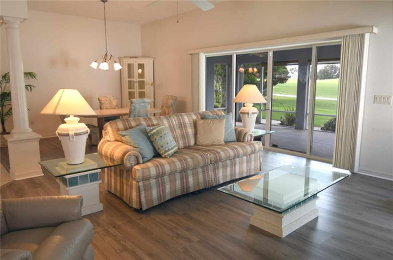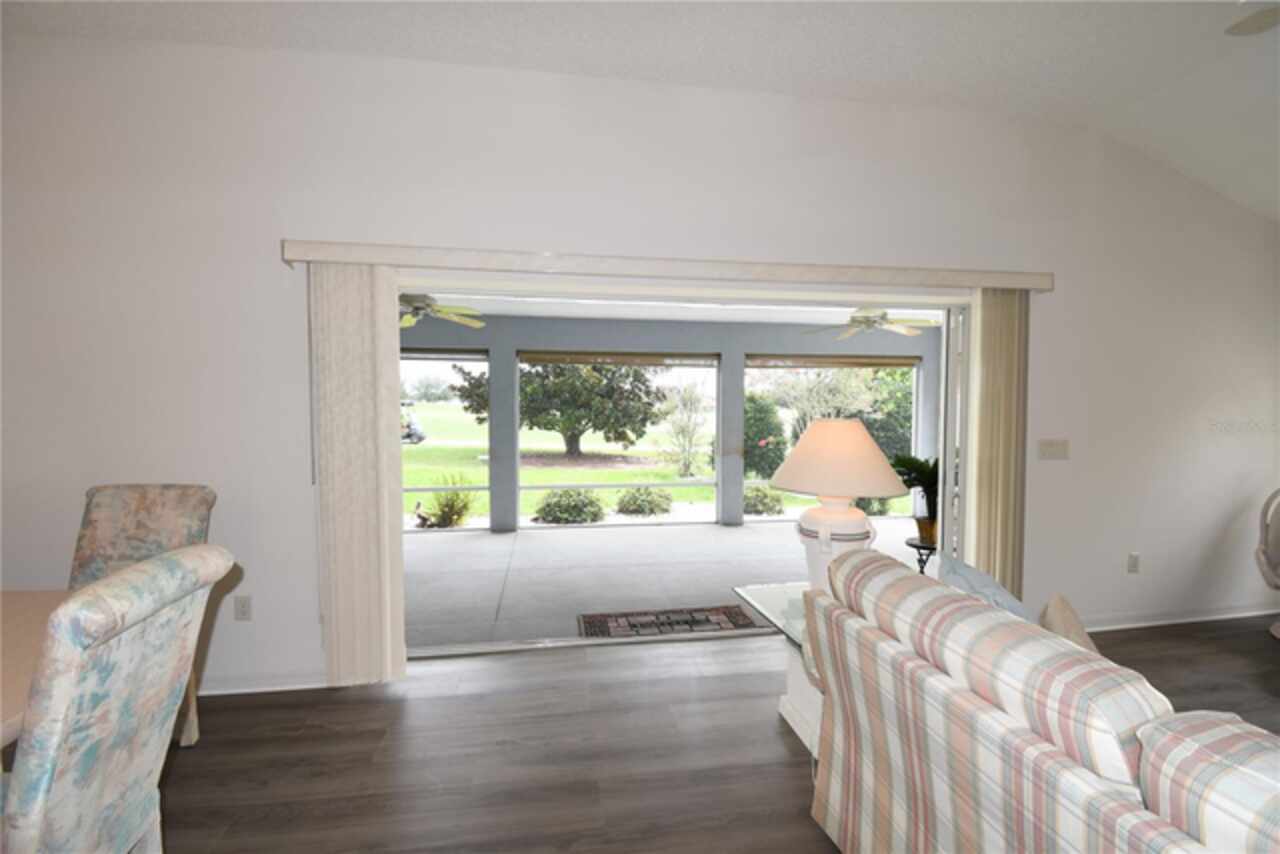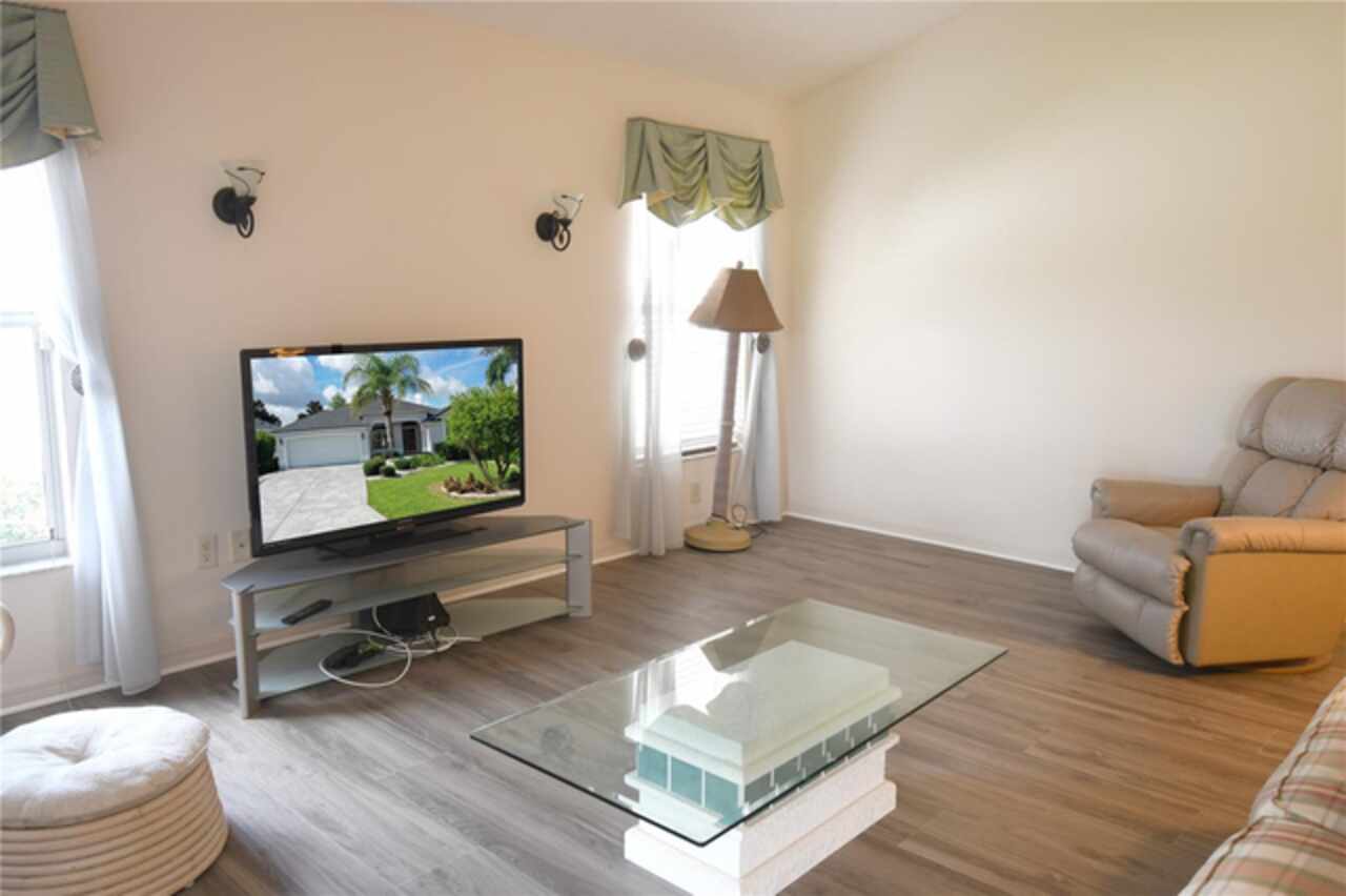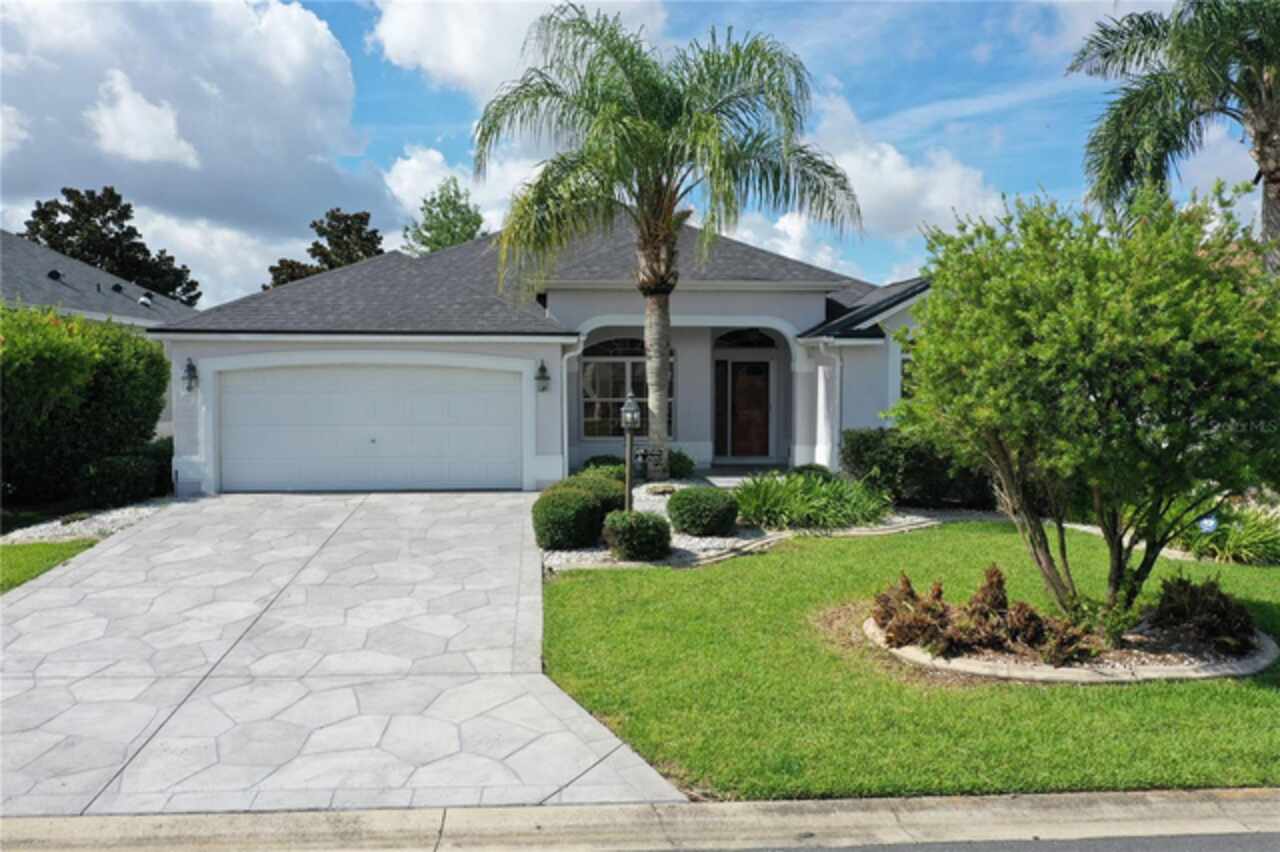 Check Out one of the most sought after floor plans in The Villages at an UNBELIEVEABLE PRICE. This beautiful GARDENIA MODEL home is located conveniently in the VILLAGE OF BONNYBROOK, which is ONLY MINUTES AWAY BY GOLF CART from the Palmer Legends Championship Golf Course, Lake Sumter Landing Town Square and all the shopping and restaurants you could ever want. This beautiful 3-bedroom ( third bedroom has no closet ), 2-bathroom residence offers STUNNING GOLF COURSE VIEWS of the Cherry Hill Golf Course of the Arnold Palmer Country Club Championship Golf Course giving you the feeling of a true Florida lifestyle. Inside, you'll find voluminous VAULTED CEILINGS creating an open and airy feel. The kitchen boasts a dedicated breakfast nook overlooking the front of the home's beautiful landscaping while perfect for entertaining as the kitchen flows seamlessly overlooking the formal dining/living area. You will find ALL BRAND NEW MATCHING STAINLESS STEEL APPLIANCES complemented by the NEW DESIGNER GRANITE COUNTERTOPS that matches perfectly with the TILE FLOORING in the kitchen and the LVP IN THE LIVING ROOM. This home is a DESIGNERS DREAM. Relax and take in the breathtaking golf course views from your living room, dining room and kitchen as the SLIDING GLASS POCKET DOORS pocket fully into the wall for a maximum view of the golf course or just relax in your SPACIOUS 4 FOOT STRETCHED LANAI. The front guest bedroom/office has HIGH VAULTED CEILINGS as well as a BUILT-IN WORK STATION. This home has not only ALL of the structural options that The Villages Design Center offered but it has all of the upgrades that you could possibly want. BRAND NEW LVP FLOORING not only in the living and dining room but ALL the bedrooms as well. There is NO CARPET in this home. A BRAND NEW ROOF Installed In June 2025. There is also ROOM FOR A POOL on this golf course homesite! Enjoy fantastic curb appeal with its BEAUTIFUL MATURE LANDSCAPING featuring elegant palm trees, LANDSCAPE CURBING along with a TEXTURE PAINTED DRIVEWAY. Don't miss this opportunity to live the Villages dream at a fantastic price! With all that this home has to offer it is a steal. It is aggressively priced for this top Designer GARDENIA Home on a Championship Golf Course. And to top it all off, the Bond Payoff is Only $4421.93 compared to the $50, 000 plus bonds in the newer area of The Villages. This home is in the lowest tax district in all The Villages. Take advantage today of all this home has to offer at a price you can't refuse. Watch our video on the Homes Around The Villages YouTube Channel.