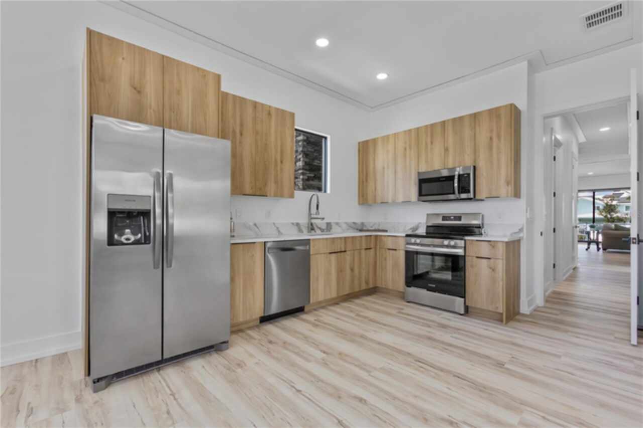Bar Fridge, Built-In Oven, Cooktop, Dishwasher, Disposal, Gas Water Heater, Microwave, Range, Range Hood, Refrigerator, Tankless Water Heater, Wine Refrigerator