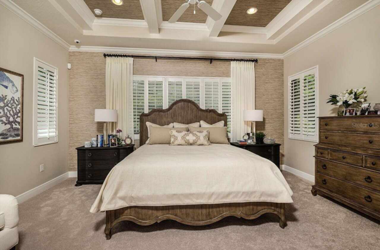 Ceiling Fans(s), Coffered Ceiling(s), Open Floorplan, Primary Bedroom Main Floor, Thermostat, Walk-In Closet(s), Window Treatments