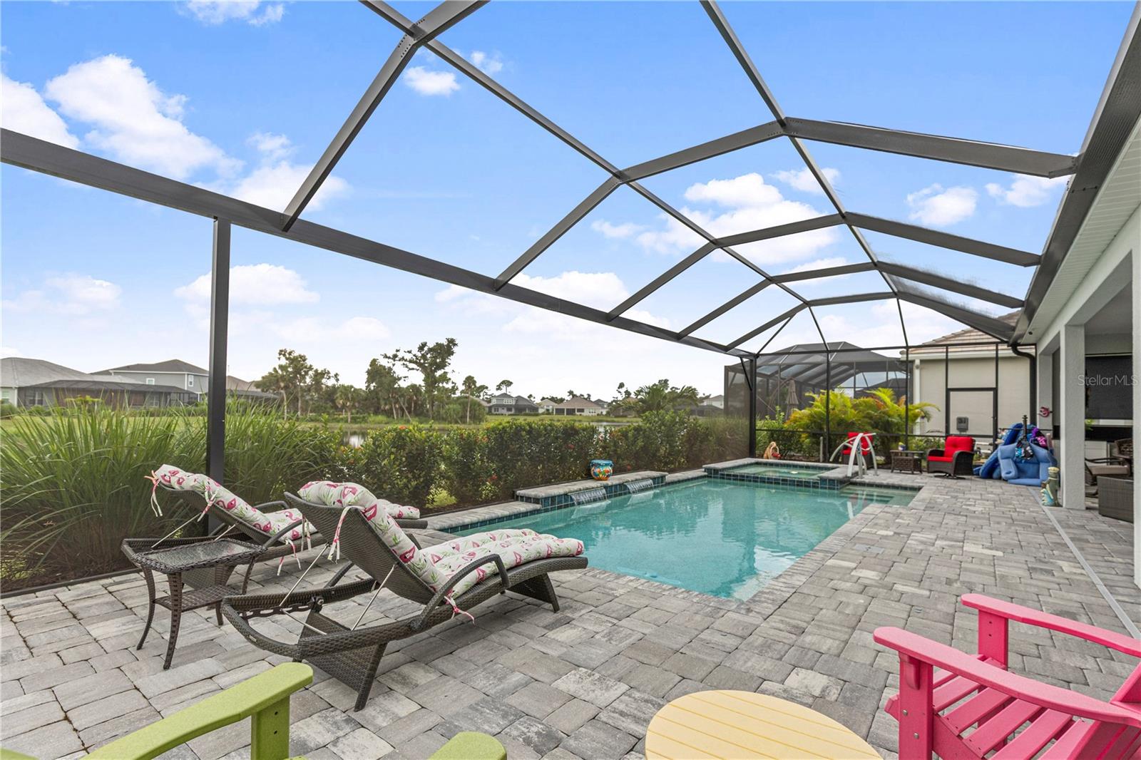 Welcome to just under 3, 000 sq. ft. of refined living in this 4-bedroom plus flex room with a game room overlooking the pool and 3 full-bathroom home, oversized lot, built in 2023 and enhanced with upgrades for today’s lifestyle. Set within Grand Palm, recognized as one of the Top 10 Best Master-Planned Communities in the U.S., this residence perfectly balances style, function, and peace of mind. The open design is filled with natural light and elevated by crown molding, upgraded lighting, and statement chandeliers. The kitchen is equipped with all GE Smart appliances, including a GE Smart dishwasher, and a serving window for effortless entertaining. Hurricane-rated windows, electric shades, and Guardian protection with life alert add both comfort and security. Step outdoors to your private retreat: a spacious lanai with southern exposure, an 18’ x 34’ saltwater pool, and an 8’ x 8’ spa, all operated remotely through iAqua. There is also a direct entrance to the pool from the bonus room, adding convenience and flow for indoor-outdoor living. Exceptional landscaping, a large lot, and unobstructed views provide privacy and serenity. Additional highlights include a $20, 000 Generac whole-house generator (natural gas), water filtration system, and a second gated entrance for exclusivity. As a Grand Palm resident, you’ll enjoy resort-style pools, a state-of-the-art fitness center, Adventure Lake with kayak launch, 28 miles of trails, pickleball, tennis, bocce, basketball, volleyball, multiple dog parks, playgrounds, and expansive green spaces. Homes with this combination of large lot, saltwater pool, spa, southern exposure, and extensive upgrades are rarely available. This is more than a home, it’s a lifestyle and a lasting investment in one of not just Sarasota County’s but the U.S.'s most desirable communities. Schedule your private showing today and step into the life you’ve been waiting for. Click the tour link for a 3D Virtual Tour!