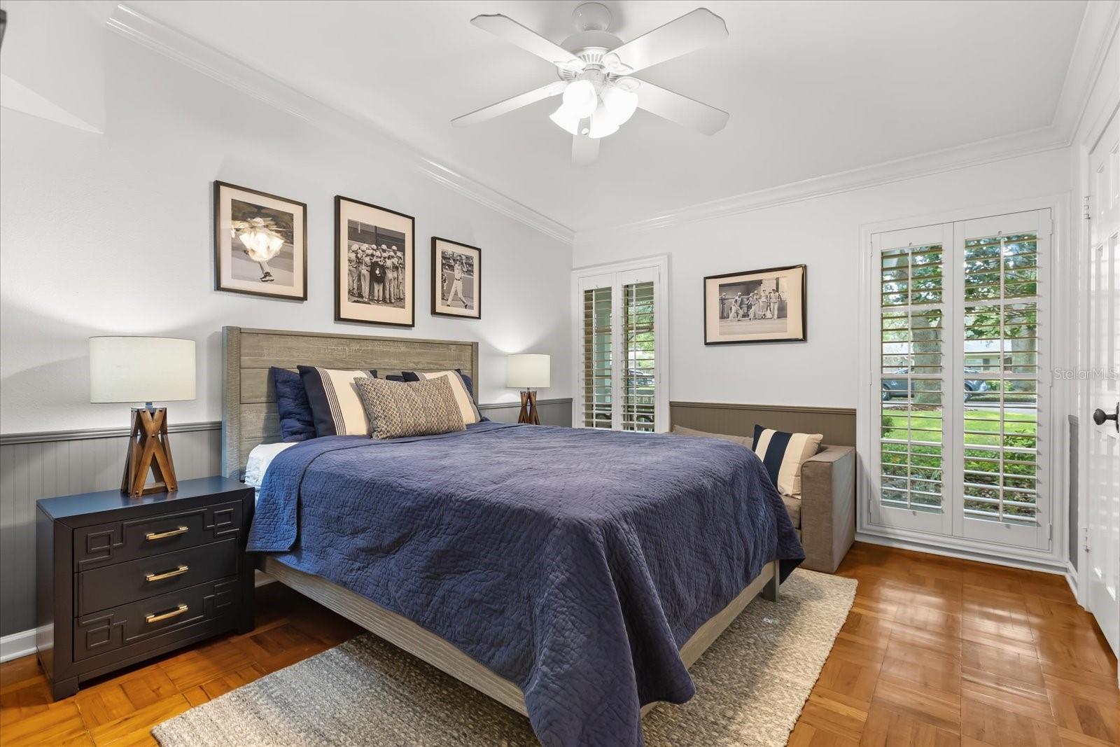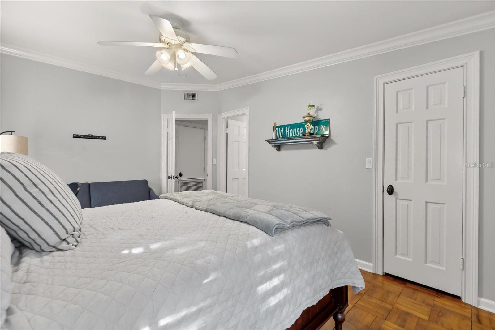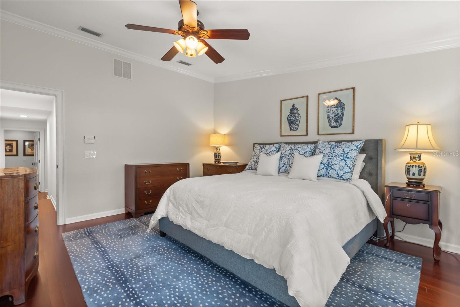Built-in Features, Ceiling Fans(s), Crown Molding, Primary Bedroom Main Floor, Stone Counters, Walk-In Closet(s)