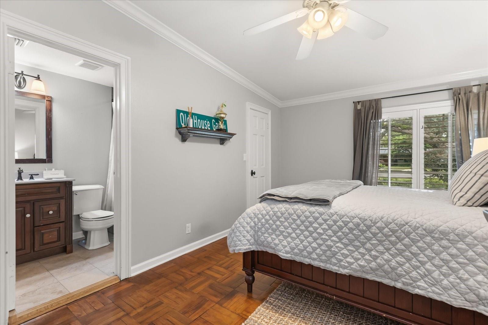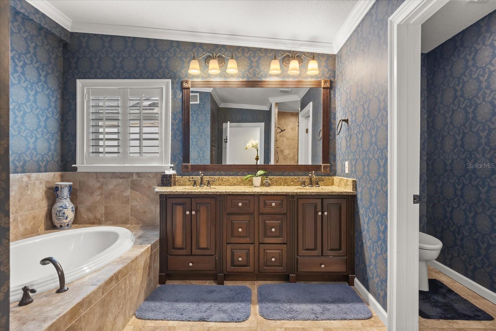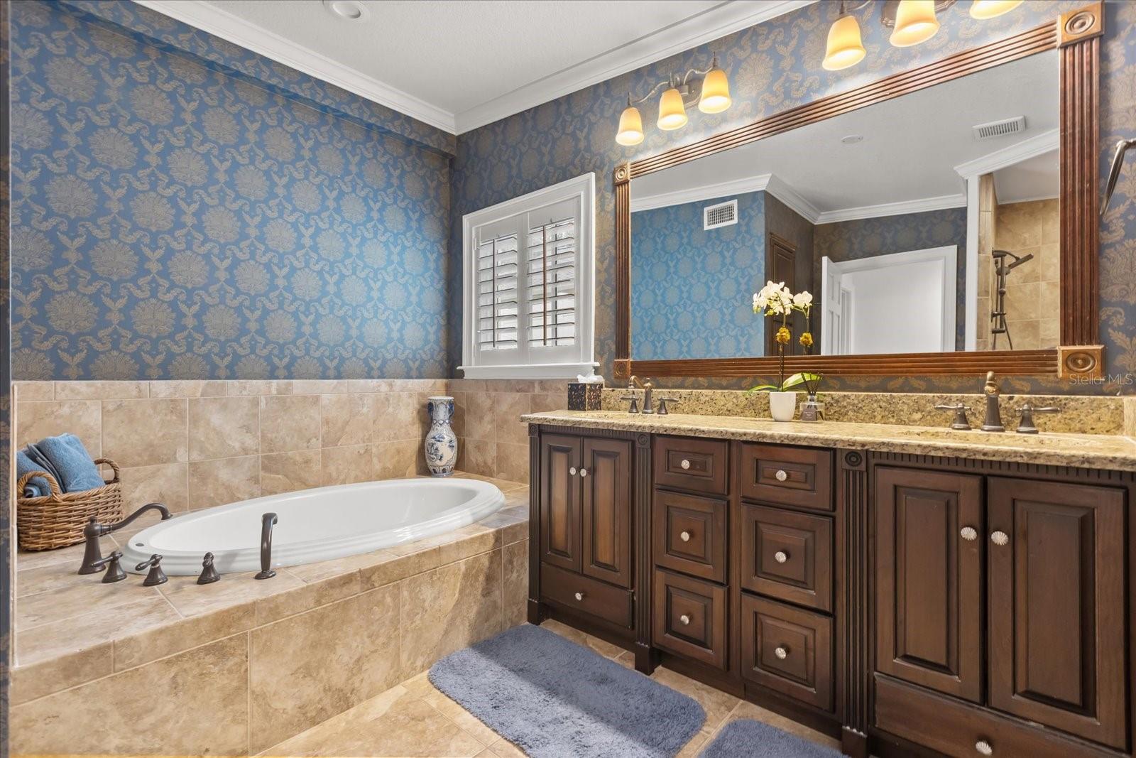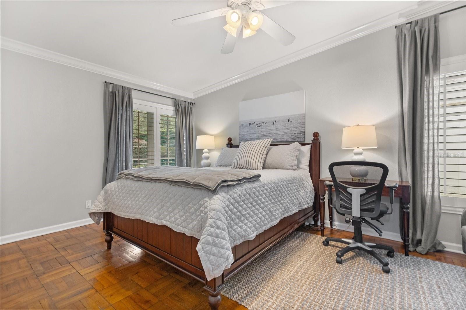 Built-in Features, Ceiling Fans(s), Crown Molding, Primary Bedroom Main Floor, Stone Counters, Walk-In Closet(s)