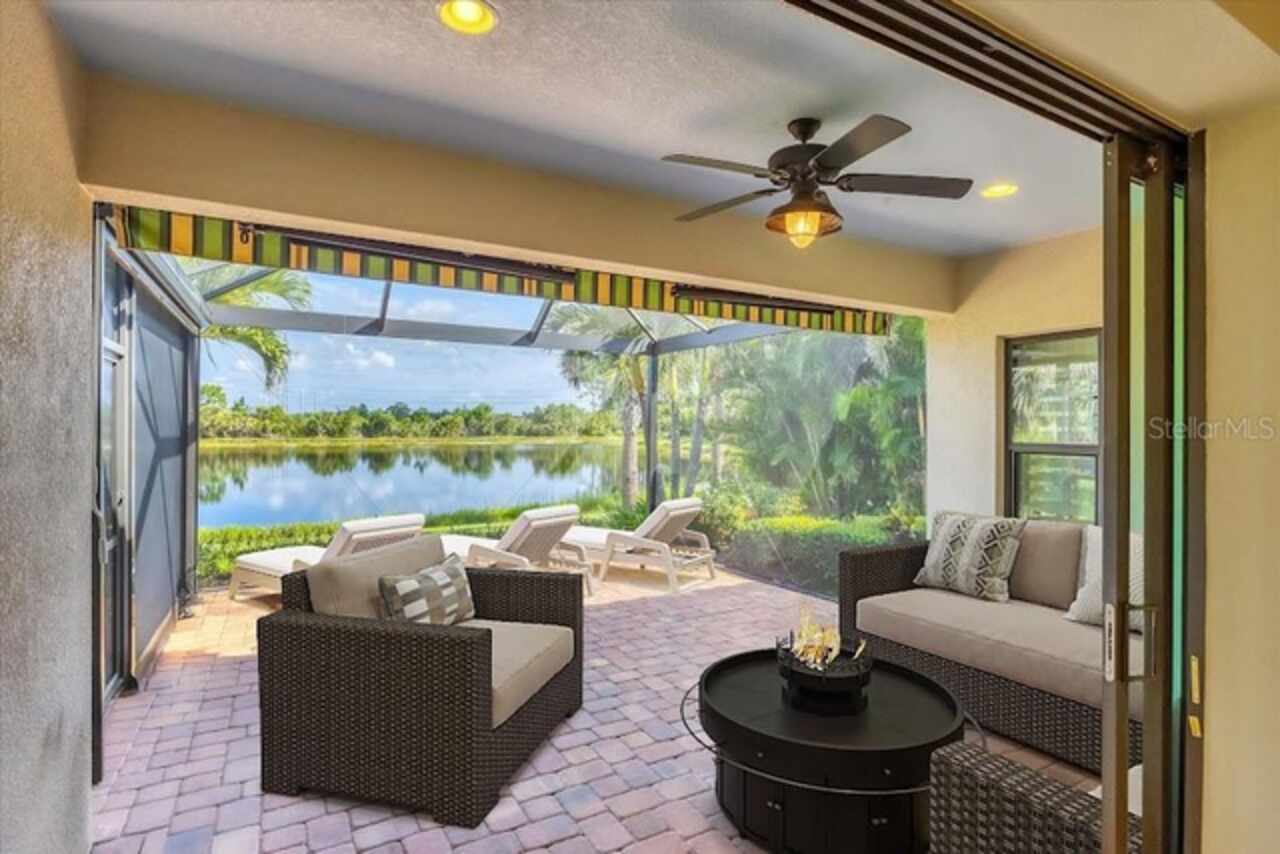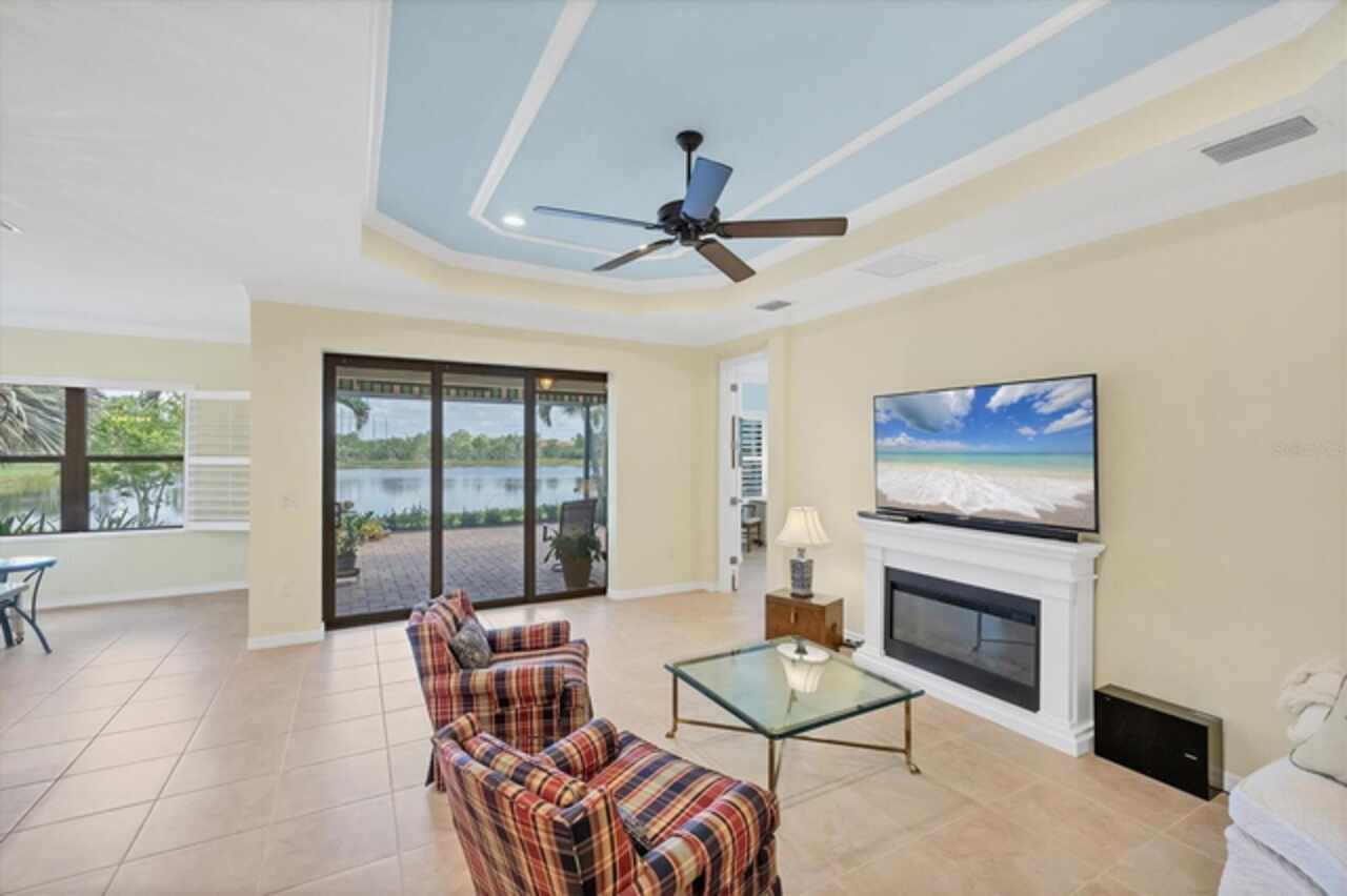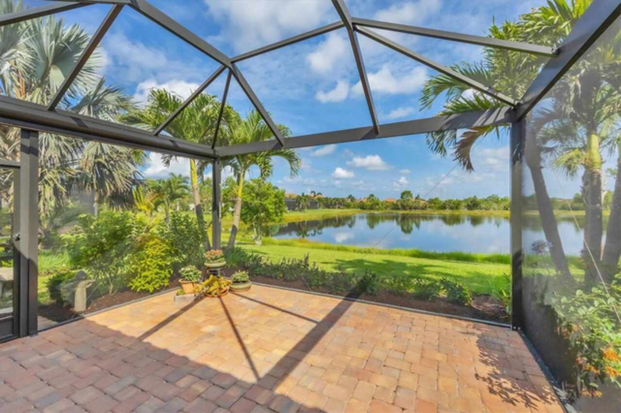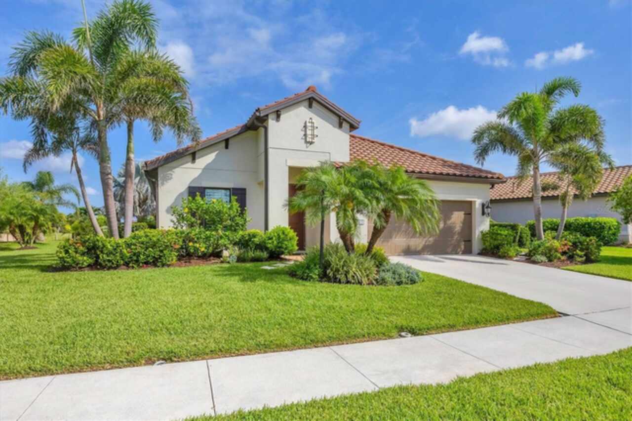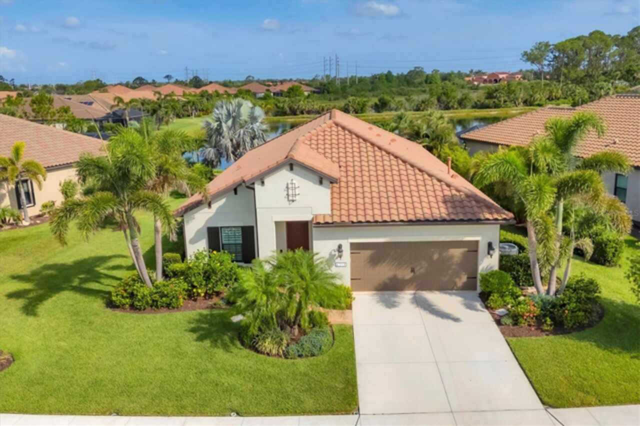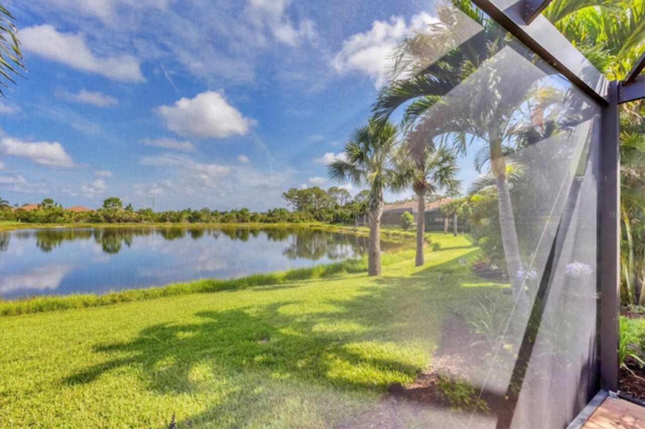 DON'T WAIT TO SEE THIS MAGNIFICENT HOME BEING OFFERED NOW!! Located on a short cul de sac street with little drive through traffic. Boasting a GORGEOUS LAKE VIEW from the extended pavered lanai with SPECTACULAR SUNSETS! Large lot has been transformeed with tropical trees and landscaping to create a peaceful and serene tropical oasis. Perfect for watching wild life. Inside this beautiful home you will find a great room open floor plan with 18" PORCELAIN TILE throughout main areas of home and hardwood in the den up front. Loaded with upgrades this home also features crown molding, tray ceilings, designer fans and fixtures, 4" PLANTATION SHUTTERS and 8' Doors throughout. Kitchen shines with upgraded cabinets, under cabinet lighting, extra recessed lighting, Zodiac counter tops, tile backsplash, stainless steel appliances, and the stove is GAS run for those chefs in the family. Gorgeous Lake views from all main rooms and master bedroom. Let the inside and outside flow together with POCKET SLIDERS TO LANAI. Lanai is pavered ( along with front walk) and extended, with CLEAR VIEW SCREENING to showcase the lake and tropical landscape. Night time is special with outside lighting to make your surroundings glow. If you are tired of the sunshine, there is a RETRACTABLE AWNING WITH LIGHTS, and a RETRACTABLE SIDE SCREEN for shade if desired. Back inside again, property offers 3BD/3BA/DEN. The extremely spacious master bedroom en suite has plenty of room for a king size bed , night stands, and a separate sitting area for reading or watching TV. En suite master bath offers dual sinks, walk in shower, 2 closets and linen closet. Two Guest bedrooms at other end of home for privacy. Guest bedroom 2 has an en suite bath also, perfect for longer staying guests. Separate Den/Office for those who want to work in the home. Eastern exposure in front provides tons of natural light to work with and you can shut the world out with GLASS FRENCH DOORS while still keeping an eye on the comings and goings. Also featured is a whole laundry room with wash sink and hanging/storage racks. 2 Car garage with wall mounts and storage racks. NO REASON TO WORRY ABOUT HURRICANES, HOME WAS BUILT WITH HURRICANE IMPACT WINDOWS AND PROPERTY COMES WITH WHOLE HOUSE KOHLER GENERATOR IF THE LIGHTS DO FLICKER. Electrical system was upgraded. Check out the 3D walk through tour at: https://my.matterport.com/show/?m=vVBf6oLXSd6 Milano is a FANTASTIC GATED COMMUNITY, offering Clubhouse, heated swimming pool, picklball courts, tennis courts, bocce ball, Fire Pit gathering area, dog park, and Myakka River Nature Trails for walking. LOW HOA'S. NO CDD. Located minutes to Downtown Venice, Venice Beach, shopping, restaurants, theaters, outdoor activities, Nokomis Beach, Casey Key, and so much more. The new shops and Atlanta Braves spring training facility is not far away. Up in Sarasota visit the many sights to see at Mote Marine, Selby Gardens, Ringling Museum, and a thriving art center on Main St. Sarasota Airport is just a short drive along with the UTC Mall and shops. Highways are just around the corner. COME SEE THIS BEAUTIFUL HOME NOW BEFORE IT IS GONE!!