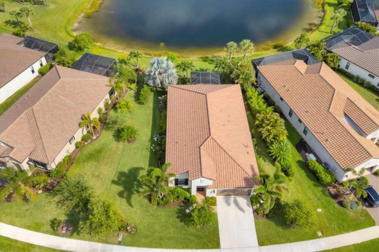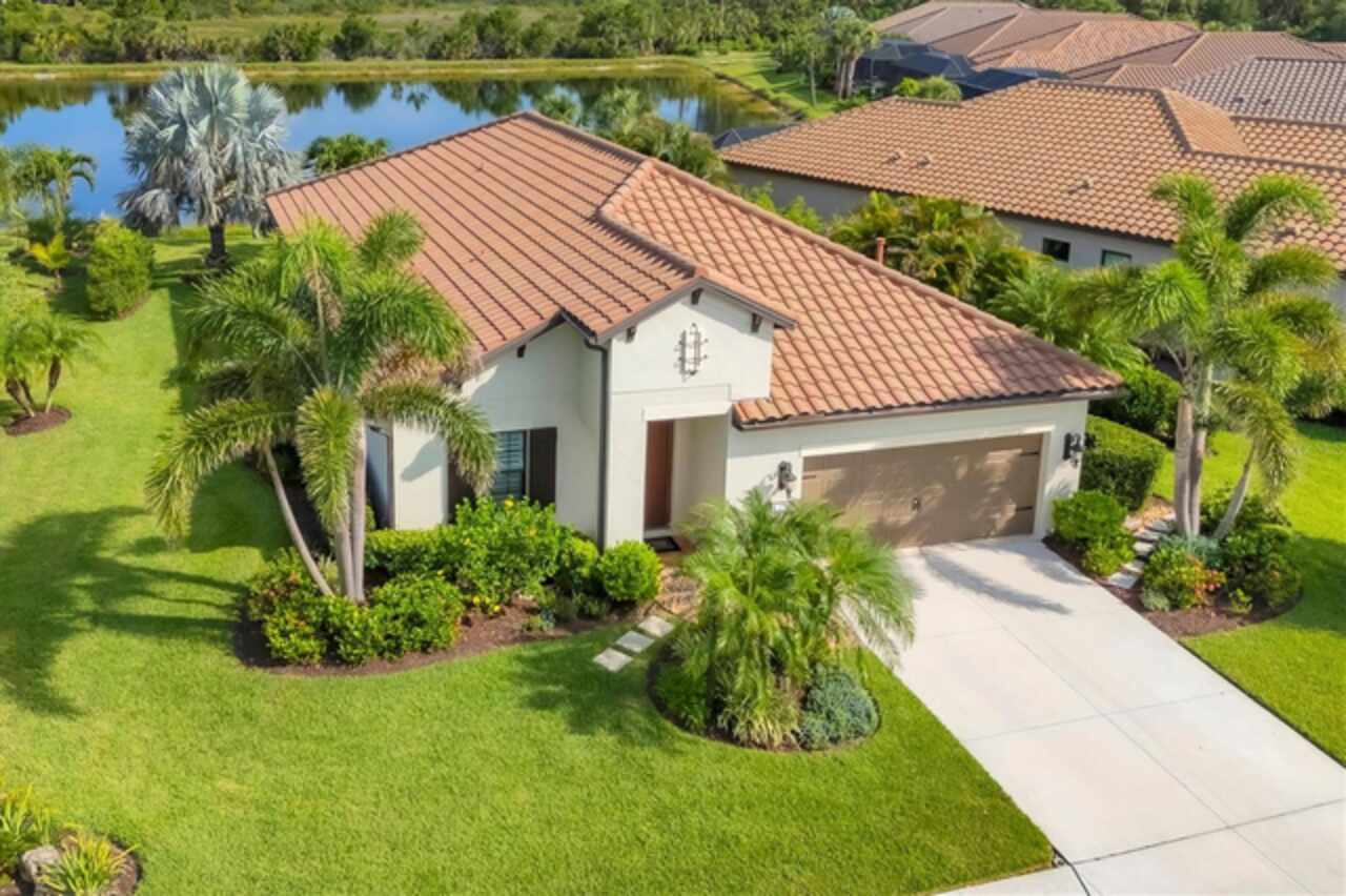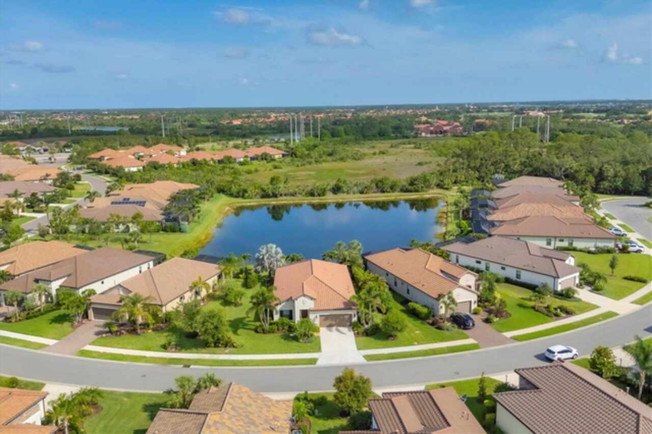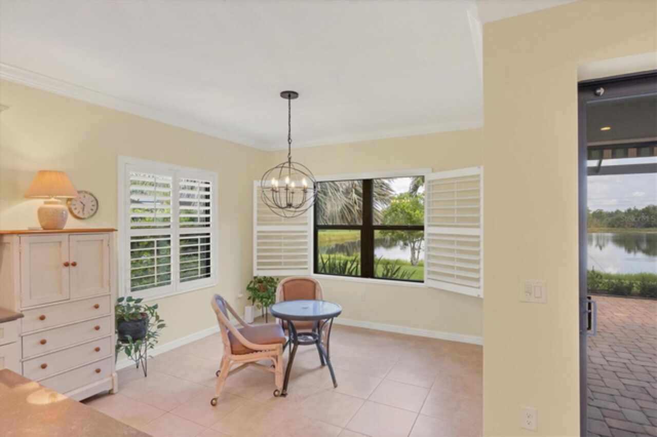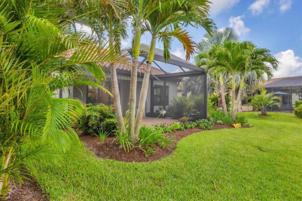 DON'T WAIT TO SEE THIS MAGNIFICENT HOME BEING OFFERED NOW!! Located on a short cul de sac street with little drive through traffic. Boasting a GORGEOUS LAKE VIEW from the extended pavered lanai with SPECTACULAR SUNSETS! Large lot has been transformeed with tropical trees and landscaping to create a peaceful and serene tropical oasis. Perfect for watching wild life. Inside this beautiful home you will find a great room open floor plan with 18" PORCELAIN TILE throughout main areas of home and hardwood in the den up front. Loaded with upgrades this home also features crown molding, tray ceilings, designer fans and fixtures, 4" PLANTATION SHUTTERS and 8' Doors throughout. Kitchen shines with upgraded cabinets, under cabinet lighting, extra recessed lighting, Zodiac counter tops, tile backsplash, stainless steel appliances, and the stove is GAS run for those chefs in the family. Gorgeous Lake views from all main rooms and master bedroom. Let the inside and outside flow together with POCKET SLIDERS TO LANAI. Lanai is pavered ( along with front walk) and extended, with CLEAR VIEW SCREENING to showcase the lake and tropical landscape. Night time is special with outside lighting to make your surroundings glow. If you are tired of the sunshine, there is a RETRACTABLE AWNING WITH LIGHTS, and a RETRACTABLE SIDE SCREEN for shade if desired. Back inside again, property offers 3BD/3BA/DEN. The extremely spacious master bedroom en suite has plenty of room for a king size bed , night stands, and a separate sitting area for reading or watching TV. En suite master bath offers dual sinks, walk in shower, 2 closets and linen closet. Two Guest bedrooms at other end of home for privacy. Guest bedroom 2 has an en suite bath also, perfect for longer staying guests. Separate Den/Office for those who want to work in the home. Eastern exposure in front provides tons of natural light to work with and you can shut the world out with GLASS FRENCH DOORS while still keeping an eye on the comings and goings. Also featured is a whole laundry room with wash sink and hanging/storage racks. 2 Car garage with wall mounts and storage racks. NO REASON TO WORRY ABOUT HURRICANES, HOME WAS BUILT WITH HURRICANE IMPACT WINDOWS AND PROPERTY COMES WITH WHOLE HOUSE KOHLER GENERATOR IF THE LIGHTS DO FLICKER. Electrical system was upgraded. Check out the 3D walk through tour at: https://my.matterport.com/show/?m=vVBf6oLXSd6 Milano is a FANTASTIC GATED COMMUNITY, offering Clubhouse, heated swimming pool, picklball courts, tennis courts, bocce ball, Fire Pit gathering area, dog park, and Myakka River Nature Trails for walking. LOW HOA'S. NO CDD. Located minutes to Downtown Venice, Venice Beach, shopping, restaurants, theaters, outdoor activities, Nokomis Beach, Casey Key, and so much more. The new shops and Atlanta Braves spring training facility is not far away. Up in Sarasota visit the many sights to see at Mote Marine, Selby Gardens, Ringling Museum, and a thriving art center on Main St. Sarasota Airport is just a short drive along with the UTC Mall and shops. Highways are just around the corner. COME SEE THIS BEAUTIFUL HOME NOW BEFORE IT IS GONE!!