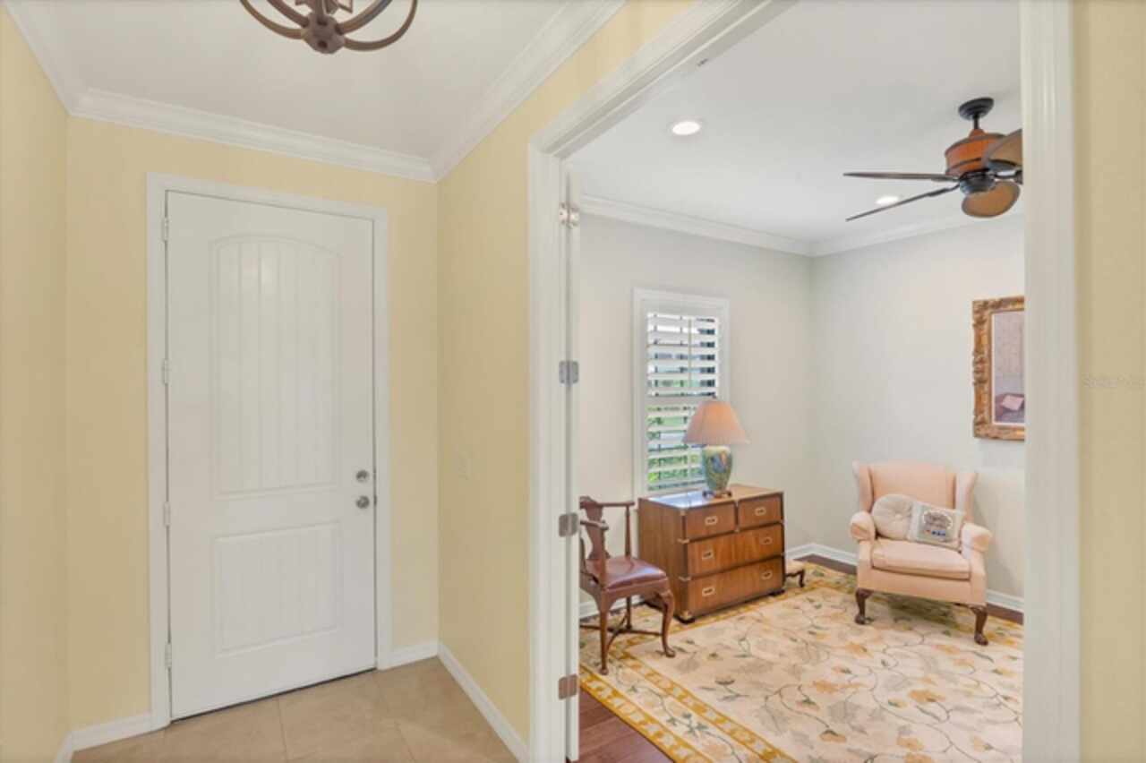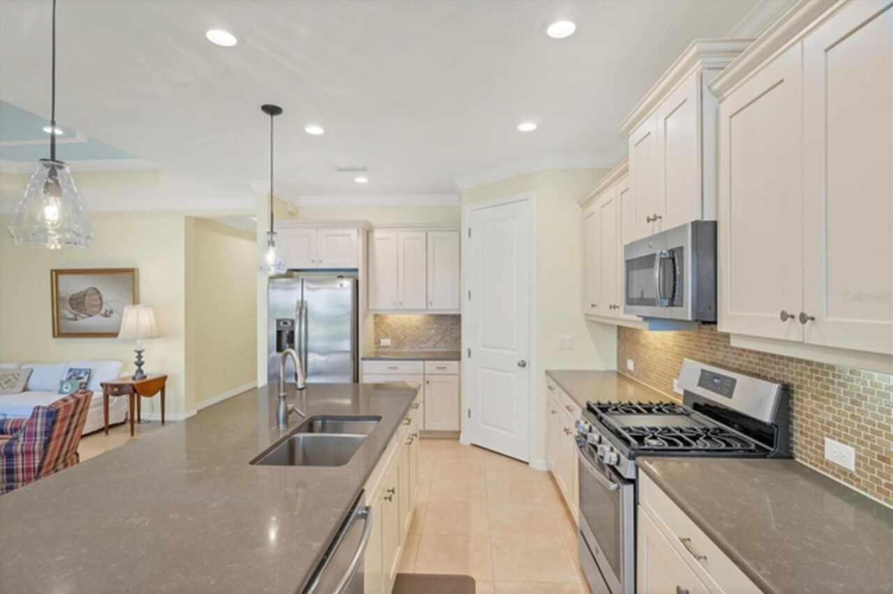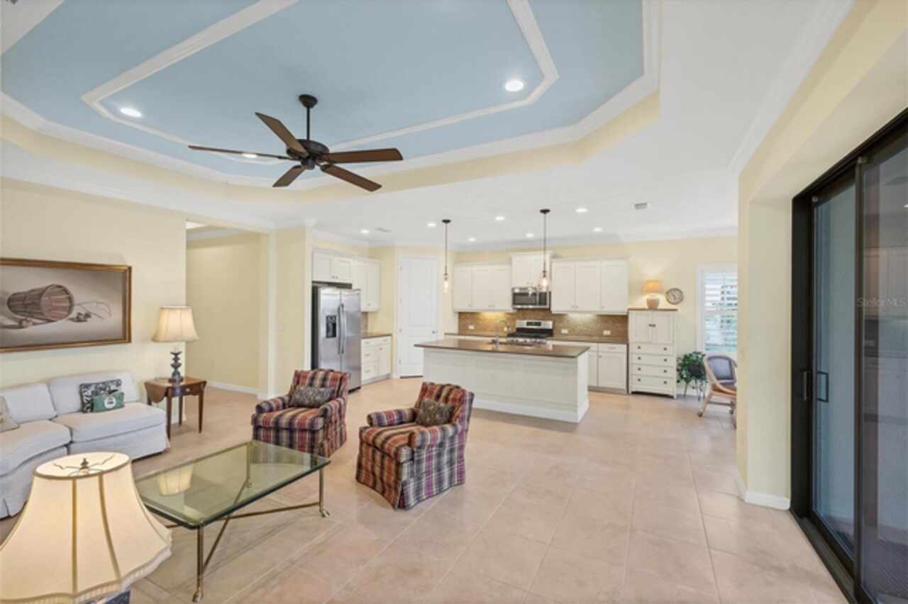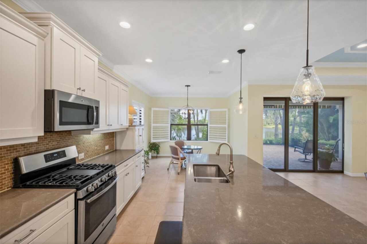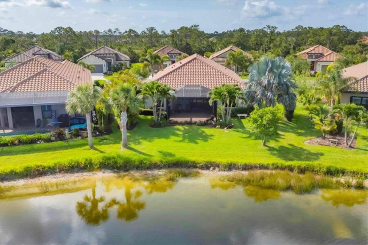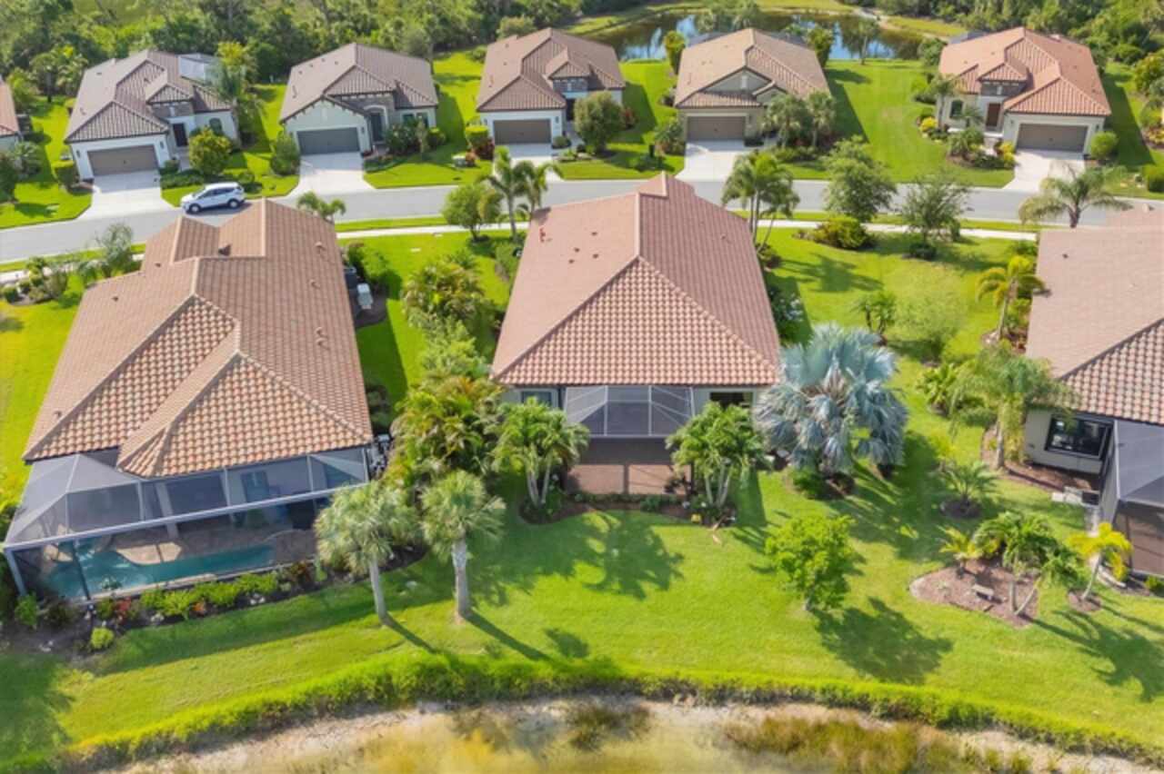 DON'T WAIT TO SEE THIS MAGNIFICENT HOME BEING OFFERED NOW!! Located on a short cul de sac street with little drive through traffic. Boasting a GORGEOUS LAKE VIEW from the extended pavered lanai with SPECTACULAR SUNSETS! Large lot has been transformeed with tropical trees and landscaping to create a peaceful and serene tropical oasis. Perfect for watching wild life. Inside this beautiful home you will find a great room open floor plan with 18" PORCELAIN TILE throughout main areas of home and hardwood in the den up front. Loaded with upgrades this home also features crown molding, tray ceilings, designer fans and fixtures, 4" PLANTATION SHUTTERS and 8' Doors throughout. Kitchen shines with upgraded cabinets, under cabinet lighting, extra recessed lighting, Zodiac counter tops, tile backsplash, stainless steel appliances, and the stove is GAS run for those chefs in the family. Gorgeous Lake views from all main rooms and master bedroom. Let the inside and outside flow together with POCKET SLIDERS TO LANAI. Lanai is pavered ( along with front walk) and extended, with CLEAR VIEW SCREENING to showcase the lake and tropical landscape. Night time is special with outside lighting to make your surroundings glow. If you are tired of the sunshine, there is a RETRACTABLE AWNING WITH LIGHTS, and a RETRACTABLE SIDE SCREEN for shade if desired. Back inside again, property offers 3BD/3BA/DEN. The extremely spacious master bedroom en suite has plenty of room for a king size bed , night stands, and a separate sitting area for reading or watching TV. En suite master bath offers dual sinks, walk in shower, 2 closets and linen closet. Two Guest bedrooms at other end of home for privacy. Guest bedroom 2 has an en suite bath also, perfect for longer staying guests. Separate Den/Office for those who want to work in the home. Eastern exposure in front provides tons of natural light to work with and you can shut the world out with GLASS FRENCH DOORS while still keeping an eye on the comings and goings. Also featured is a whole laundry room with wash sink and hanging/storage racks. 2 Car garage with wall mounts and storage racks. NO REASON TO WORRY ABOUT HURRICANES, HOME WAS BUILT WITH HURRICANE IMPACT WINDOWS AND PROPERTY COMES WITH WHOLE HOUSE KOHLER GENERATOR IF THE LIGHTS DO FLICKER. Electrical system was upgraded. Check out the 3D walk through tour at: https://my.matterport.com/show/?m=vVBf6oLXSd6 Milano is a FANTASTIC GATED COMMUNITY, offering Clubhouse, heated swimming pool, picklball courts, tennis courts, bocce ball, Fire Pit gathering area, dog park, and Myakka River Nature Trails for walking. LOW HOA'S. NO CDD. Located minutes to Downtown Venice, Venice Beach, shopping, restaurants, theaters, outdoor activities, Nokomis Beach, Casey Key, and so much more. The new shops and Atlanta Braves spring training facility is not far away. Up in Sarasota visit the many sights to see at Mote Marine, Selby Gardens, Ringling Museum, and a thriving art center on Main St. Sarasota Airport is just a short drive along with the UTC Mall and shops. Highways are just around the corner. COME SEE THIS BEAUTIFUL HOME NOW BEFORE IT IS GONE!!