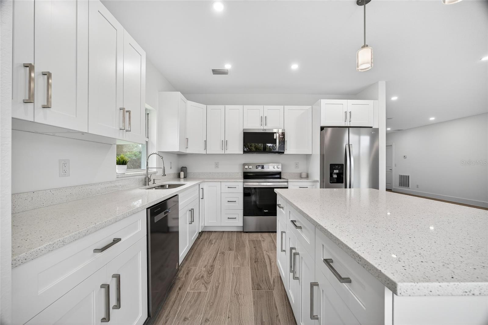 JUST COMPLETED! BRAND NEW, CUSTOM-BUILT 3 BEDROOM, 2 BATH, 2-CAR GARAGE HOME IN PORT CHARLOTTE! Beautiful open floor plan features high ceilings and neutral décor creating a bright and airy ambiance throughout. Well-appointed kitchen offers white cabinetry, quartz countertops, stainless steel appliances, pantry storage and island overlooking dining and living area. Primary suite features a walk-in closet and private bath with walk-in shower. Split floor plan provides guests with plenty of privacy with 2 additional bedrooms with full guest bath in front of home. Additional notable features include tiled showers, inside laundry room, water softener, paver driveway, hurricane impact windows, and no HOA fees or CDD. Plenty of room for a pool. You'll love being conveniently in close proximity to I-75, Murdock restaurant and shopping district, parks, golf, and just a short drive to downtown historic Punta Gorda, noted for its world-class fishing, boating, community events, and entertainment. Don't miss this incredible opportunity! Schedule your private showing today and make this beautiful home yours!