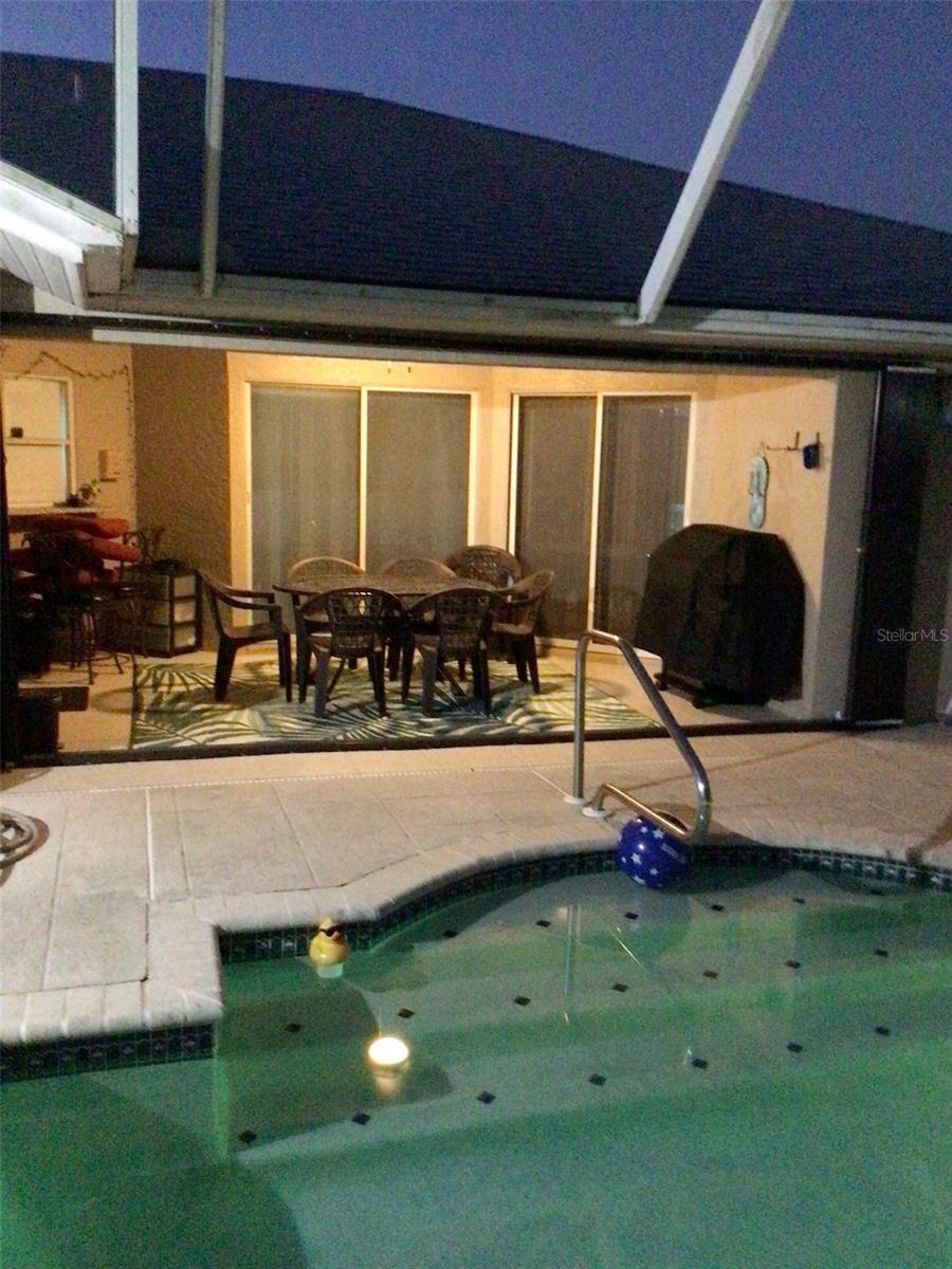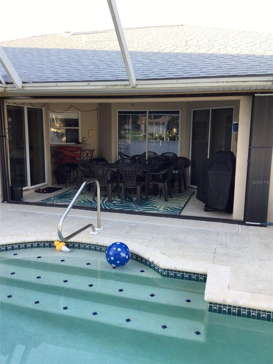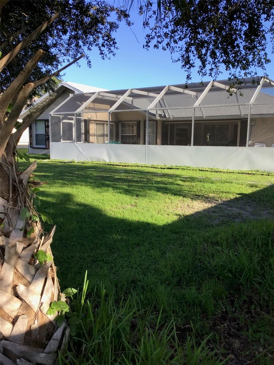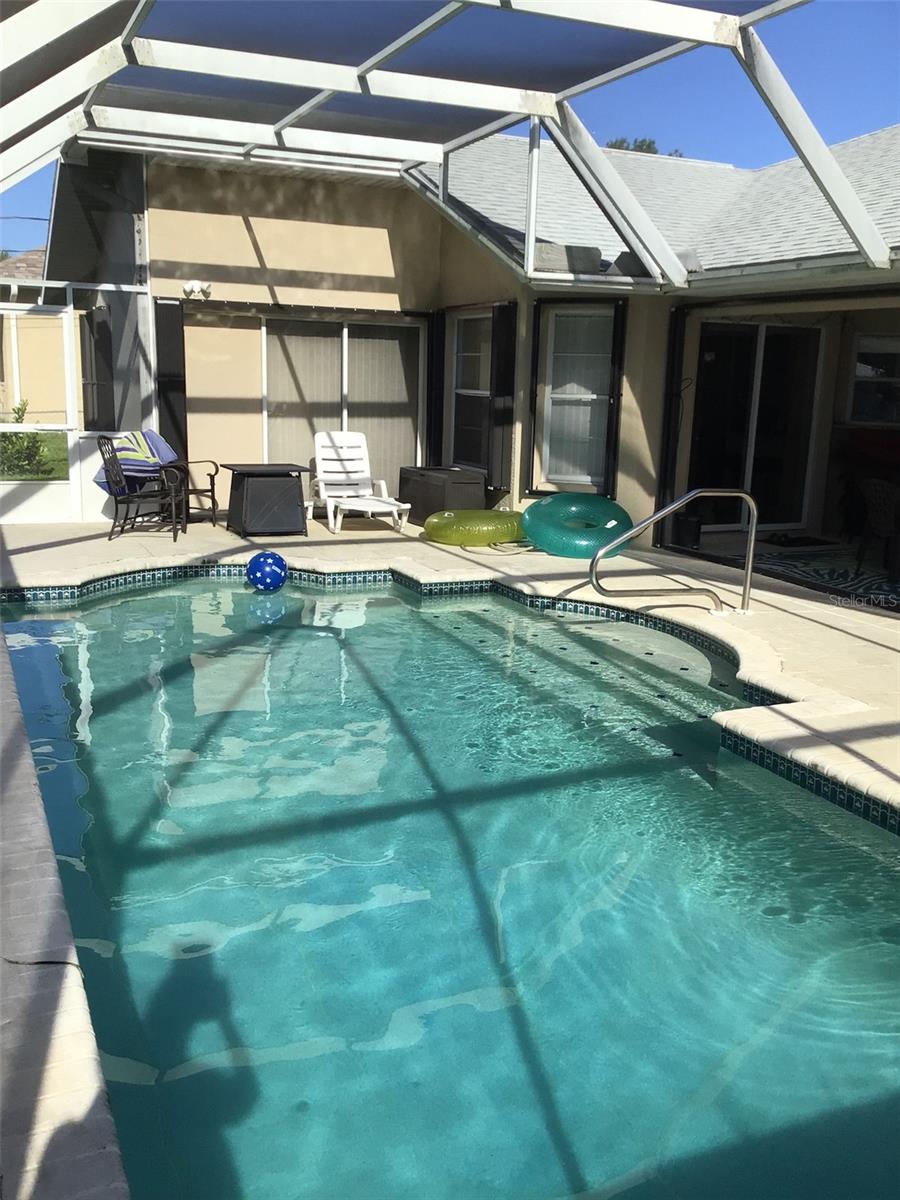 Impressive Pool Home! NOT IN FLOOD ZONE! Sort after Split floor plan with two family rms, one in front & one in back of the house. Two guest rms., & bath on other side of house from main bedroom suite with true walk-in closet & bathroom with shower & separate tub. Inside laundry rm. Kitchen has granite counters & tiled backsplash. All kitchen appliances are updated stainless steel. Designer ceiling lights & fans thru out. Built in Intercom system with radio in kitchen, living rm., bedrooms, lanai, front door, & garage. Major Updates includes, Roof-12-22, AC-2020, Resurfaced pool-2021, Hurricane accordion shutters-2024, pool pump motor-2024, Pool filter-2025, Septic tank-2025. FPL (elec. company) presently installing underground utility. Chain link fencing around large backyard. Sidewalks to stroll to stores & restaurants. Move in ready well maintained home. Must see! Great Buy!