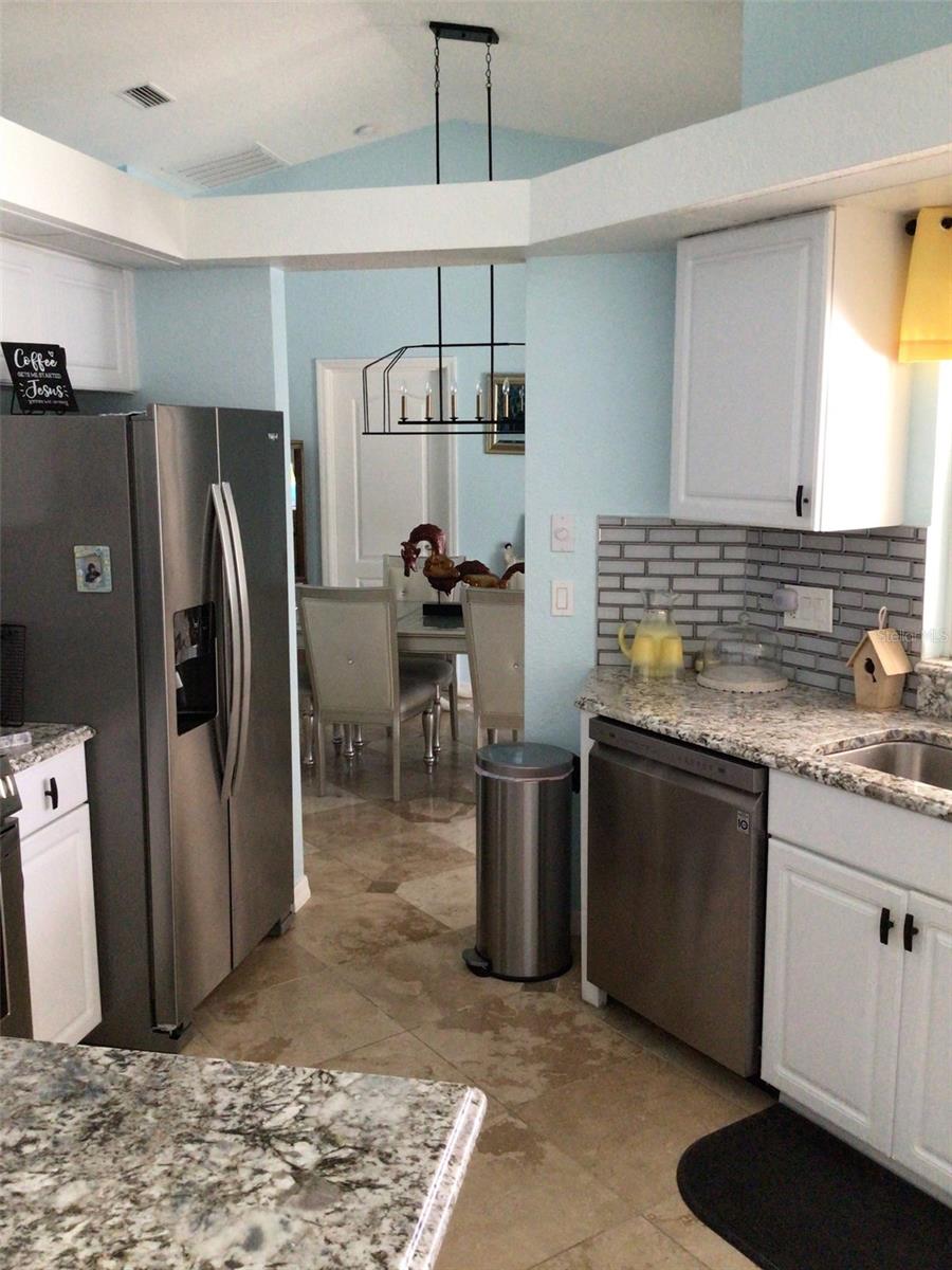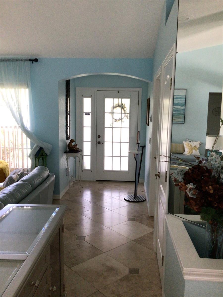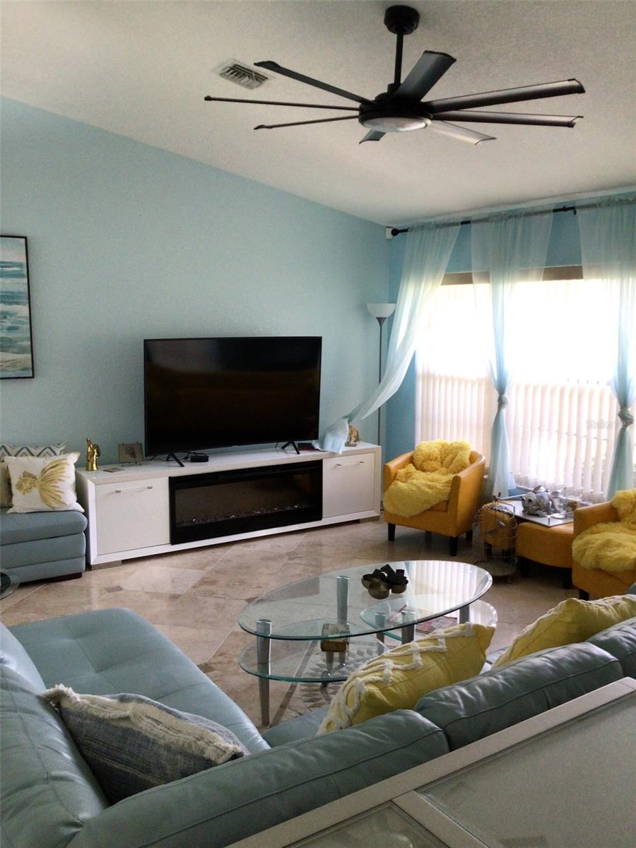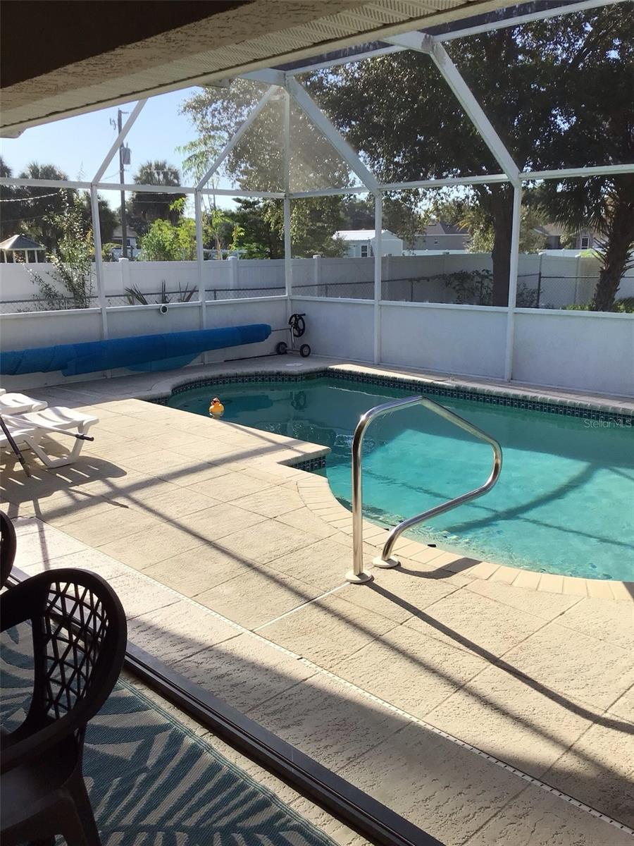 Impressive Pool Home! NOT IN FLOOD ZONE! Sort after Split floor plan with two family rms, one in front & one in back of the house. Two guest rms., & bath on other side of house from main bedroom suite with true walk-in closet & bathroom with shower & separate tub. Inside laundry rm. Kitchen has granite counters & tiled backsplash. All kitchen appliances are updated stainless steel. Designer ceiling lights & fans thru out. Built in Intercom system with radio in kitchen, living rm., bedrooms, lanai, front door, & garage. Major Updates includes, Roof-12-22, AC-2020, Resurfaced pool-2021, Hurricane accordion shutters-2024, pool pump motor-2024, Pool filter-2025, Septic tank-2025. FPL (elec. company) presently installing underground utility. Chain link fencing around large backyard. Sidewalks to stroll to stores & restaurants. Move in ready well maintained home. Must see! Great Buy!