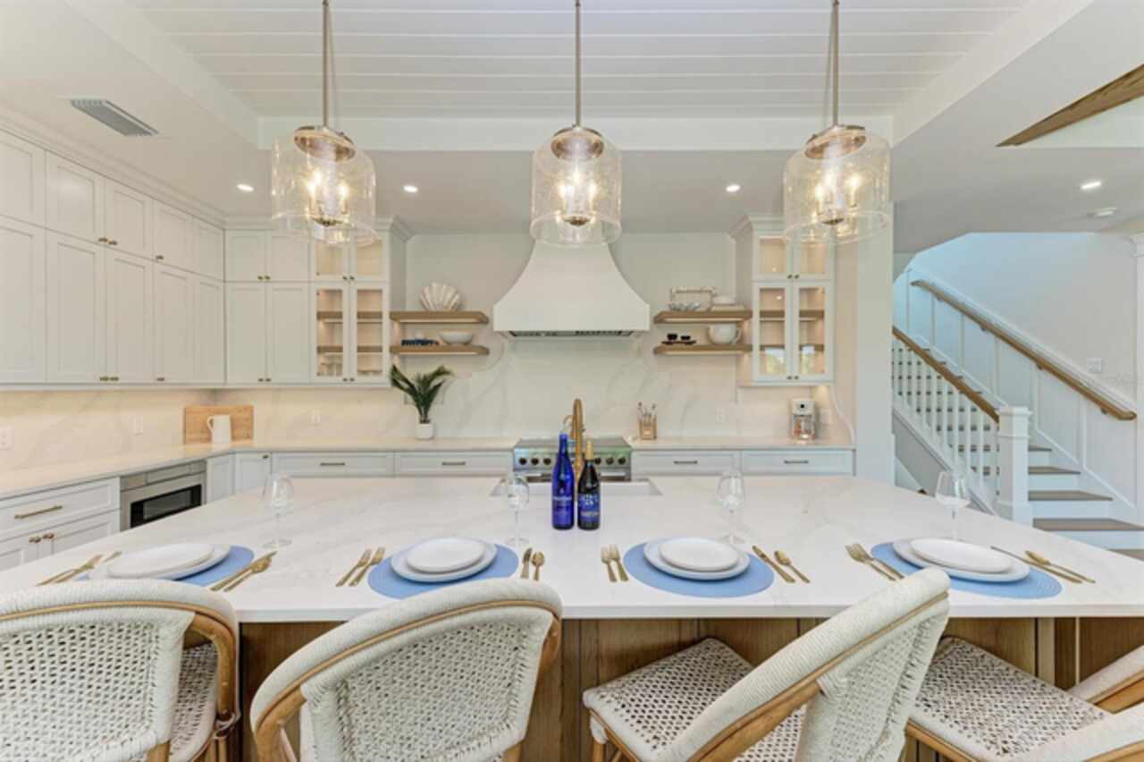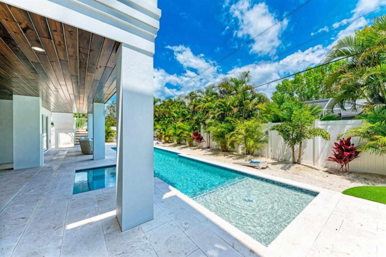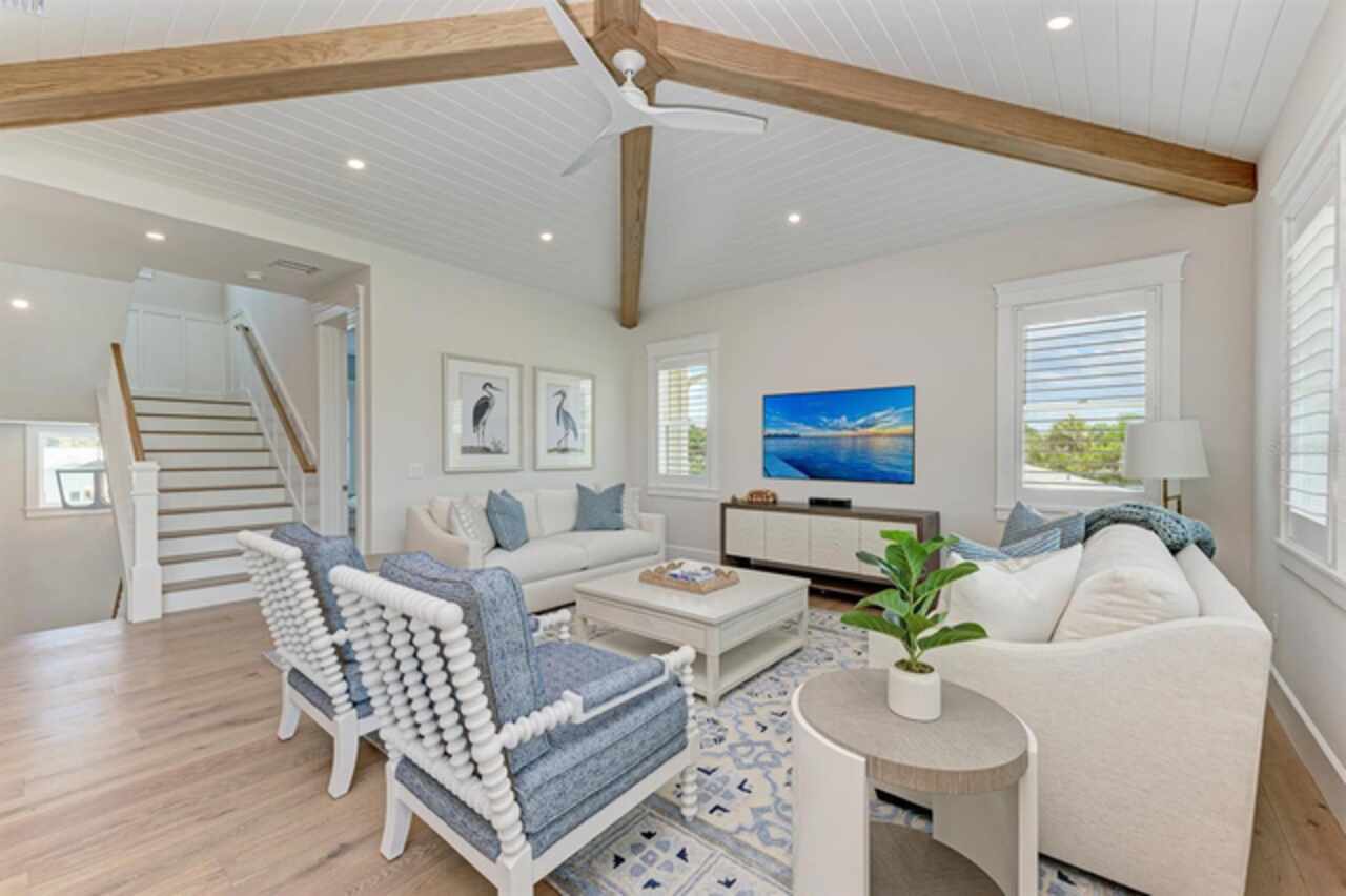 PRICE DECREASE! Sunsational is a freshly built & beautiful new home in Holmes Beach! This four bedroom, 4 and half bathroom heated pool home is impeccably built by Moss Construction and designed by award winning designer Emily Moss Designs. When you lay eyes on the facade of this beautiful home, you will immediately feel its glory and every room inside will do the same. The textures, the colors, the style of each room creates the perfect home for you to live and or continue renting as an investment home. There are just so many things to bring to light about this gorgeous home but one of the most prominent is the back yard. It's literally a space full of beauty and fun. It's Florida outdoor living at its finest. Games, heated pool and spa as well as enough balconies for everyone. The great room creates a space large enough for everyone to come together for dining, movies or anything else the gang wants to do together. Sunsational also gives you and your family or guests the ability to get away into their own spaces. There is a small media room with wet bar upstairs if you just can't agree on a movie. There are numerous balconies to escape to and enjoy the warm air and great views of Holmes Beach. Every bedroom is large and cozy. Three of the bedrooms are en-suites and ready for and your guests and you must see the bunk room. EVERY youngster will dive into bed and love the feel of fun in this super creative use of space. Just 2.5 blocks to the coveted sugary beaches of Anna Maria Island. Spend the morning walking the beach, collecting shells and feel the ocean breeze. Come back from the beach and spend the day at a home you literally may never want to leave. IF you do decide to enjoy the island, you are a golf cart ride, a bike ride away from it all. Hop on the free Trolley and head out to all the hubs of each cities shops and restaurants. This home is amazing and you simply must come see your new home and start living the Anna Maria Life now!