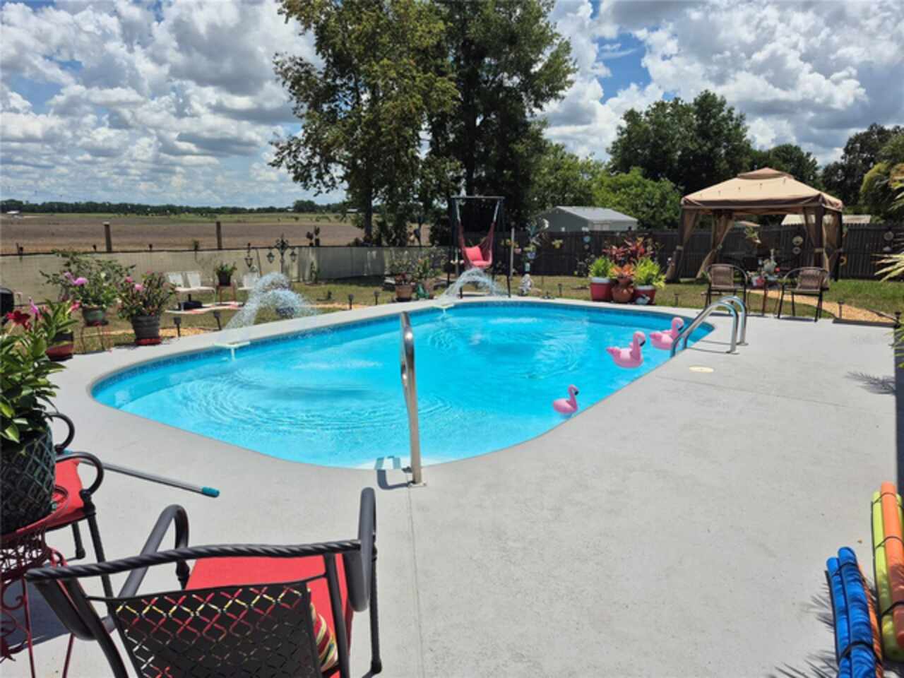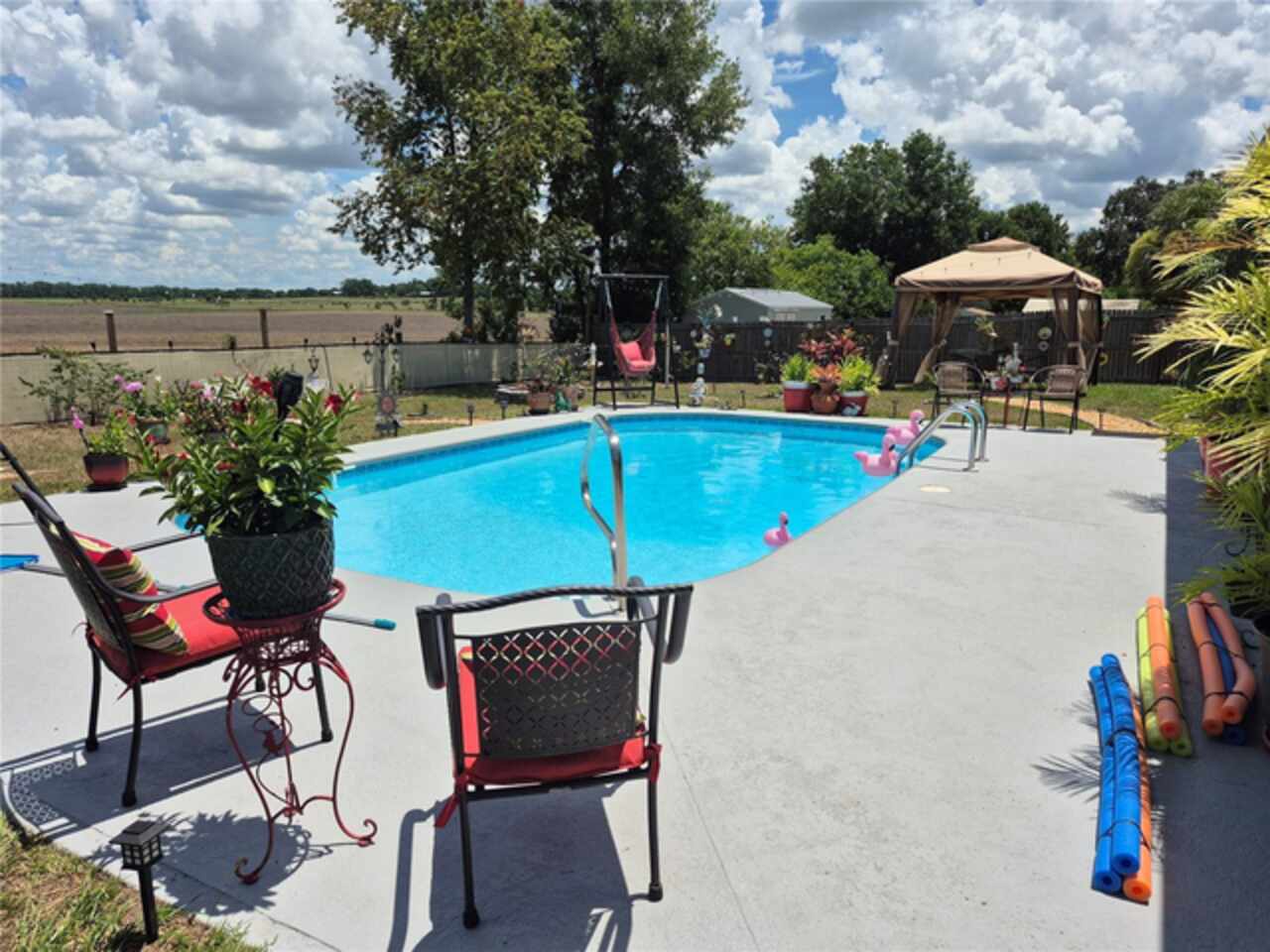 Beautiful pool home just waiting for you to move in and make it your own. Nice 3 bedroom, 2 bath home with lots of storage. Back yard completely fenced with in ground pool just waiting for you to enjoy our beautiful Florida weather. Home features split floor plan with master suite separated from 2 extra bedrooms and pool bathroom. Newer vinyl plank floor in open concept living/kitchen. dining area with plenty of room for large dining room table if you have that need. Living space is cozy with fireplace in the corner. Kitchen has been redone and opened up to living space for you to enjoy entertaining your family and friends or just so you can enjoy cooking while watching your favorite shows on tv. The garage has been modified to give you enclosed storage space for all your extra toys and equipment. Laundry area is in the garage but you have a nice pantry/mud room upon entering the house from the garage, which has being converted to a nice office/media/ theater, with Many modifications to the home to make it handicap friendly such as lower light switches. This is a must see - so close yet privacy with a privacy fence around backyard and nothing but farmland behind. Some of the most amazing sunsets will be right over your pool; how much nicer can it get?. Don't miss out on this amazing home with magnificent potential and close to the River , attractions , and Restaurants in town.