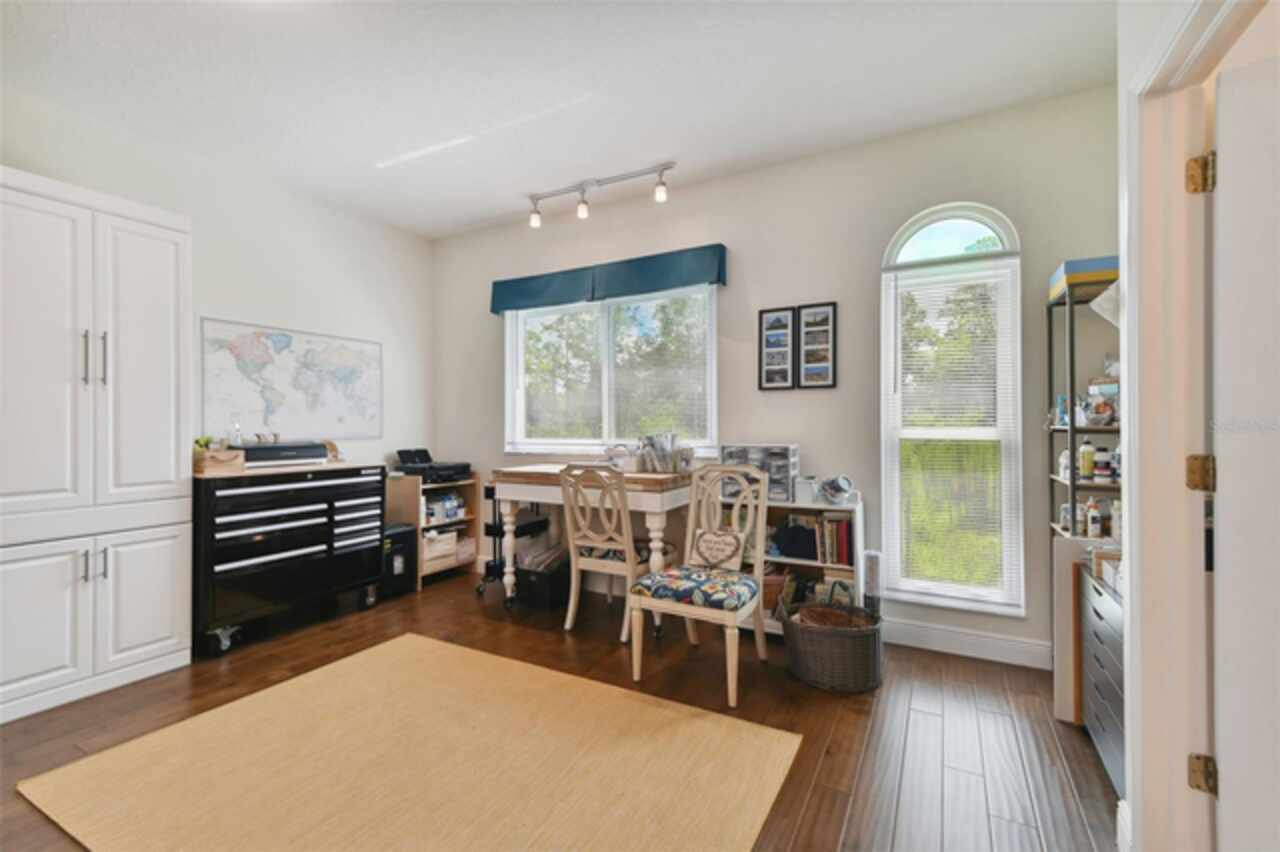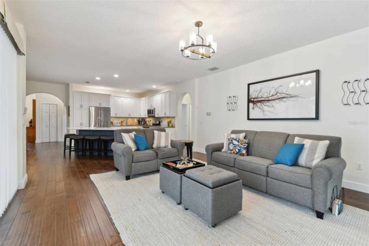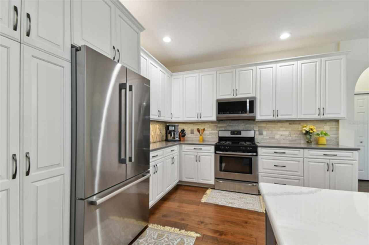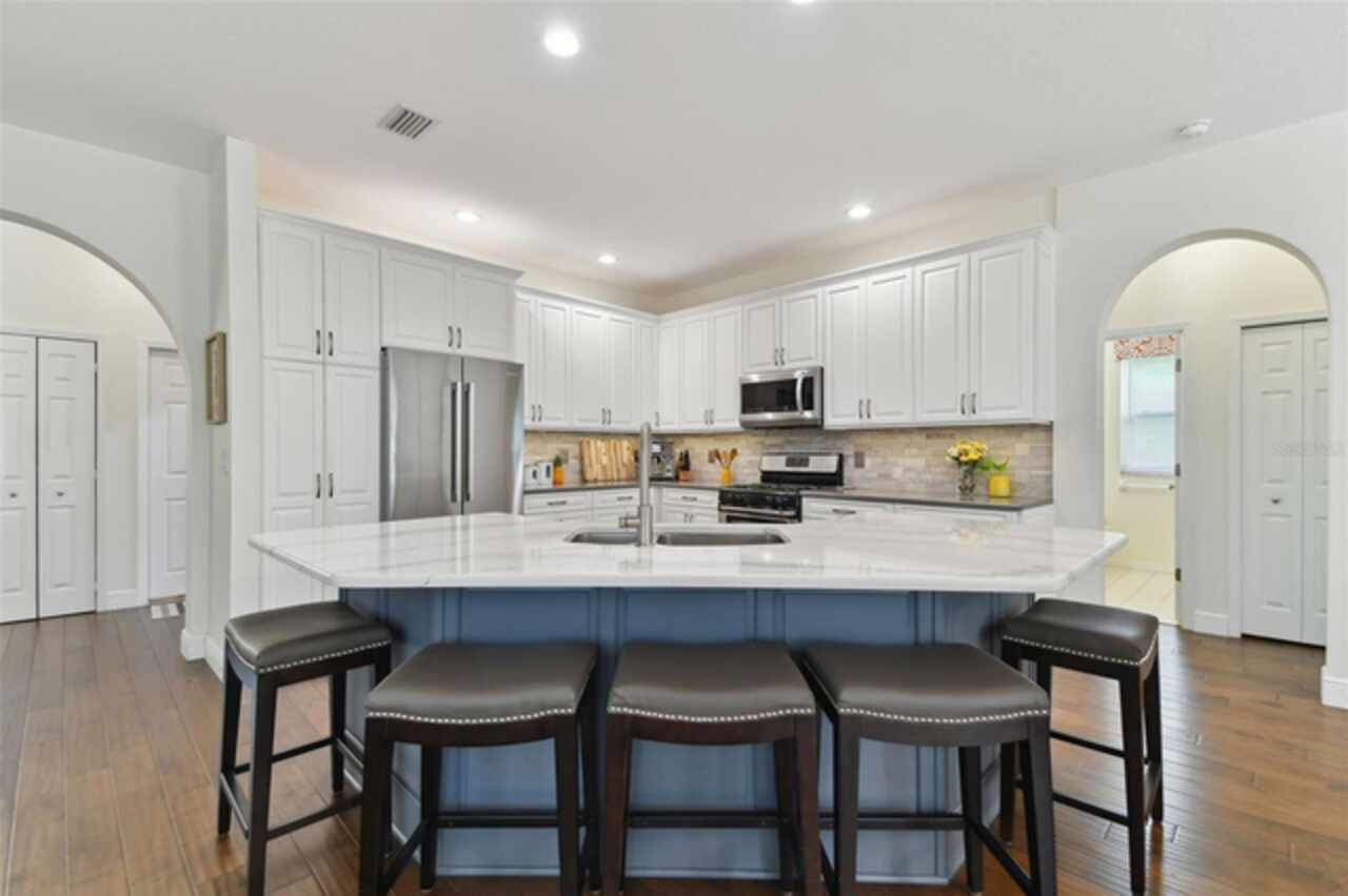 BACK ON MARKET- BUYER CANCELLED BEFORE INSPECTIONS. Settle in to your dream home in the coveted subdivision of Warwick Hills within Eastlake Woodlands. You'll be pleased to know this home sustained no damage from the 2024 hurricanes. Eastlake Woodlands is a renowned golf and tennis community that offers a full range of amenities for an additional membership including the fully remodeled Ardea Country Club, championship golf courses, tennis, pickle ball, resort style pools and more. This stunning 4bedroom, 3 bath pool home spans 2, 673 sf and offers a bevy of upgrades. Step into the fully updated kitchen, featuring beautiful quartz counters, newer stainless steel appliances, updated cabinetry and large center island- perfect for any culinary enthusiast. The 3 way split floor plan boasts brand new wood floors throughout the main living area and primary suite, providing a warm and inviting atmosphere. Relax on the outdoor screened patio that faces a serene conservation area, where you can enjoy watching deer and other wildlife or splash in the cool pool. The spacious lot, over 8, 000 sq. ft., offers plenty of room for outdoor activities and entertainment. Modern upgrades include a tankless water heater installed in 2024, brand new impact windows (except for the sliding door and corner windows) in 2023, and fresh exterior paint in 2024. The house also features a suburban propane tank and the patio is plumbed for gas, making it ready for an outdoor kitchen. Don‘t miss out on this incredible opportunity to own a meticulously maintained home in a desirable location. Schedule your showing today and experience all that this Eastlake Woodlands gem has to offer!