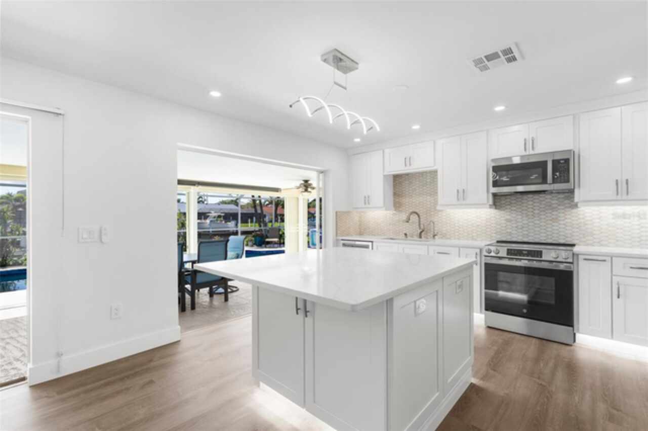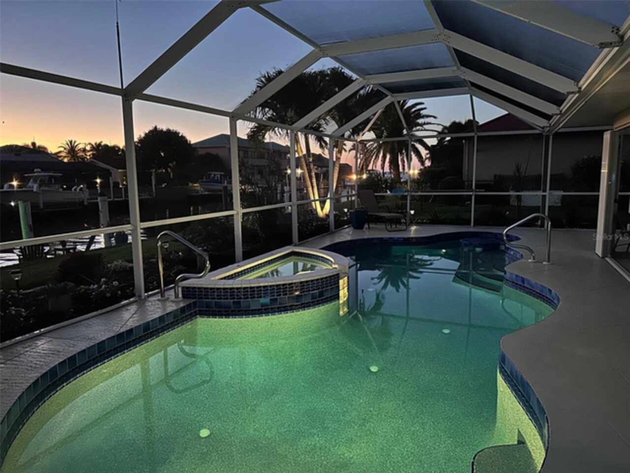 One or more photo(s) has been virtually staged. Price Improvement! Welcome to Your Waterfront Oasis in Punta Gorda Isles Be sure to watch the Virtual Tour in Link 1 Step into this beautifully upgraded 3-bedroom, 2-bathroom home, perfectly situated on a premier sailboat-access canal just seconds from the serene Peace River. Enjoy direct, no-bridge access to Charlotte Harbor and the Gulf of America, making this an unbeatable location for boating enthusiasts. A true boater’s paradise, this property features 80 feet of city-maintained seawall, a 60-foot dock, and a new 12, 000-pound boat lift—providing effortless access to open waters right from your own backyard. Experience the best of Florida outdoor living with a spacious covered lanai, elegant paver patio, and a sparkling saltwater pool and spa with a tranquil waterfall. Surrounded by lush tropical landscaping—including a mature mango tree, key lime tree, vibrant flower beds, and swaying palms—your backyard truly feels like a private resort. Inside, the home impresses with a New A/C, and fully renovated kitchen featuring sleek finishes, brand-new appliances, and ample counter space, all seamlessly integrated into a bright, open-concept living and dining area—perfect for entertaining or relaxing in comfort. A whole-house water softener/ filtration system ensures clean, high-quality water throughout. With a brand-new 2025 tile roof and a transferable flood insurance policy offering added value, security, and savings, this home is not only beautiful but also built for lasting peace of mind. Whether you're watching the sunset from your lanai, cruising out for a day on the water, or unwinding by the pool, this is your private slice of paradise. Don’t miss this rare opportunity to own prime waterfront property in one of Southwest Florida’s most desirable communities.
