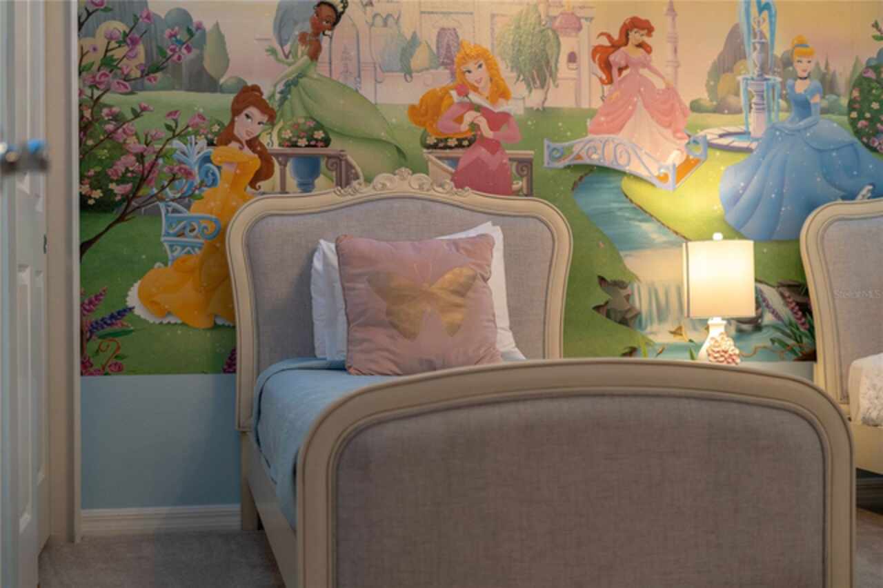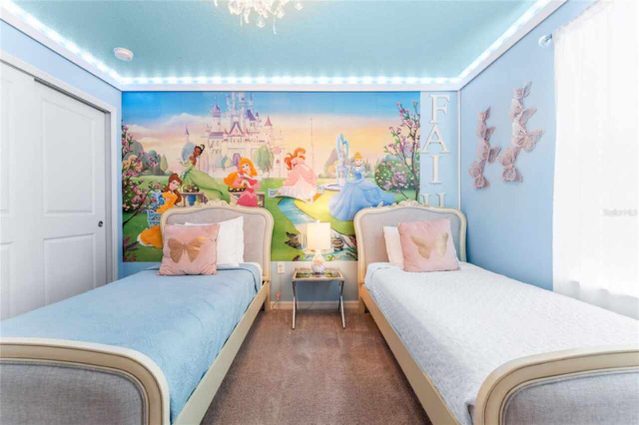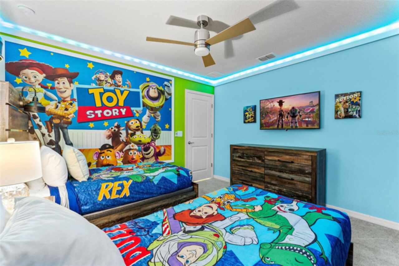 MAGICAL INCOME PRODUCER OR DREAM VACATION HOME – JUST 8 MILES FROM DISNEY! Welcome to your fully furnished 8-bedroom, 6-bathroom pool home in the exclusive Windsor Island Resort—a premier gated community offering unparalleled amenities and proximity to Central Florida's top attractions. Whether you’re seeking the perfect short-term rental investment or your own personal retreat, this beautifully maintained and heavily upgraded home has it all. Inside, you’ll find a bright and spacious open-concept layout designed for entertaining large groups. The kitchen is fully equipped with modern finishes, ample seating, and a new dishwasher, ideal for hosting family and guests with ease. Each bedroom has been uniquely themed to delight guests of all ages—including Star Wars, Toy Story, and Princess-themed rooms, all featuring new beds and mattresses for ultimate comfort. The Star Wars room now includes a new king-size bed, and both the Toy Story and Princess rooms have been outfitted with new bed frames and mattresses. Entertainment takes center stage in this home, starting with a vintage-style home theatre and continuing into the show-stopping Avatar-themed game room. This completely converted garage space features hand-painted blacklight murals, shuffleboard, pool table, foosball, air hockey, and dual gaming stations with TVs. A new wall-mounted mini-split AC unit (installed ’23) keeps the space cool and comfortable year-round. Step outside to your oversized screened-in lanai, where a private pool and spa await—perfect for sun-soaked afternoons or nighttime swims under the stars. A new pool filter ensures smooth operation, while the brand-new outdoor grill is ready for family cookouts and al fresco dining. Upgrades over the past 12 months include: • New W/D, Dishwasher • Bedding, towels, and linens throughout (roughly 2 full sets) • New Point Central Access Control System for seamless smart home integration—manage door locks, pool, thermostat, and cameras remotely. Windsor Island Resort offers resort-style amenities that include a lazy river, waterslide, zero-entry pool, splash pad, hot tub, cabanas, 9-hole mini golf, fitness center, sports courts, playgrounds, arcade, full-service restaurant and bar, and a 24-hour manned security gate. Located just minutes from Walt Disney World and a short drive to Universal Studios, SeaWorld, shopping, dining, and golf, this home is the total package for owners and guests alike. Whether you’re looking for a personal vacation getaway or a high-performing turnkey rental property, this stunning home checks every box. Fully furnished and rental-ready—schedule your private showing today!