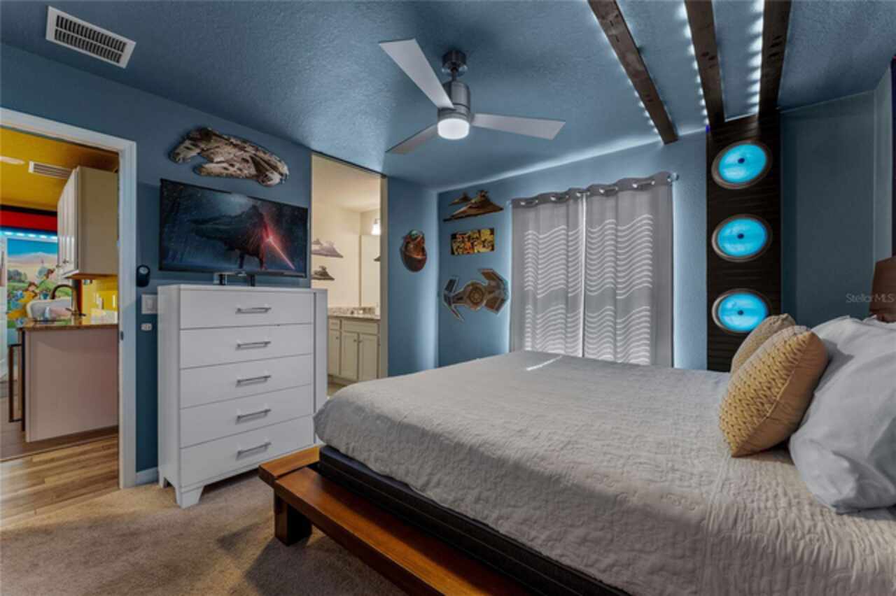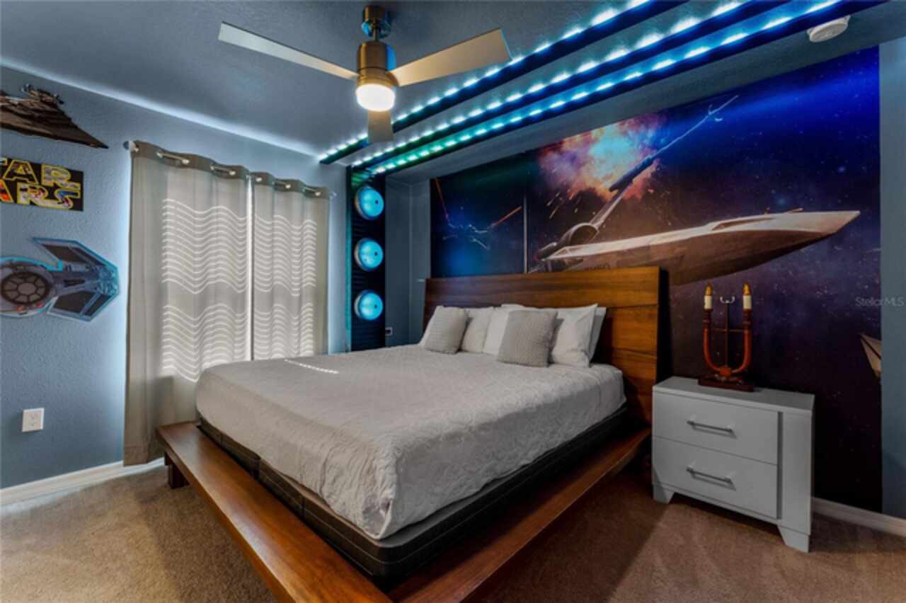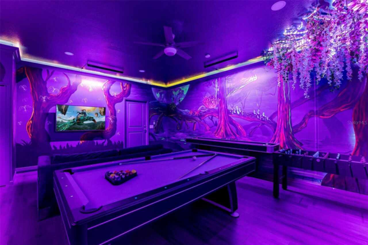 MAGICAL INCOME PRODUCER OR DREAM VACATION HOME – JUST 8 MILES FROM DISNEY! Welcome to your fully furnished 8-bedroom, 6-bathroom pool home in the exclusive Windsor Island Resort—a premier gated community offering unparalleled amenities and proximity to Central Florida's top attractions. Whether you’re seeking the perfect short-term rental investment or your own personal retreat, this beautifully maintained and heavily upgraded home has it all. Inside, you’ll find a bright and spacious open-concept layout designed for entertaining large groups. The kitchen is fully equipped with modern finishes, ample seating, and a new dishwasher, ideal for hosting family and guests with ease. Each bedroom has been uniquely themed to delight guests of all ages—including Star Wars, Toy Story, and Princess-themed rooms, all featuring new beds and mattresses for ultimate comfort. The Star Wars room now includes a new king-size bed, and both the Toy Story and Princess rooms have been outfitted with new bed frames and mattresses. Entertainment takes center stage in this home, starting with a vintage-style home theatre and continuing into the show-stopping Avatar-themed game room. This completely converted garage space features hand-painted blacklight murals, shuffleboard, pool table, foosball, air hockey, and dual gaming stations with TVs. A new wall-mounted mini-split AC unit (installed ’23) keeps the space cool and comfortable year-round. Step outside to your oversized screened-in lanai, where a private pool and spa await—perfect for sun-soaked afternoons or nighttime swims under the stars. A new pool filter ensures smooth operation, while the brand-new outdoor grill is ready for family cookouts and al fresco dining. Upgrades over the past 12 months include: • New W/D, Dishwasher • Bedding, towels, and linens throughout (roughly 2 full sets) • New Point Central Access Control System for seamless smart home integration—manage door locks, pool, thermostat, and cameras remotely. Windsor Island Resort offers resort-style amenities that include a lazy river, waterslide, zero-entry pool, splash pad, hot tub, cabanas, 9-hole mini golf, fitness center, sports courts, playgrounds, arcade, full-service restaurant and bar, and a 24-hour manned security gate. Located just minutes from Walt Disney World and a short drive to Universal Studios, SeaWorld, shopping, dining, and golf, this home is the total package for owners and guests alike. Whether you’re looking for a personal vacation getaway or a high-performing turnkey rental property, this stunning home checks every box. Fully furnished and rental-ready—schedule your private showing today!