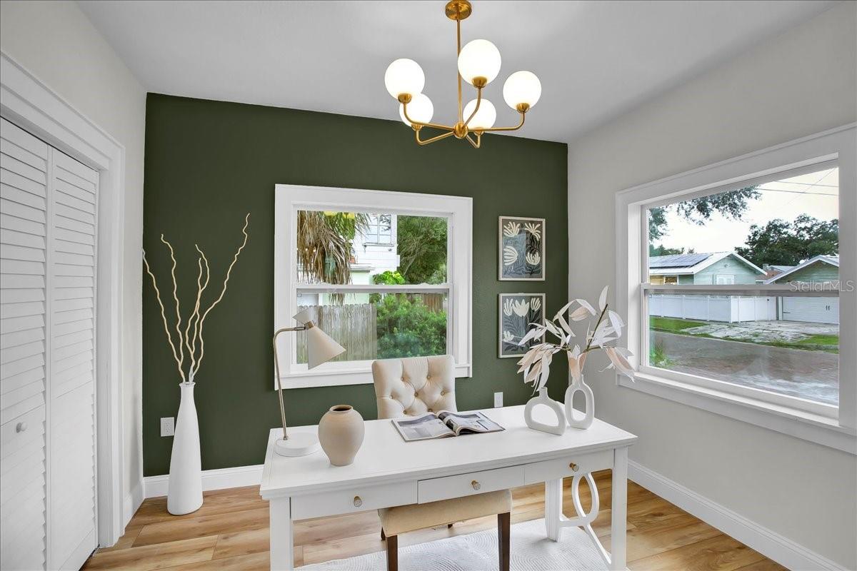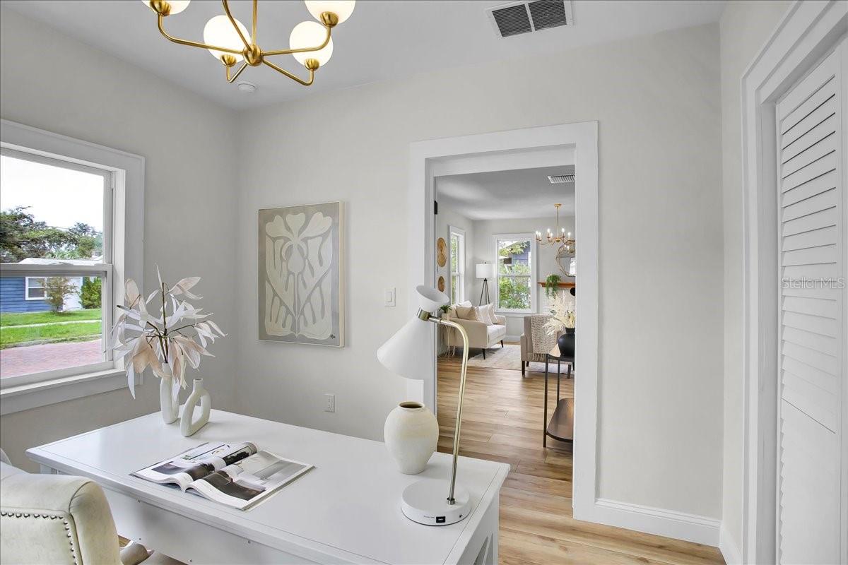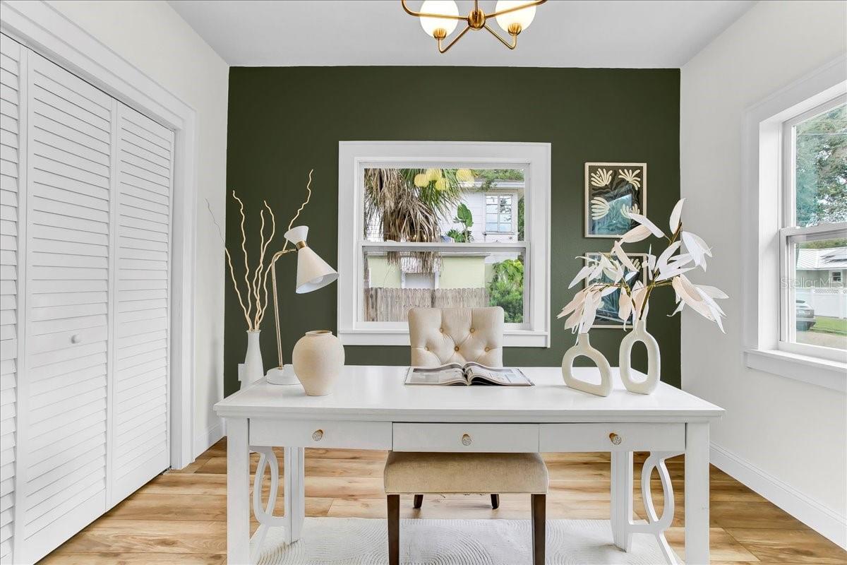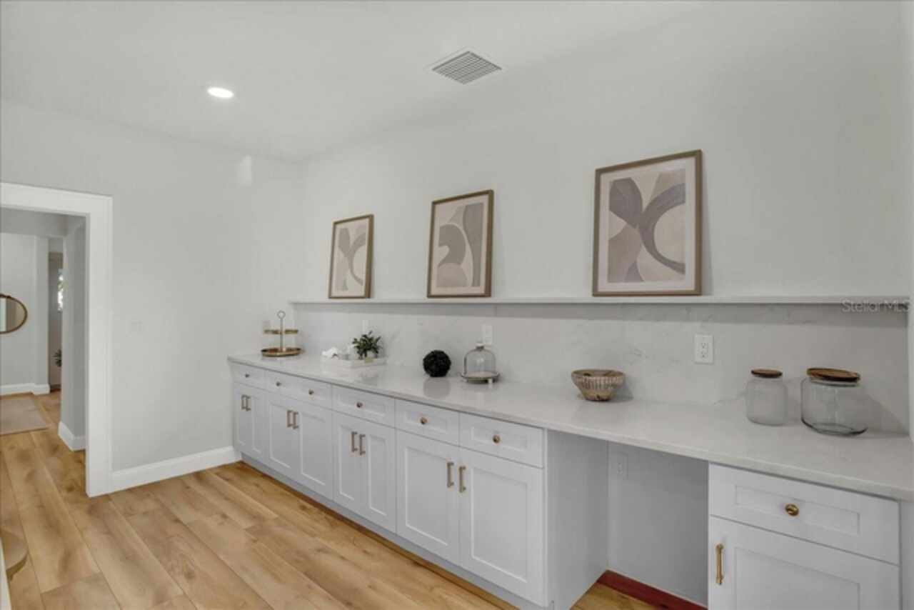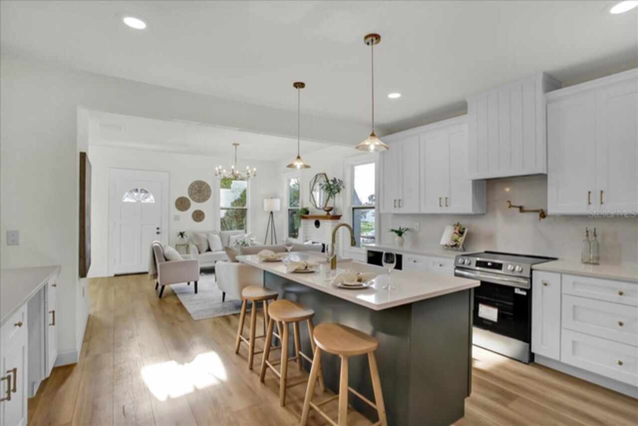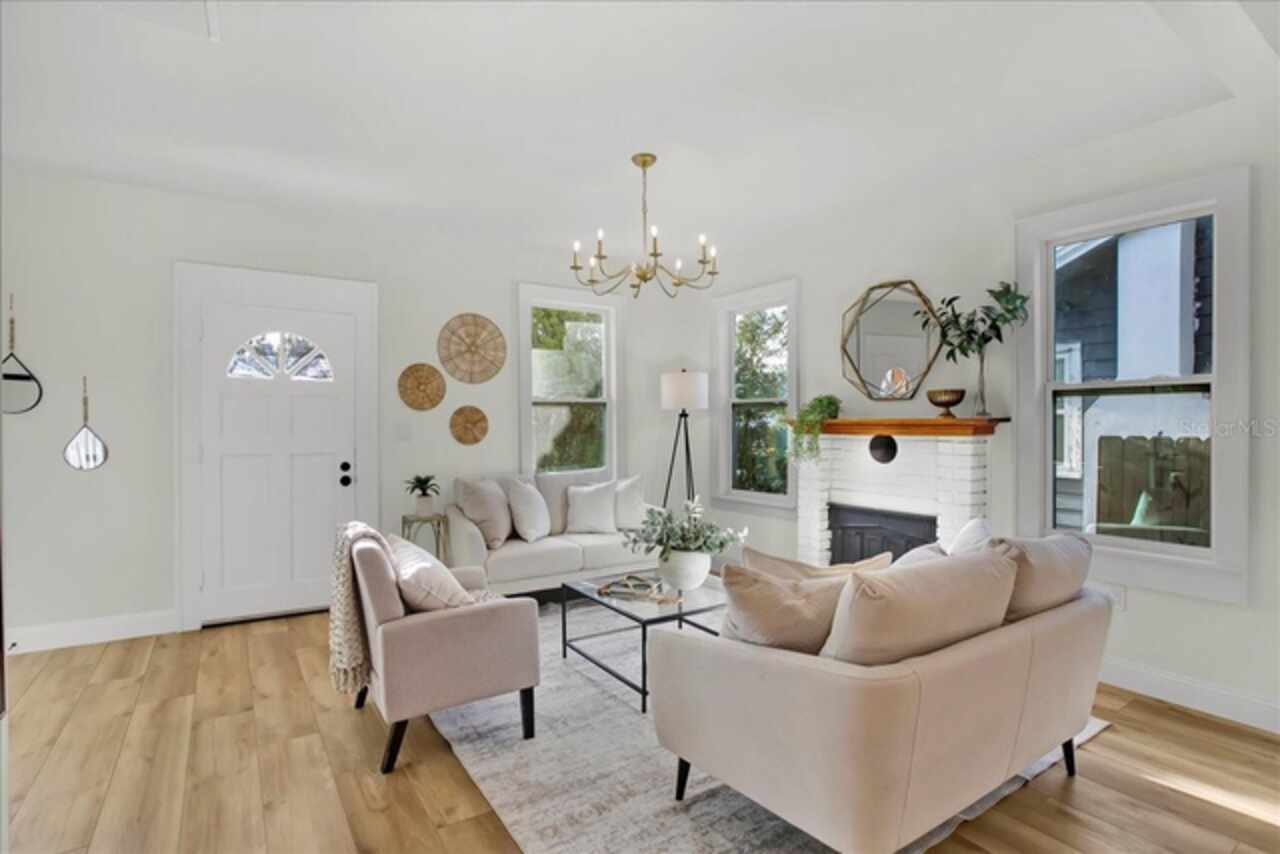 Step inside this stunning 3-bedroom, 2-bath, 1, 487 sq ft home and experience the perfect blend of modern updates, timeless charm, and a thoughtfully designed layout. You’re greeted by the spacious living room with soaring ceilings and a cozy fireplace, setting the tone for both comfort and style. To the right, a bright office (or third bedroom) offers the perfect space for working from home or creative pursuits. Continue through the home and you’ll find the heart of the house: a chef’s kitchen with a massive island and an extended dry bar across the way—a dream for entertaining. Just beyond, the formal dining room provides an inviting space for gatherings with family and friends. The guest bath is conveniently located off the main living area, while the master suite and additional guest bedroom are tucked to the right past the kitchen, offering privacy and retreat. The master features a spacious layout and a luxuriously updated bathroom. Outside, enjoy a freshly updated yard with new sod, lush landscaping, new fencing, and impact-resistant windows for peace of mind. All of this comes in a prime location—high and dry (no flood zone), just 5 minutes to vibrant Downtown St. Pete and 10 minutes to the award-winning beaches of St. Pete Beach and Treasure Island. This home is truly move-in ready, turnkey, and designed for today’s lifestyle. Schedule your private showing today—this one won’t last!