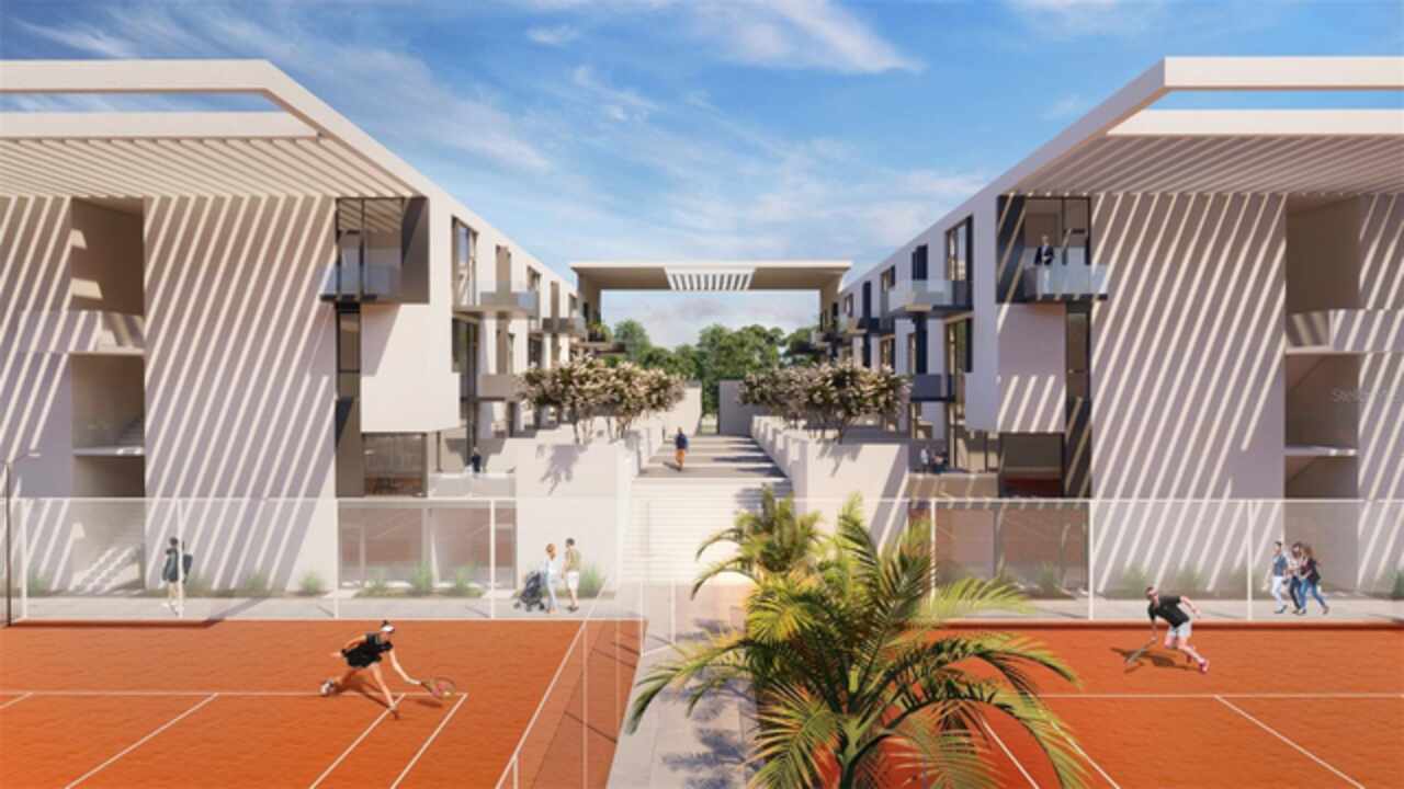 Under contract-accepting backup offers. Pre-Construction. To be built. One or more photo(s) has been virtually staged. Preconstruction. To be built…Welcome Home to the Active lifestyle of the new Bath and Racquet Community available now for pre-sale. The new iconic First of its kind, Bath and Racquet Residences and Club consists of 256 condominiums featuring 1, 2, and 3 bedroom units built around the Brand new Bath and Racquet tennis facility & state of the art Pickleball courts. This beautiful complex features a residences swimming pool, 1 kilometer walking trail, playground, dog park, cabanas, and the option to be a member of the exclusive Bath and Racquet Club, which will feature multiple Tennis and Pickleball courts, Resort style swimming pool, a restaurant and a fitness center. Pickleball courts will be available both outdoor and indoor. We are approximately 3 miles to the award winning Siesta Key beaches, 3 miles to downtown Sarasota and walking distance to CineBistro Cinemas and many restaurants. This luxurious community features floor to ceiling windows, a superb kitchen appliance package, Quartz countertops and a washer and dryer hook up in all of the units. Elevators and covered parking is also part of this world class project. Homebuyers have a selection of 29 different floor plans and the option to lease their unit for seven night minimum stay. Make appointment to come into Design Center today at 1549 Ringling Blvd. #600, Sarasota- to see available Condos.