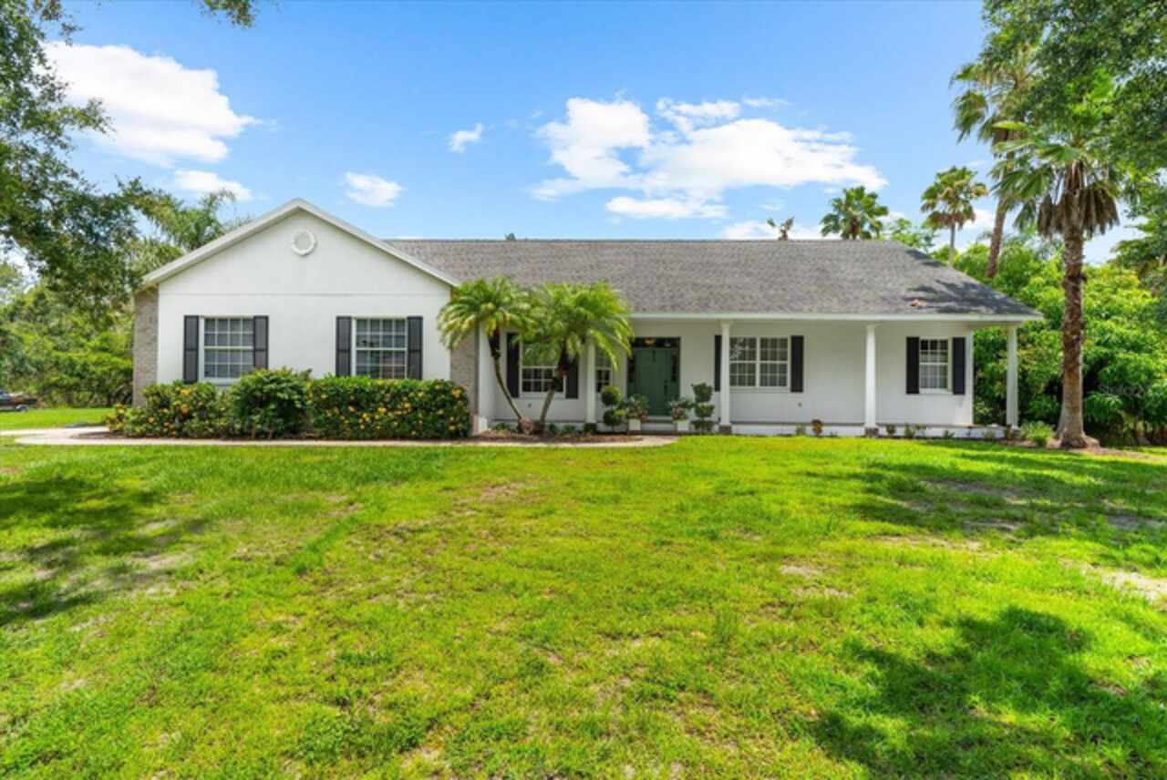 Under contract-accepting backup offers. Significant Price Reduction!!!****Incredible Opportunity in Panther Ridge.... Home is now vacant and refreshed! Easy to show! This home is priced to sell! Welcome to your own private retreat on over 9 acres in the heart of Manatee County’s most sought after equestrian community. Tucked away at the end of a quiet street, this beautiful property offers the peaceful lifestyle so many dream of, with room for chickens, cows, horses, and even future expansion with up to three total structures permitted including barns or workshops with HOA approval. Custom built by Cahill Homes, this three bedroom plus den, two bath residence is ideally positioned on one of the largest spring fed lakes in Panther Ridge. From nearly every angle, you will enjoy breathtaking views and frequent visits from deer, cranes, eagles, turtles, and more. The home has been tastefully updated and thoughtfully maintained, featuring a popular great room layout with vaulted ceilings, a skylight, a cozy brick fireplace, and a formal dining area as well as a spacious breakfast nook with oversized windows that bring the outdoors in. The chef’s kitchen boasts solid wood cabinetry, stainless steel appliances including a double convection oven, granite countertops, and vinyl plank flooring throughout the main living spaces. The owner's suite includes sliding doors to the pool area, a generous walk in closet, and a luxurious spa style bath with a Roman walk in shower and soaking tub. Outdoors, unwind on the travertine pool deck under a tongue and groove wood ceiling lanai. The saltwater pool and spa overlook the lake, where you can fish, canoe, or simply relax on your own private beach. Follow the walking trail through native cypress, pine, and oak trees and gather around the firepit for peaceful evenings under the stars. Sunrise and sunset views reflect beautifully across the always full lake, which is stocked with tilapia. Additional highlights include an extra deep 20 by 28 side entry garage, a full laundry room, and a variety of fruit trees planted around the property. Recent upgrades include a new roof in 2018, a solar powered automatic driveway gate, upgraded gig speed internet, a new washer in 2022, new pool heater 2024, two new AC systems in 2024, brand new garage door 2024, new hot water heater, reverse osmosis water system, and conversion of the pool to a salt system. Residents of Panther Ridge enjoy a neighborhood park with sports fields, a horse only area, basketball court, and playground. Miles of scenic trails for hiking and riding offer a sense of true country living, while nearby Lakewood Ranch brings shopping, dining, and top rated schools just minutes away. Sarasota’s renowned beaches, St Pete, and Tampa are also within easy reach. Whether you are looking for a tranquil personal homestead, space for animals, or a forever home surrounded by nature, this special property offers a rare blend of privacy, convenience, and character. Inquire about owner financing option.
