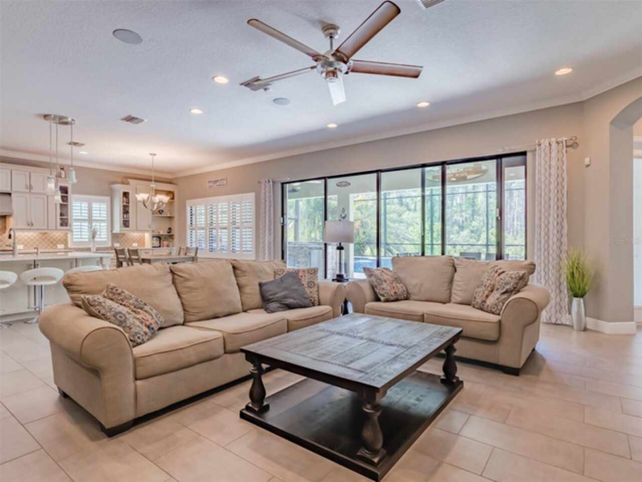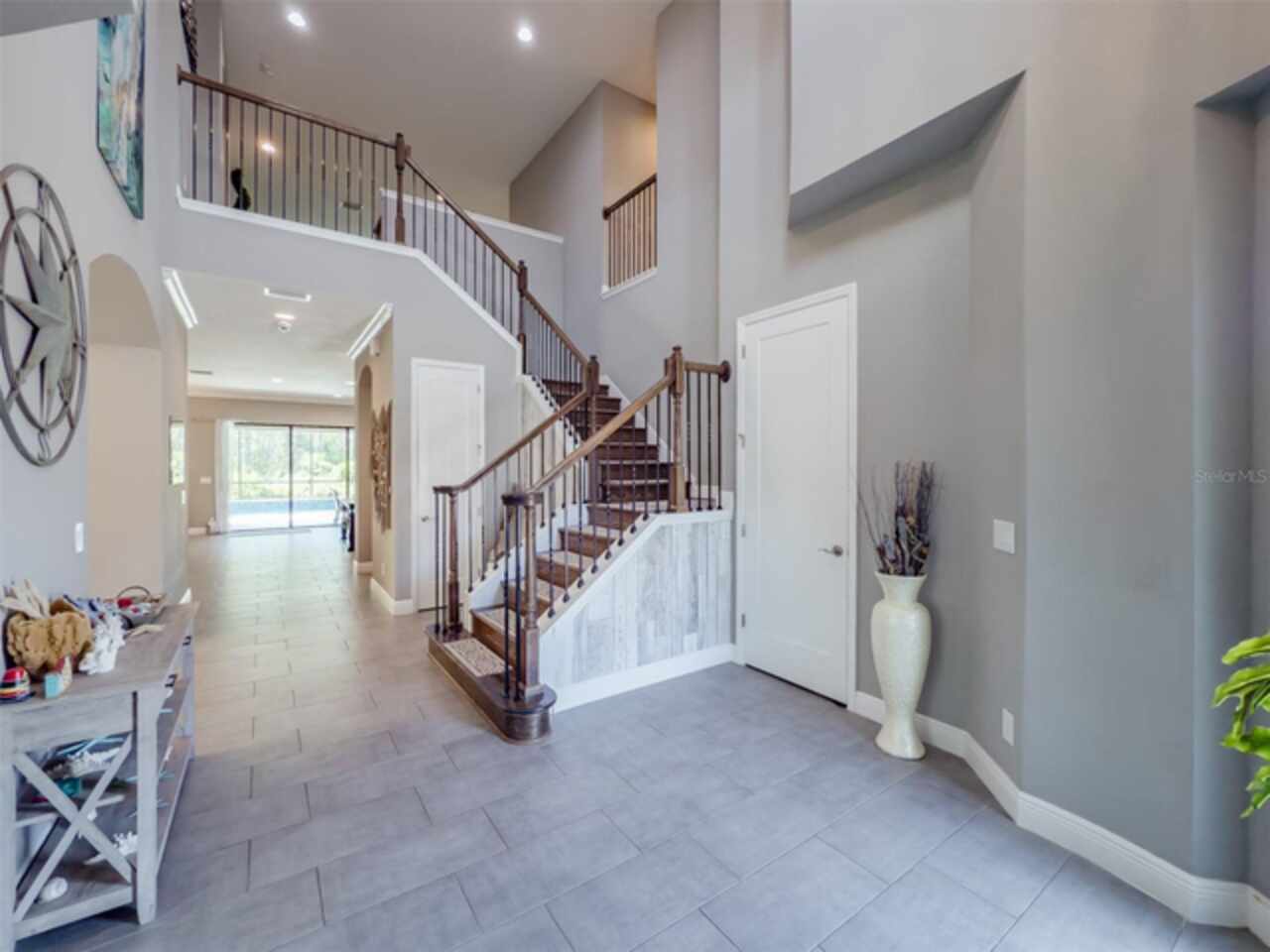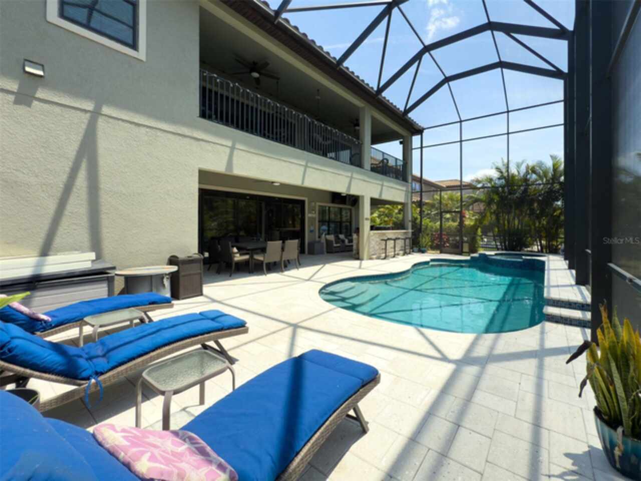Under contract-accepting backup offers. Price Improvement!! Luxury just became more attainable! Welcome to a residence where timeless design meets modern luxury. This meticulously crafted 5-bedroom, 4.5-bathroom estate invites you in through a dramatic rotunda entrance, setting the tone for the sophisticated elegance that unfolds throughout the home. From the moment you step inside, you're greeted by soaring ceilings, architectural archways, and an abundance of natural light that enhances the home’s warm yet refined ambiance. The spectacular rotunda foyer welcomes you into both the den and formal dining, leading into the spacious and inviting kitchen and living room. The heart of the home is the chef’s dream kitchen—complete with high-end stainless-steel appliances, custom cabinetry, an oversized island, and quartz countertops—seamlessly flowing into a spacious great room and outdoor oasis, ideal for elevated entertaining. A stunning floor-to-ceiling stone fireplace serves as the focal point of the living space, blending rustic charm with refined elegance. Flanked by custom built-in shelves, it offers both warmth and functionality—perfect for displaying curated décor, cherished books, or art pieces. The rich texture of natural stone adds depth and character, creating a cozy yet sophisticated atmosphere that anchors the heart of the home. Each bedroom is thoughtfully appointed, offering generous spaces, ensuite access, and walk-in closets, including a lavish primary suite featuring a spa-inspired bathroom and serene views of the outdoor retreat. A spacious bonus retreat awaits upstairs as well, perfect as a media room, game lounge, or anything your heart desires. Anchored by a sleek wet bar with custom cabinetry, this elevated space is designed for effortless entertaining. Expansive sliding glass doors open to a covered top deck, offering sweeping views of the resort-style pool, bubbling spa, and lushly landscaped backyard. Whether you’re hosting cocktail evenings under the stars, enjoying alfresco dining in the outdoor kitchen area, or simply relaxing poolside, this backyard oasis offers the ultimate in privacy and luxury. Located in the heart of Land O' Lakes in the gated community of Pristine Lakes Preserves, this house sits in a neighborhood of only 120 exclusive homes. Surrounded by natural preserves and woodlands, residents have access to the community dock on 25-acre Curve Lake. Conveniently located close to top-rated schools, shopping, dining, recreation and major highways, this home is the ideal floorplan in the perfect location for Florida Living.