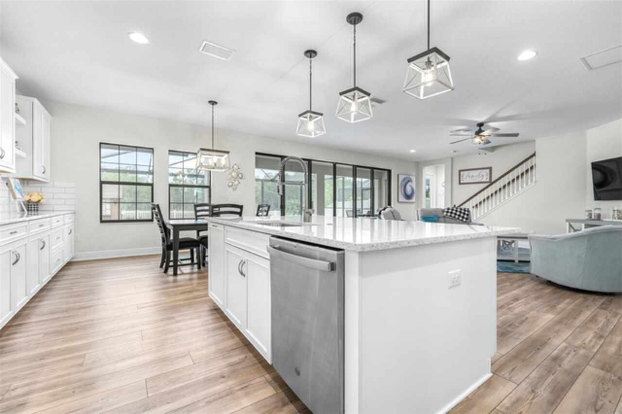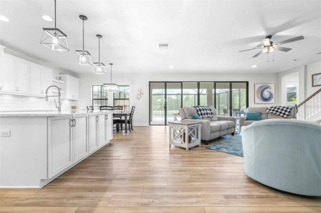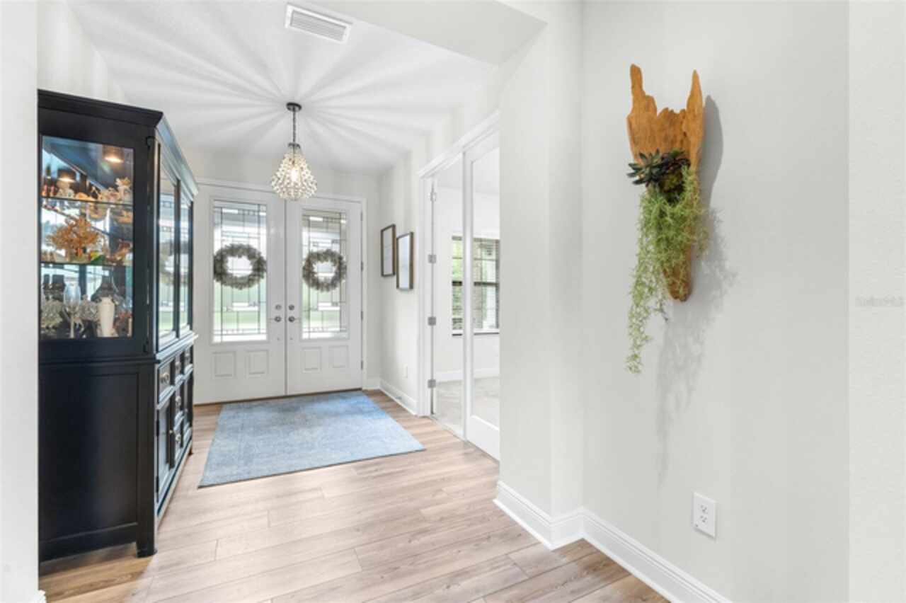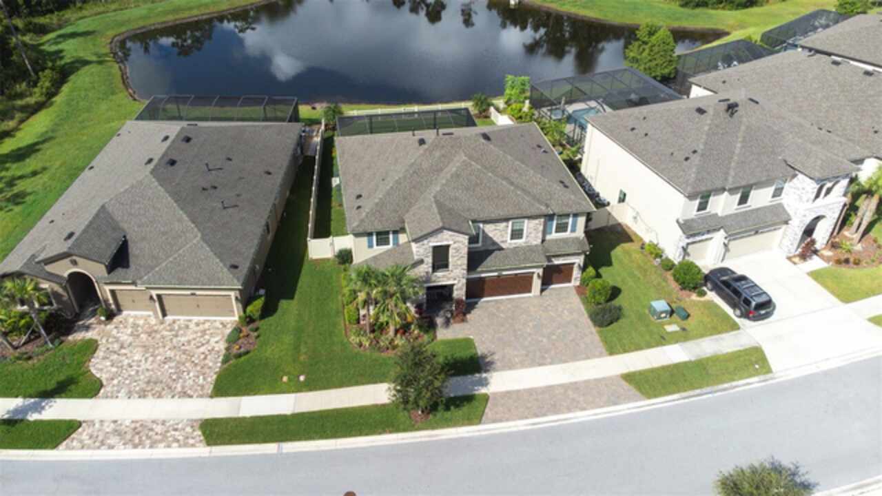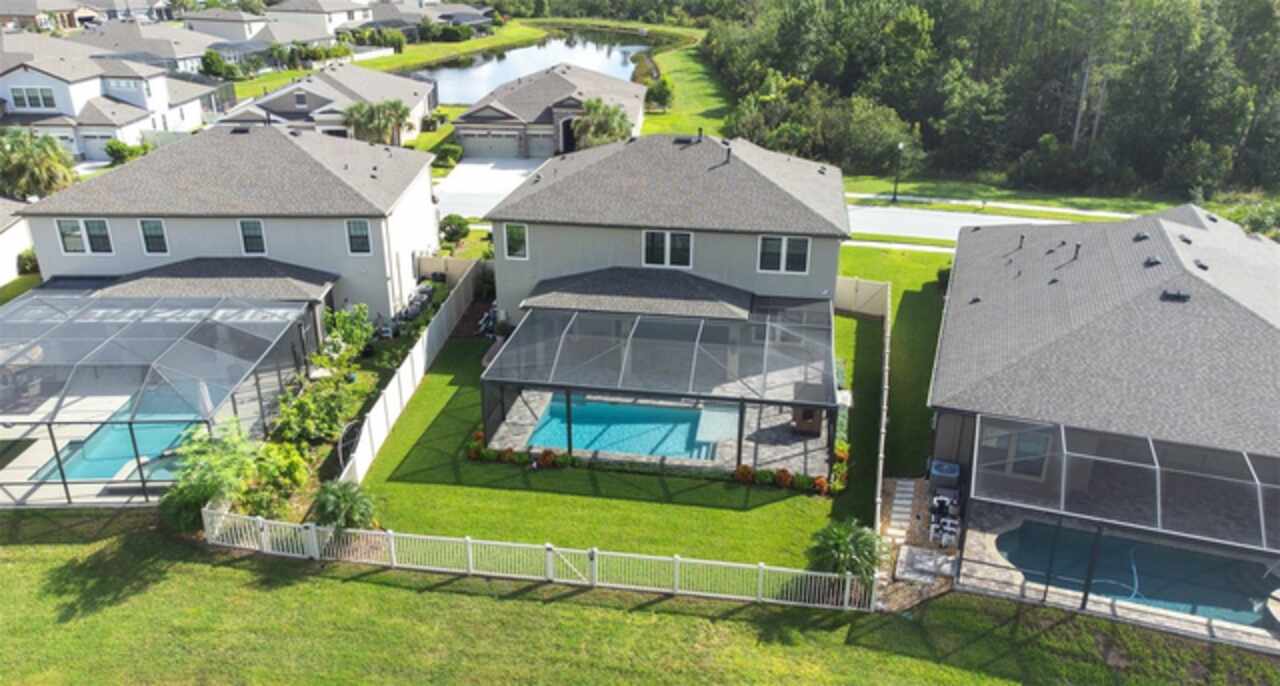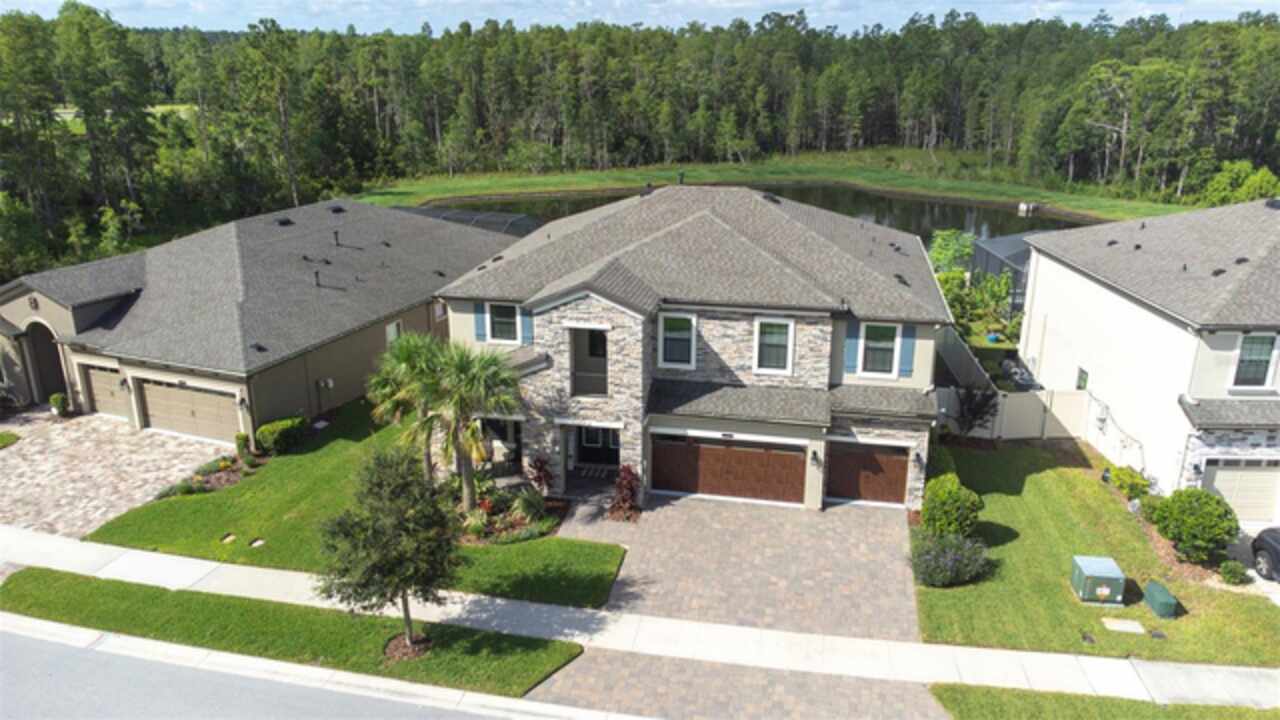 Experience luxury living in the heart of Connerton. Nestled on a serene pondside lot, the Virginia Park floor plan by Homes By WestBay offers the pinnacle of modern luxury. With breathtaking views and an expansive layout, this home boasts 5 bedrooms, 4 full bathrooms, an oversized upstairs loft, and high-end finishes throughout — all designed to impress. The charming Tuscan-inspired exterior, with elegant stone accents and warm earth tones, welcomes you home. Timeless architecture is paired with lush landscaping, enhancing both curb appeal and tranquility. A cozy covered front porch invites you to unwind and enjoy the peaceful beauty of the neighborhood. Upon entering, you’re greeted by glass-enhanced front doors that flood the entry with natural light. The space flows seamlessly into a versatile Flex Room, perfect for a formal dining area, home office, or playroom — the choice is yours. As you continue through the home, the gorgeous kitchen awaits. Designed for both style and functionality, it’s truly a culinary haven. High-end quartz countertops provide both luxury and durability, while a breakfast bar with pendant lighting and extended cabinets provide extra storage. Top-of-the-line GE Profile stainless steel appliances — including a gas cooktop, SS hood, built-in oven, and microwave make meal prep a breeze. The great room, the heart of the home, is perfect for entertaining or cozy family nights. The open flow to the kitchen and dining areas creates an ideal space for gatherings of all sizes. Step through extended glass sliding doors that bring the outdoors in, offering panoramic views of the pond and your private retreat. The inviting pool area, featuring a heated saltwater pool, is perfect for relaxing or entertaining in style. Additionally, pre-plumbing for an outdoor kitchen is already in place, allowing you to easily create your dream outdoor cooking space for al fresco dining. Completing the downstairs is a full bedroom and bathroom, ideal for guests or multi-generational living. With direct access to the pool area, it’s the perfect retreat after a day of outdoor relaxation. Upstairs, you’ll find three additional bedrooms plus the master suite, each featuring ample space and walk-in closets. The master bedroom, with its elegant double-door entrance, offers an elegant escape. The oversized bonus room serves as a versatile retreat, perfect for movie nights, a game room, or additional living space. A conveniently located laundry room on the second floor adds ease and practicality to everyday living, eliminating the need to carry laundry up and down the stairs. Whether you're hosting family and friends or savoring quiet moments by the water, this home provides everything you need for comfort, elegance, and relaxation. More than just a home, this is a lifestyle — one where luxury meets leisure. Come experience The Virginia Park and discover how this lakeside oasis can become the perfect backdrop for creating lasting memories with your family. Beyond the impressive walls of the home, the community enhances your lifestyle with resort-style amenities, including a pool & splash park, clubhouse, coffee shop, fitness center, basketball courts, tennis courts, volleyball, nature trails, and playgrounds — all designed for your enjoyment.