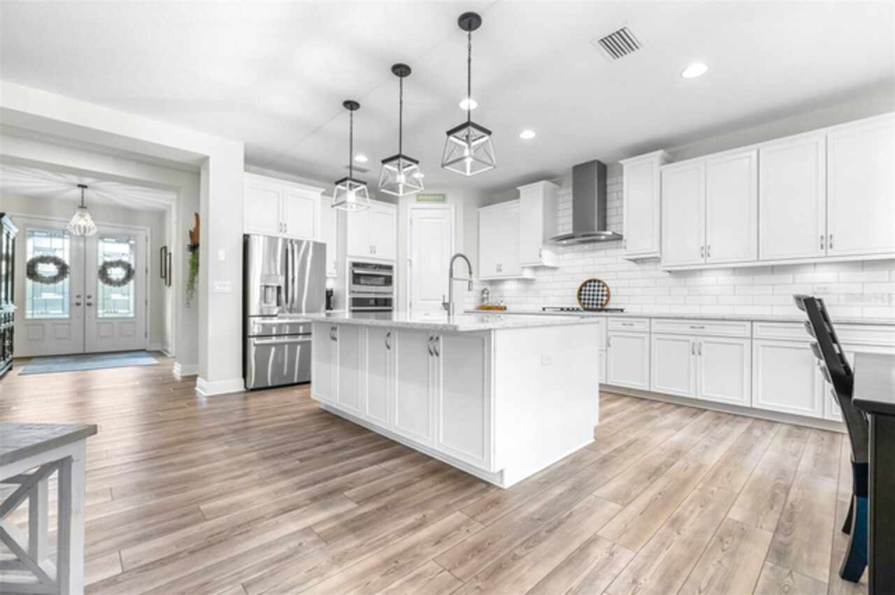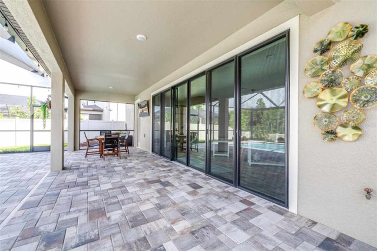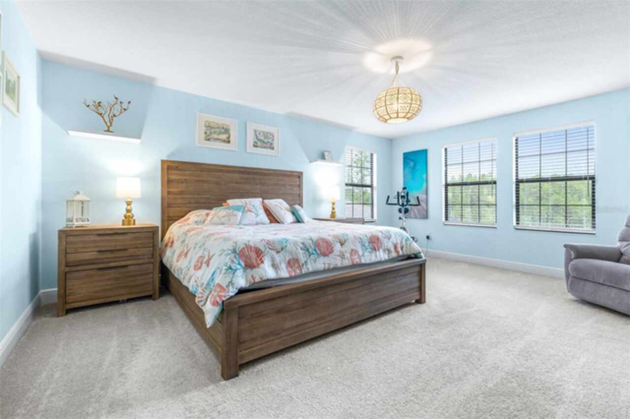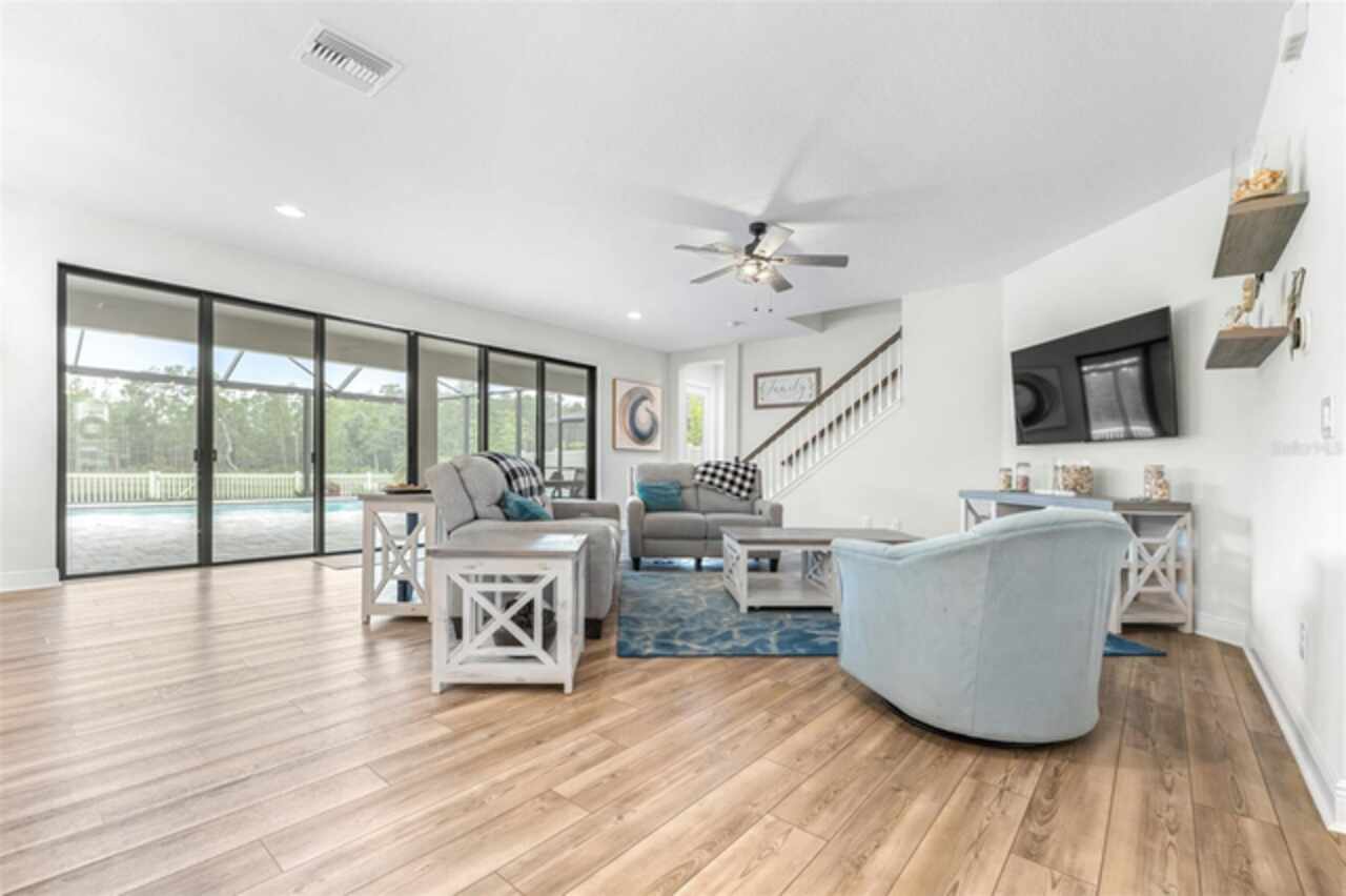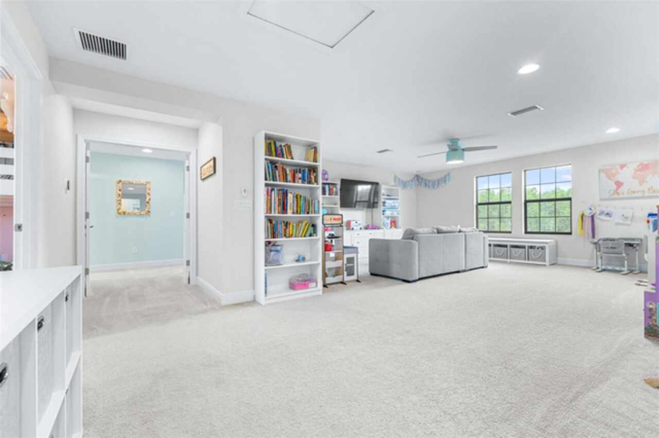 Experience luxury living in the heart of Connerton. Nestled on a serene pondside lot, the Virginia Park floor plan by Homes By WestBay offers the pinnacle of modern luxury. With breathtaking views and an expansive layout, this home boasts 5 bedrooms, 4 full bathrooms, an oversized upstairs loft, and high-end finishes throughout — all designed to impress. The charming Tuscan-inspired exterior, with elegant stone accents and warm earth tones, welcomes you home. Timeless architecture is paired with lush landscaping, enhancing both curb appeal and tranquility. A cozy covered front porch invites you to unwind and enjoy the peaceful beauty of the neighborhood. Upon entering, you’re greeted by glass-enhanced front doors that flood the entry with natural light. The space flows seamlessly into a versatile Flex Room, perfect for a formal dining area, home office, or playroom — the choice is yours. As you continue through the home, the gorgeous kitchen awaits. Designed for both style and functionality, it’s truly a culinary haven. High-end quartz countertops provide both luxury and durability, while a breakfast bar with pendant lighting and extended cabinets provide extra storage. Top-of-the-line GE Profile stainless steel appliances — including a gas cooktop, SS hood, built-in oven, and microwave make meal prep a breeze. The great room, the heart of the home, is perfect for entertaining or cozy family nights. The open flow to the kitchen and dining areas creates an ideal space for gatherings of all sizes. Step through extended glass sliding doors that bring the outdoors in, offering panoramic views of the pond and your private retreat. The inviting pool area, featuring a heated saltwater pool, is perfect for relaxing or entertaining in style. Additionally, pre-plumbing for an outdoor kitchen is already in place, allowing you to easily create your dream outdoor cooking space for al fresco dining. Completing the downstairs is a full bedroom and bathroom, ideal for guests or multi-generational living. With direct access to the pool area, it’s the perfect retreat after a day of outdoor relaxation. Upstairs, you’ll find three additional bedrooms plus the master suite, each featuring ample space and walk-in closets. The master bedroom, with its elegant double-door entrance, offers an elegant escape. The oversized bonus room serves as a versatile retreat, perfect for movie nights, a game room, or additional living space. A conveniently located laundry room on the second floor adds ease and practicality to everyday living, eliminating the need to carry laundry up and down the stairs. Whether you're hosting family and friends or savoring quiet moments by the water, this home provides everything you need for comfort, elegance, and relaxation. More than just a home, this is a lifestyle — one where luxury meets leisure. Come experience The Virginia Park and discover how this lakeside oasis can become the perfect backdrop for creating lasting memories with your family. Beyond the impressive walls of the home, the community enhances your lifestyle with resort-style amenities, including a pool & splash park, clubhouse, coffee shop, fitness center, basketball courts, tennis courts, volleyball, nature trails, and playgrounds — all designed for your enjoyment.