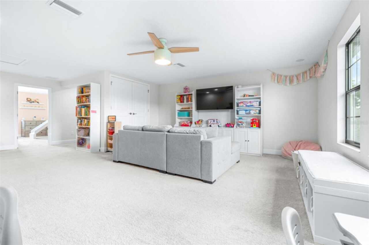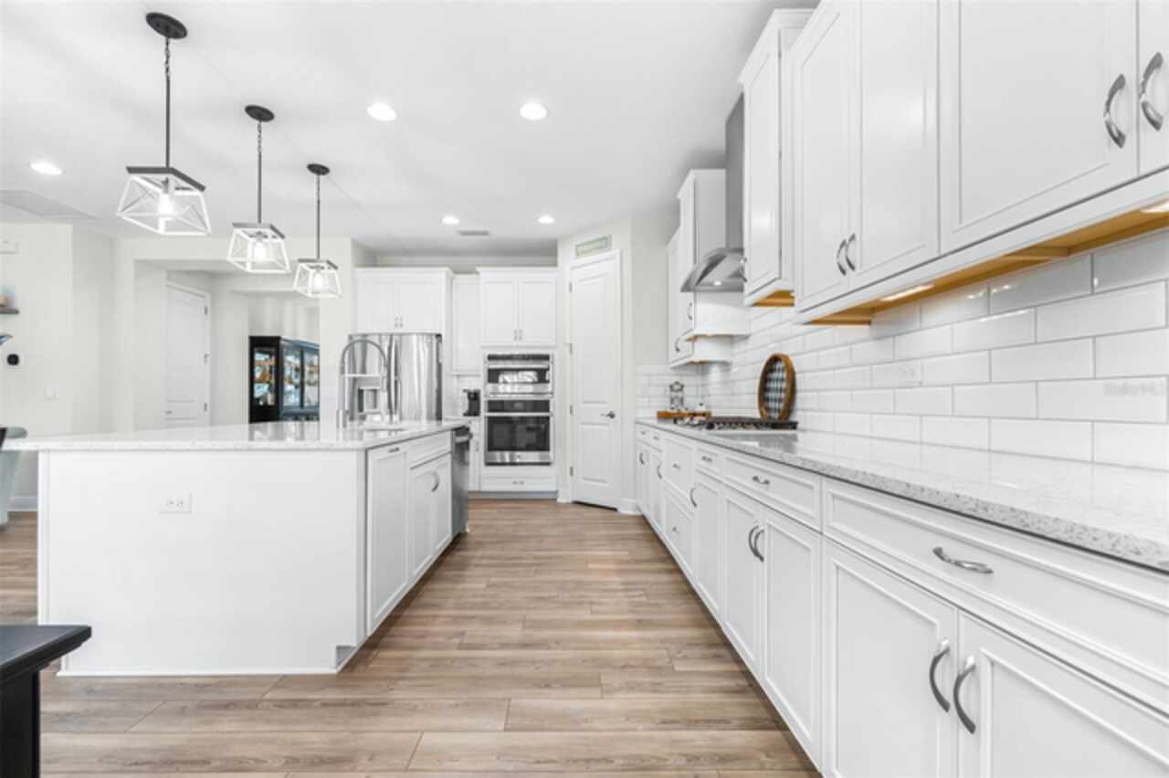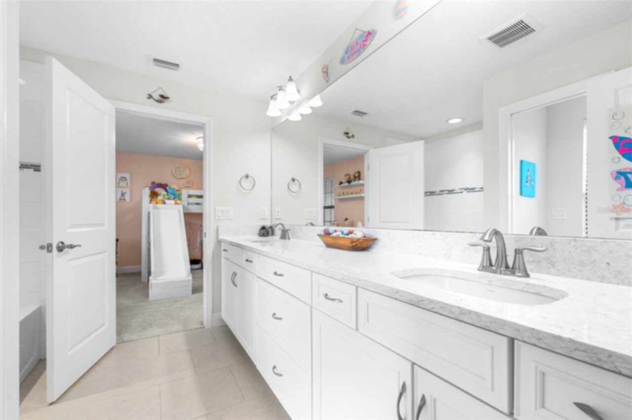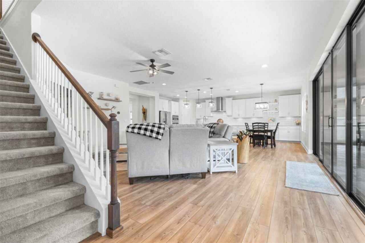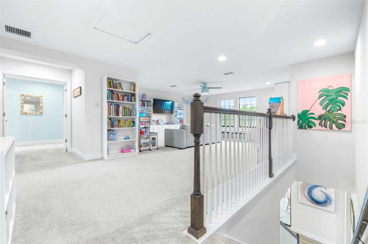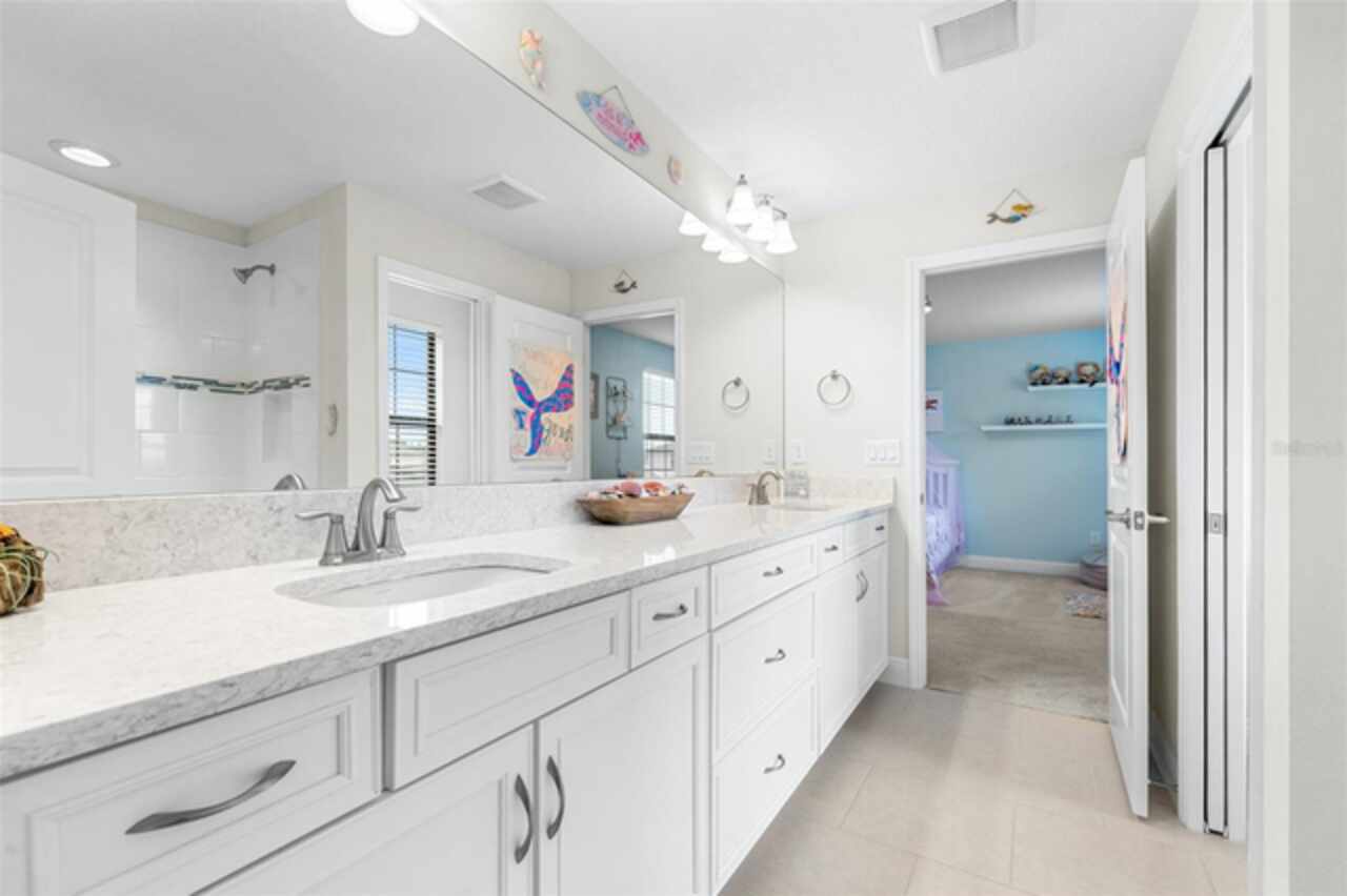 Experience luxury living in the heart of Connerton. Nestled on a serene pondside lot, the Virginia Park floor plan by Homes By WestBay offers the pinnacle of modern luxury. With breathtaking views and an expansive layout, this home boasts 5 bedrooms, 4 full bathrooms, an oversized upstairs loft, and high-end finishes throughout — all designed to impress. The charming Tuscan-inspired exterior, with elegant stone accents and warm earth tones, welcomes you home. Timeless architecture is paired with lush landscaping, enhancing both curb appeal and tranquility. A cozy covered front porch invites you to unwind and enjoy the peaceful beauty of the neighborhood. Upon entering, you’re greeted by glass-enhanced front doors that flood the entry with natural light. The space flows seamlessly into a versatile Flex Room, perfect for a formal dining area, home office, or playroom — the choice is yours. As you continue through the home, the gorgeous kitchen awaits. Designed for both style and functionality, it’s truly a culinary haven. High-end quartz countertops provide both luxury and durability, while a breakfast bar with pendant lighting and extended cabinets provide extra storage. Top-of-the-line GE Profile stainless steel appliances — including a gas cooktop, SS hood, built-in oven, and microwave make meal prep a breeze. The great room, the heart of the home, is perfect for entertaining or cozy family nights. The open flow to the kitchen and dining areas creates an ideal space for gatherings of all sizes. Step through extended glass sliding doors that bring the outdoors in, offering panoramic views of the pond and your private retreat. The inviting pool area, featuring a heated saltwater pool, is perfect for relaxing or entertaining in style. Additionally, pre-plumbing for an outdoor kitchen is already in place, allowing you to easily create your dream outdoor cooking space for al fresco dining. Completing the downstairs is a full bedroom and bathroom, ideal for guests or multi-generational living. With direct access to the pool area, it’s the perfect retreat after a day of outdoor relaxation. Upstairs, you’ll find three additional bedrooms plus the master suite, each featuring ample space and walk-in closets. The master bedroom, with its elegant double-door entrance, offers an elegant escape. The oversized bonus room serves as a versatile retreat, perfect for movie nights, a game room, or additional living space. A conveniently located laundry room on the second floor adds ease and practicality to everyday living, eliminating the need to carry laundry up and down the stairs. Whether you're hosting family and friends or savoring quiet moments by the water, this home provides everything you need for comfort, elegance, and relaxation. More than just a home, this is a lifestyle — one where luxury meets leisure. Come experience The Virginia Park and discover how this lakeside oasis can become the perfect backdrop for creating lasting memories with your family. Beyond the impressive walls of the home, the community enhances your lifestyle with resort-style amenities, including a pool & splash park, clubhouse, coffee shop, fitness center, basketball courts, tennis courts, volleyball, nature trails, and playgrounds — all designed for your enjoyment.