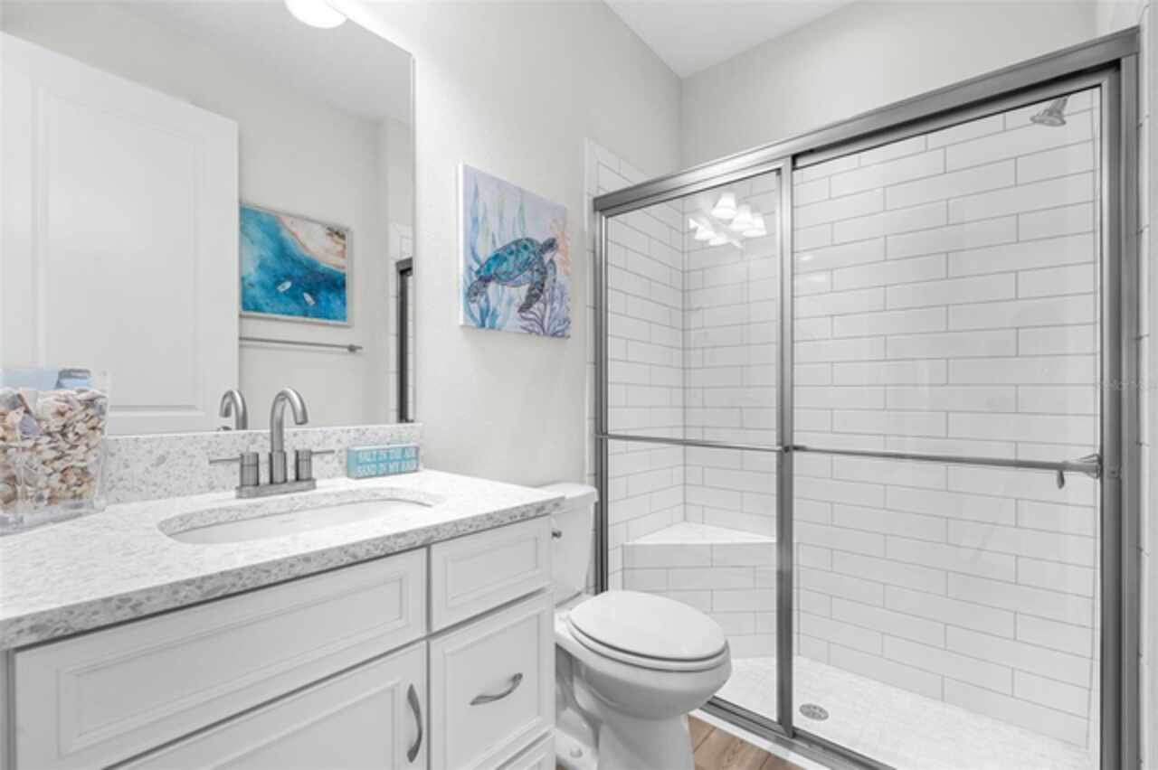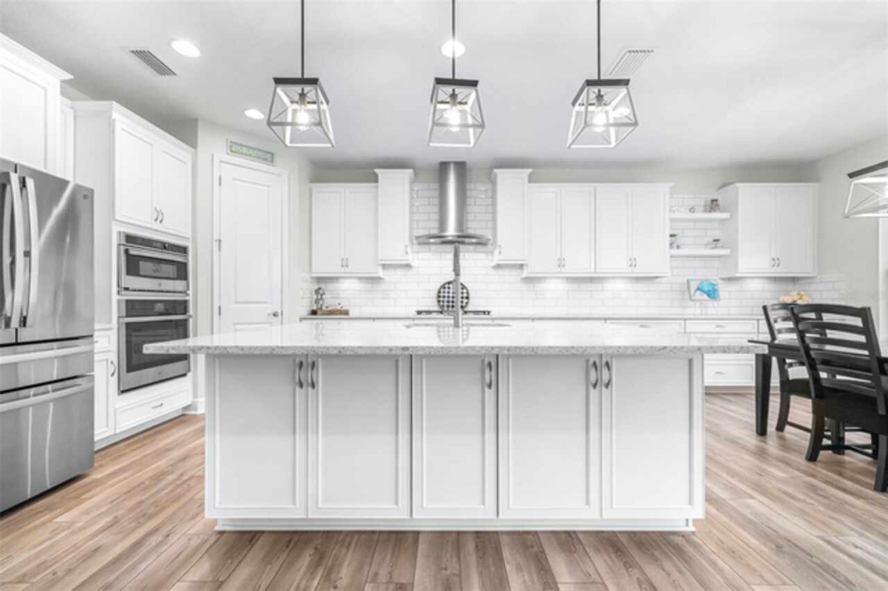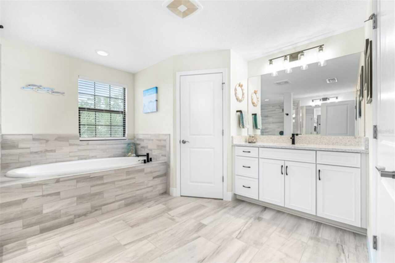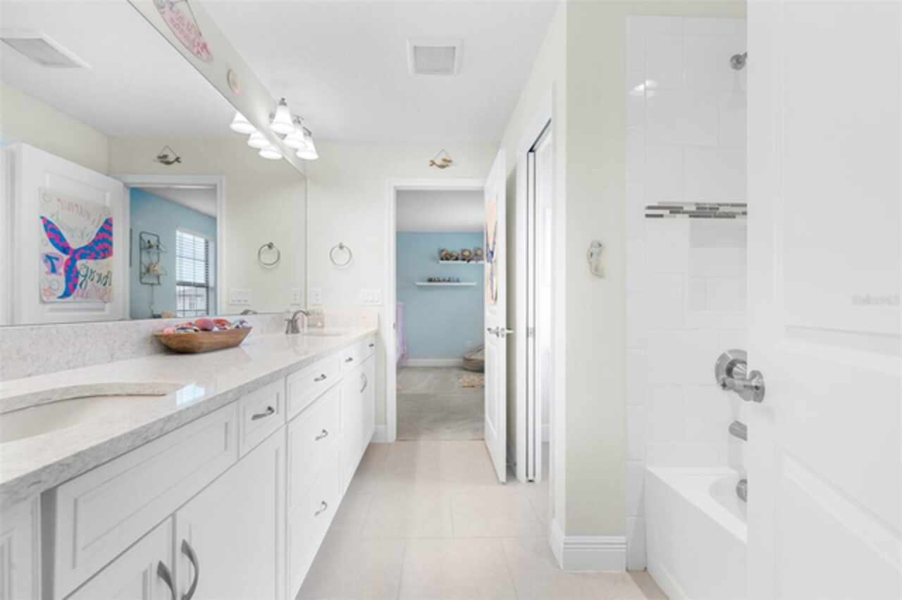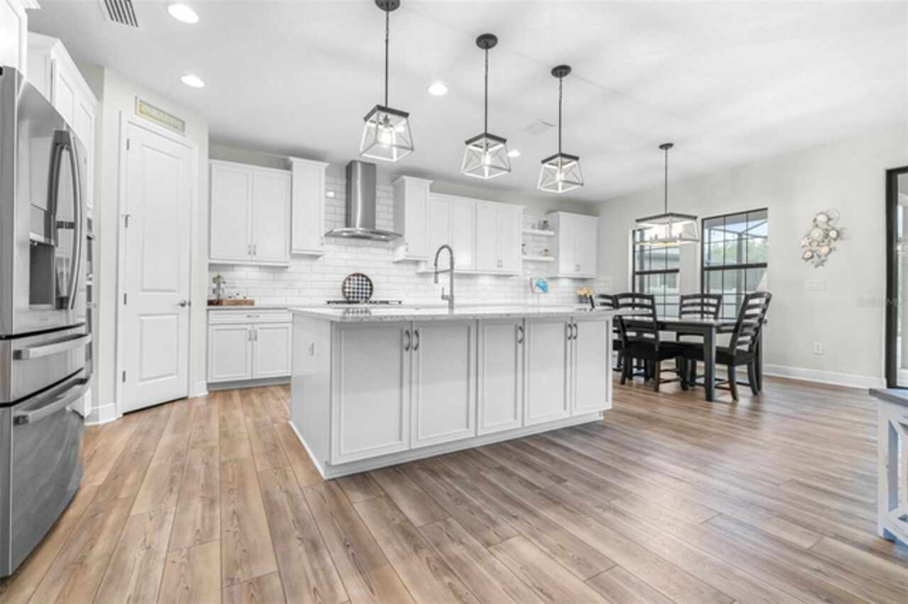 Experience luxury living in the heart of Connerton. Nestled on a serene pondside lot, the Virginia Park floor plan by Homes By WestBay offers the pinnacle of modern luxury. With breathtaking views and an expansive layout, this home boasts 5 bedrooms, 4 full bathrooms, an oversized upstairs loft, and high-end finishes throughout — all designed to impress. The charming Tuscan-inspired exterior, with elegant stone accents and warm earth tones, welcomes you home. Timeless architecture is paired with lush landscaping, enhancing both curb appeal and tranquility. A cozy covered front porch invites you to unwind and enjoy the peaceful beauty of the neighborhood. Upon entering, you’re greeted by glass-enhanced front doors that flood the entry with natural light. The space flows seamlessly into a versatile Flex Room, perfect for a formal dining area, home office, or playroom — the choice is yours. As you continue through the home, the gorgeous kitchen awaits. Designed for both style and functionality, it’s truly a culinary haven. High-end quartz countertops provide both luxury and durability, while a breakfast bar with pendant lighting and extended cabinets provide extra storage. Top-of-the-line GE Profile stainless steel appliances — including a gas cooktop, SS hood, built-in oven, and microwave make meal prep a breeze. The great room, the heart of the home, is perfect for entertaining or cozy family nights. The open flow to the kitchen and dining areas creates an ideal space for gatherings of all sizes. Step through extended glass sliding doors that bring the outdoors in, offering panoramic views of the pond and your private retreat. The inviting pool area, featuring a heated saltwater pool, is perfect for relaxing or entertaining in style. Additionally, pre-plumbing for an outdoor kitchen is already in place, allowing you to easily create your dream outdoor cooking space for al fresco dining. Completing the downstairs is a full bedroom and bathroom, ideal for guests or multi-generational living. With direct access to the pool area, it’s the perfect retreat after a day of outdoor relaxation. Upstairs, you’ll find three additional bedrooms plus the master suite, each featuring ample space and walk-in closets. The master bedroom, with its elegant double-door entrance, offers an elegant escape. The oversized bonus room serves as a versatile retreat, perfect for movie nights, a game room, or additional living space. A conveniently located laundry room on the second floor adds ease and practicality to everyday living, eliminating the need to carry laundry up and down the stairs. Whether you're hosting family and friends or savoring quiet moments by the water, this home provides everything you need for comfort, elegance, and relaxation. More than just a home, this is a lifestyle — one where luxury meets leisure. Come experience The Virginia Park and discover how this lakeside oasis can become the perfect backdrop for creating lasting memories with your family. Beyond the impressive walls of the home, the community enhances your lifestyle with resort-style amenities, including a pool & splash park, clubhouse, coffee shop, fitness center, basketball courts, tennis courts, volleyball, nature trails, and playgrounds — all designed for your enjoyment.