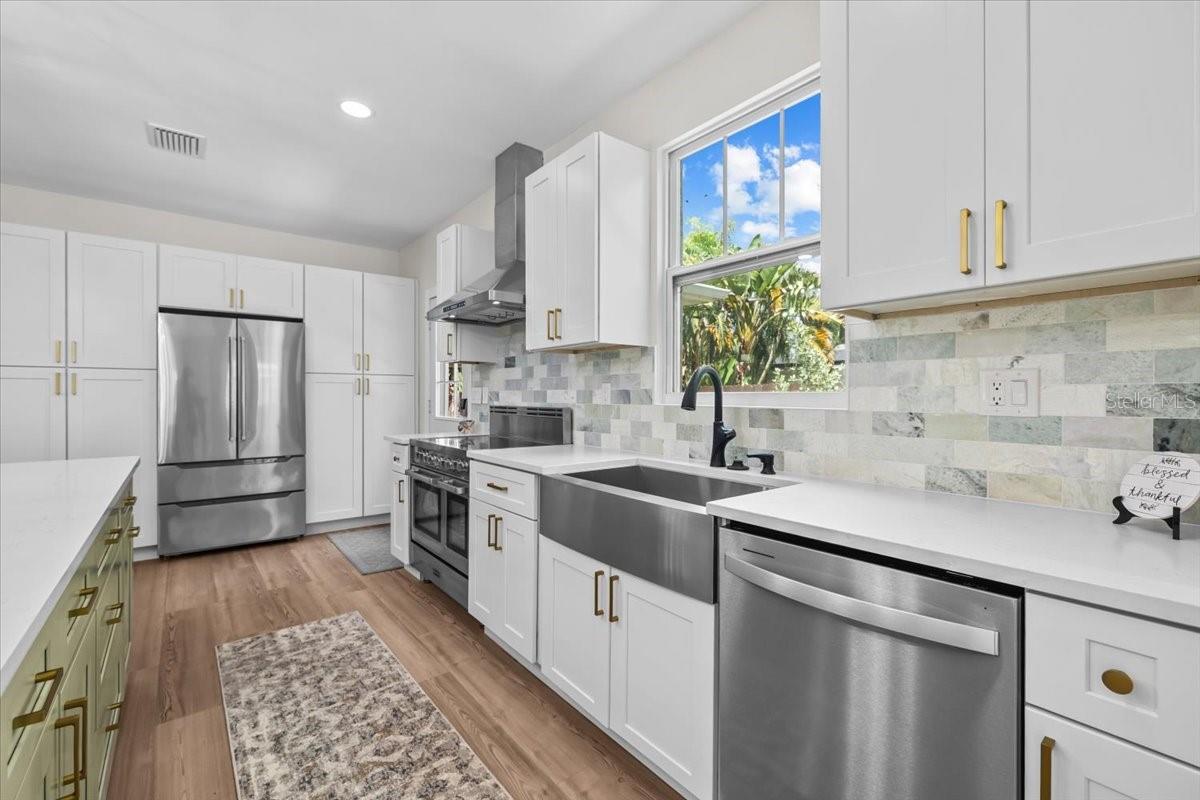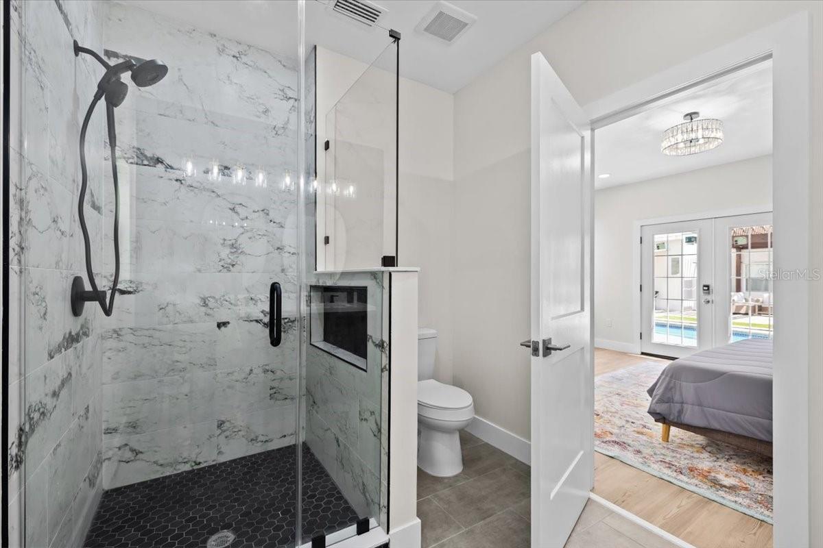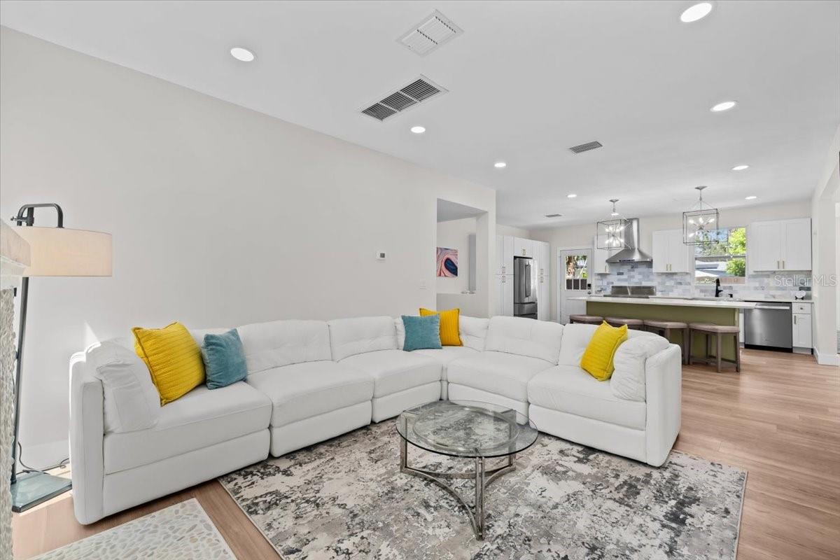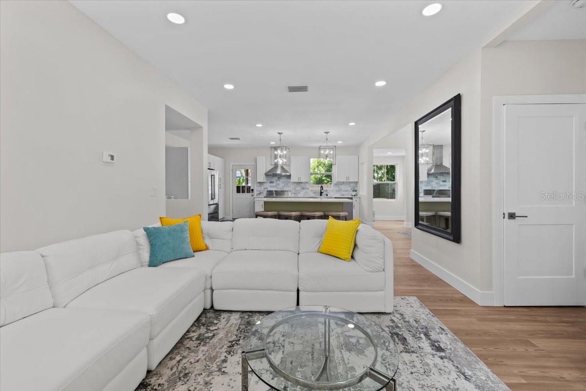 You Actually Can Have It All! Designer Renovation + Income- Producing Guest House in Sought-After Country Club Estates. Blocks from Clearwater Country Club, this estate blends modern luxury, historic charm, & income potential. The main home is a 3 bed, 2 bath Spanish/Mediterranean retreat, while the detached 1 bed, 1 bath ADU offers a stylish, private living space renting for approx. $2, 500/mo.- perfect for generating income, guests, or multigenerational setup. NO FLOOD INSURANCE required & is in a NON EVAC ZONE. From the street, tasteful curb appeal sets the tone, & inside the quality of a fully permitted renovation is undeniable. Engineer plans available upon request showcases meticulous care behind every detail. Major upgrades: reinforced stem walls/foundation, floor structure w/ joists/beams/footers, drywall, interior doors/trim/baseboards, updated sewer/plumbing, electrical panel/wiring, electric tankless water heater, & HVAC ductwork. HVAC system (approx. 2021) includes a fan motor & UV light (added 2025 for air sanitation/mold prevention). A 2022 roof w/ warranty & hurricane-rated windows/doors provide lasting peace of mind. Inside, the home exudes a modern coastal vibe, filled w/ natural light, neutral tones, & crisp lines for calm sophistication. A split floor plan offers privacy, while luxury waterproof vinyl floors flow throughout. Home is west facing, w/ main living areas on the east side overlooking the backyard, capturing serene morning light & warm evening glow. The heart of the home is the open living area... high ceilings enhance the bright, airy design. A beautiful stone fireplace adds warmth, while the layout makes entertaining effortless. The chef’s kitchen boasts soft-close cabinetry, elegant quartz countertops, oversized island w/ breakfast bar, stainless apron sink, 36" electric Verona range w/ dual ovens, a Verona French door refrigerator w/ dual freezer drawers, built-in side desk/bar, & striking pendant lighting. The spacious primary suite features French doors to the backyard, sparkling chandelier, & vast 5'x12' walk-in closet ready for custom organization. Its ensuite bath showcases stylish tile, dual vanity, modern lighting, & a walk-in shower. Two add'l bedrooms share an updated guest bath w/ tub/shower combo, fresh tile, & contemporary fixtures. Detached guest house is equally impressive w/ high ceilings, modern finishes, full kitchen, dining area, energy-efficient tile flooring, spacious bath w/ walk-in shower, & a large bedroom w/ French doors overlooking the backyard entertaining firepit. Designed for privacy/comfort, this ADU offers flexibility & strong income potential. An air-conditioned detached bonus room adds more versatility. Adorned w/ bold, artistic 100-yr-old Italian doors, it currently serves as a gym & could function as an office, art studio, or meditation retreat. The grounds are a private oasis w/ lush tropical landscaping, many lounge areas, a convenient half bath/storage room, & a heated/cooled saltwater pool for your enjoyment. Pavered patio & low-maintenance artificial turf keep upkeep minimal. Add'l upgrades: insulated subfloor w/ vapor barrier, foam wall insulation, pool heater/cooler (3-yr warranty), 2025 saltwater system power center, etc. Located near Pinellas Trail & Clearwater Beach, downtown Clearwater, Coachman Park, Dunedin, shopping, & restaurants, the home offers unmatched quality, thoughtful design, & the rare ability to live, relax, and earn- all in one remarkable home!