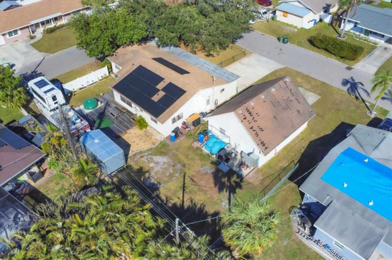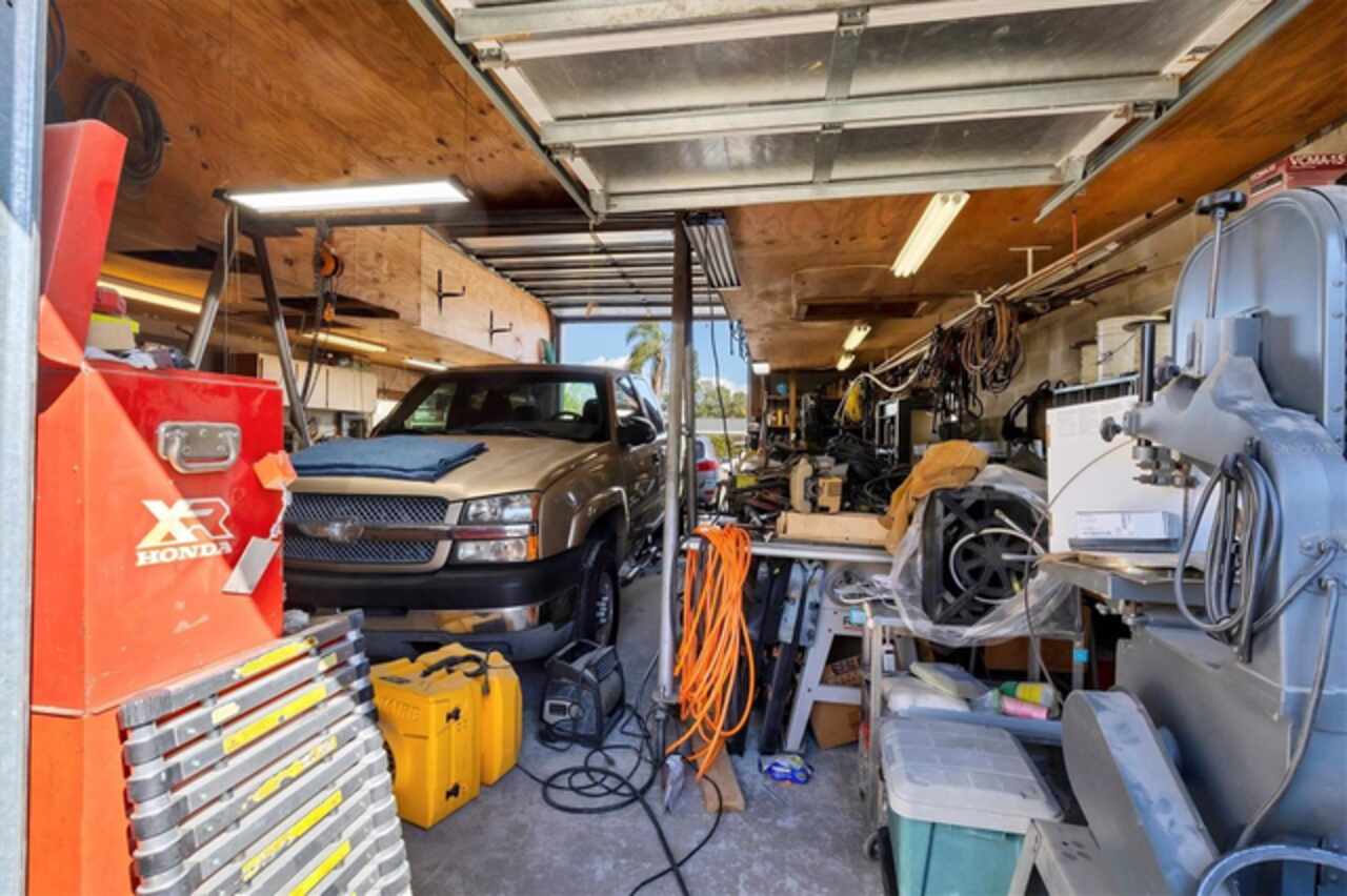 PRICE DECREASE! BACK ON MARKET, BUYER FINANCING FELL THROUGH Are you searching for a home with RV STORAGE and HOOK UP, a WORKSHOP, or an IN-LAW APARTMENT opportunity? Welcome to this inviting, corner lot, meticulously maintained 3-bedroom, 2-bathroom home, located in the highly desirable Farrows neighborhood of Bradenton, FL. Situated on a double lot, this property offers ample space for your boat, trailer, RV, or other recreational vehicles. The FENCED-IN front yard provides an ideal area for pets. Additionally, the property features a SEPARATE OVER SIZED DETACHED 806 SQUARE FOOT, 26’ x 31’ TWO-CAR GARAGE/WORKSHOP, which can also accommodate a LARGE RV with its extra high ceilings. The garage is equipped with RV hook up, water, its own electrical panel, drainage, and central air conditioning. CONVERT INTO AN IN-LAW APARTMENT or RENTAL APARTMENT! Upon entering the home, you will notice the abundant natural light and the spacious open-concept kitchen and family room combination. The kitchen boasts ample cabinetry, plenty of counter space for cooking and entertaining, and features NEWER APPLIANCES, a roof installed in 2016, a NEW TANKLESS HOT WATER HEATER, HARDWOOD, and TILE FLOORING. The master bedroom and the two additional bedrooms are situated on opposite sides of the house, providing an ideal floor plan for family, guests, or a home office. This home is equipped with a two-year-old SOLAR SYSTEM, including a 10KW BATTERY BACKUP, not only ensuring peace of mind but a substancial savings on your electric usage - ELECTRIC BILL APPROXIMATELY $30/MONTH. Relax and enjoy your morning coffee or evening cocktail on the cozy screened in front porch. This home is perfectly situated just minutes from the stunning beaches of Anna Maria Island, downtown Bradenton, Lecom Park, top-rated schools, and fantastic dining options. This property is a must-see! Schedule your private tour today!