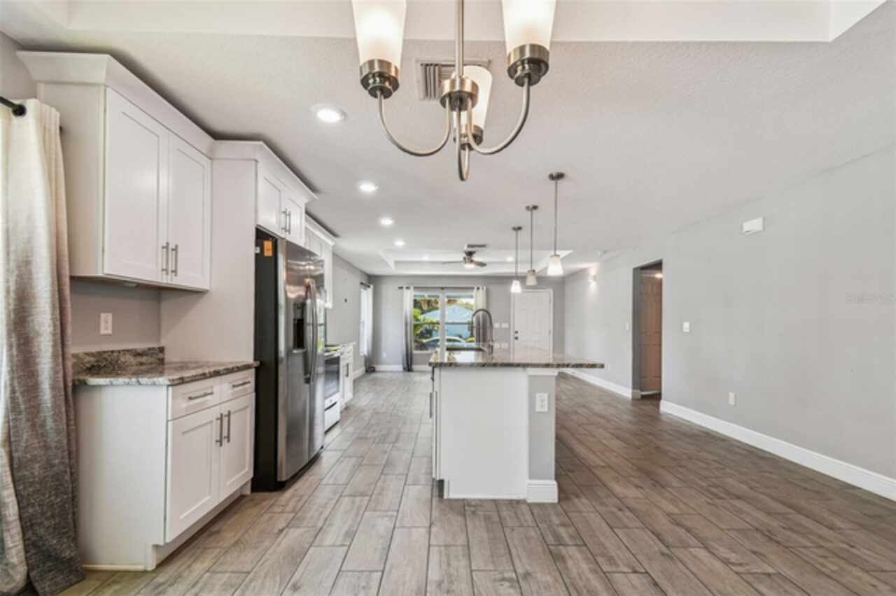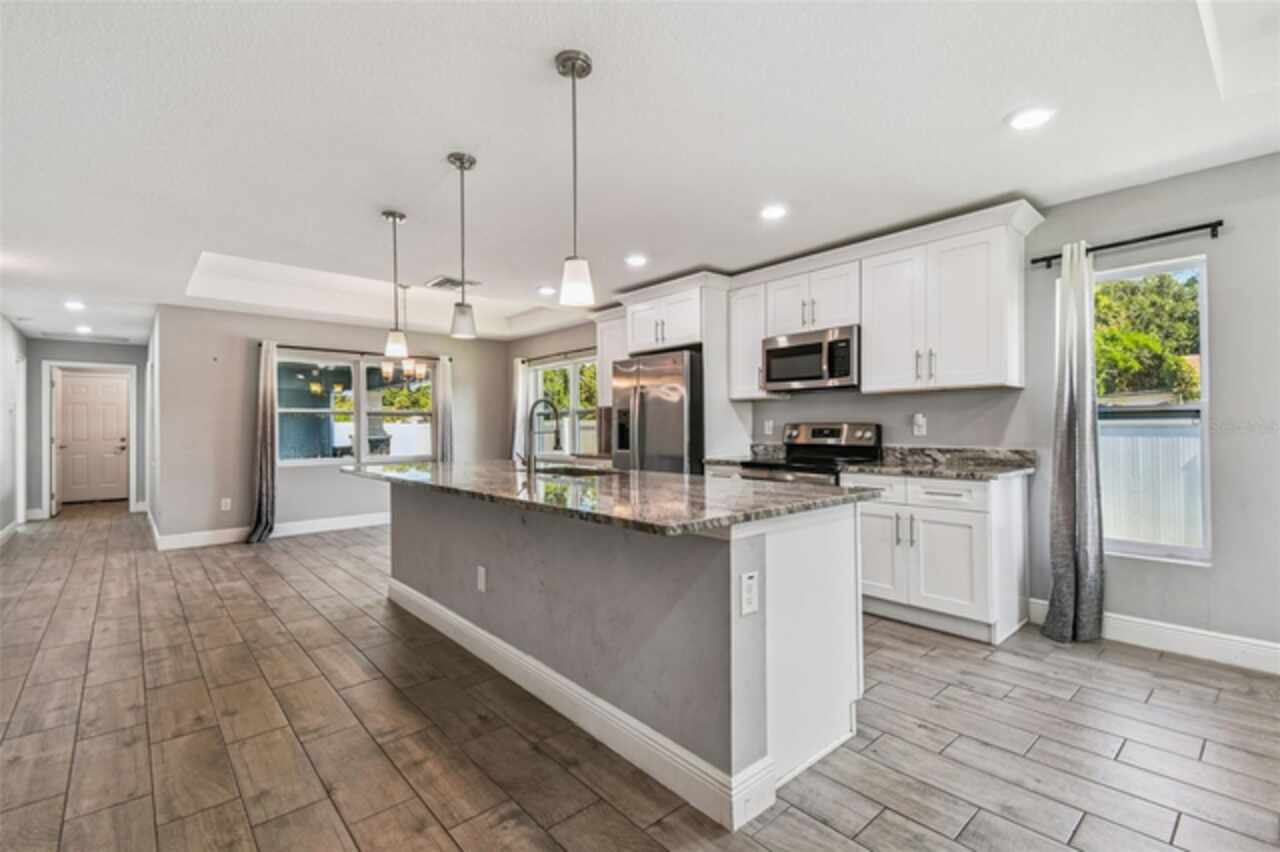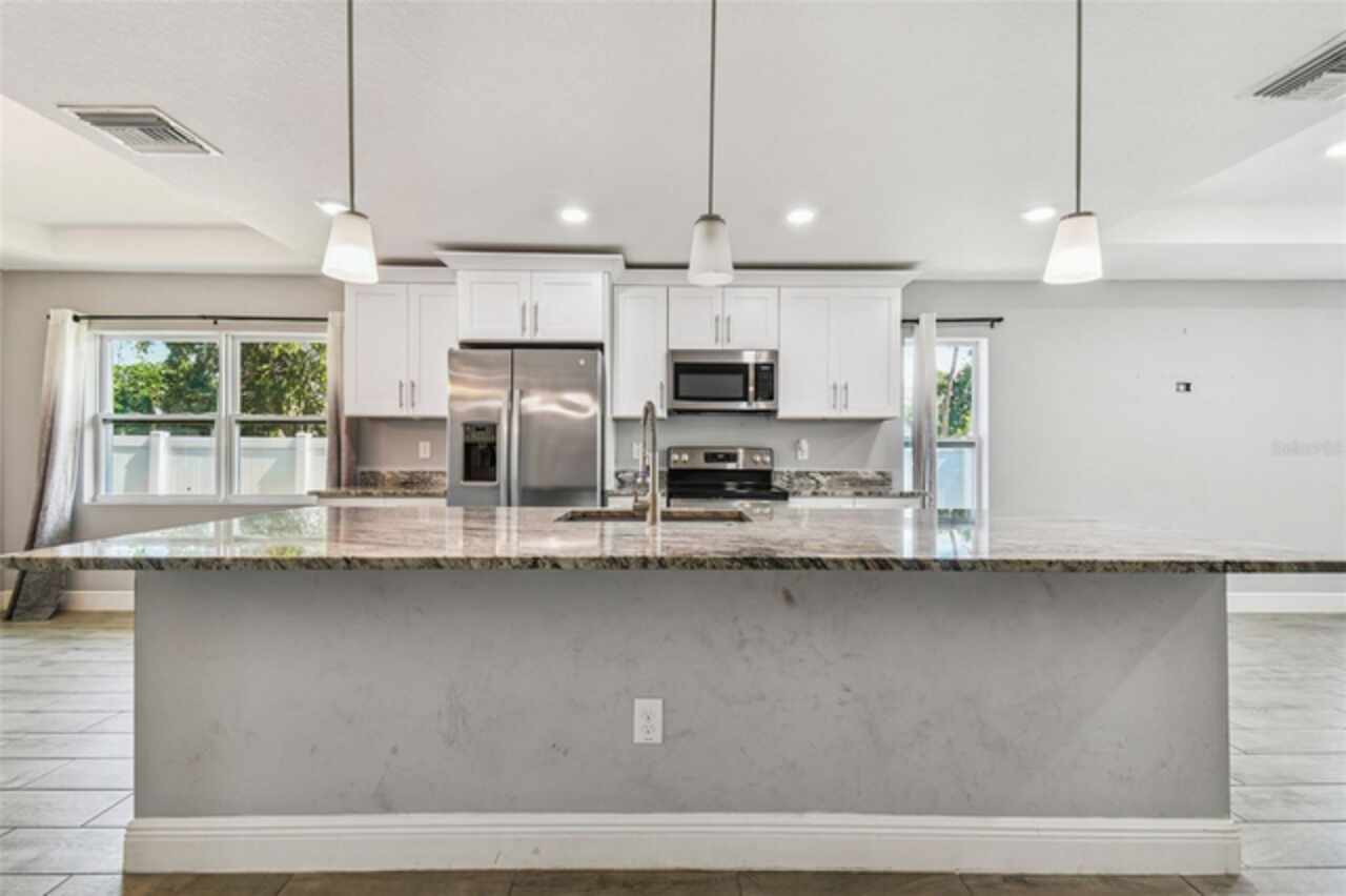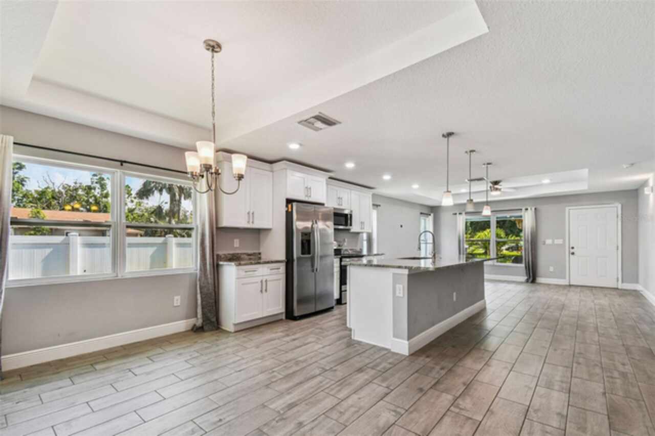 One or more photo(s) has been virtually staged. Major Price reduction!! Welcome to this stunning newer block-construction home built in 2022 and featuring three bedrooms, two bathrooms and a spacious oversized one car garage. Designed for modern living, this home offers a functional open-concept floor plan highlighted by exquisite finishes and thoughtful details throughout. The heart of the home is a sleek, modern kitchen showcasing stylish granite countertops, shaker-style cabinetry, and high-end stainless steel appliances. Porcelain wood-like plank tile flows seamlessly flows throughout the entire home, while the bathrooms boast elegant, polished fixtures and tile finishes. The luxurious primary suite features his & hers walk-in closets and beautiful private bathroom with a dual-sink vanity and an oversized walk-in shower with a contemporary glass door. Step outside and enjoy two lanais overlooking a fenced backyard—perfect for outdoor entertaining, relaxing or enjoying Florida's beautiful weather. The home is conveniently located just minutes from vibrant downtown St. Petersburg and the white sand and blue water of the Gulf Beaches. This stunning home offers the perfect blend of space, style, and functionality. Don’t miss your chance to see this amazing home—schedule your tour today!