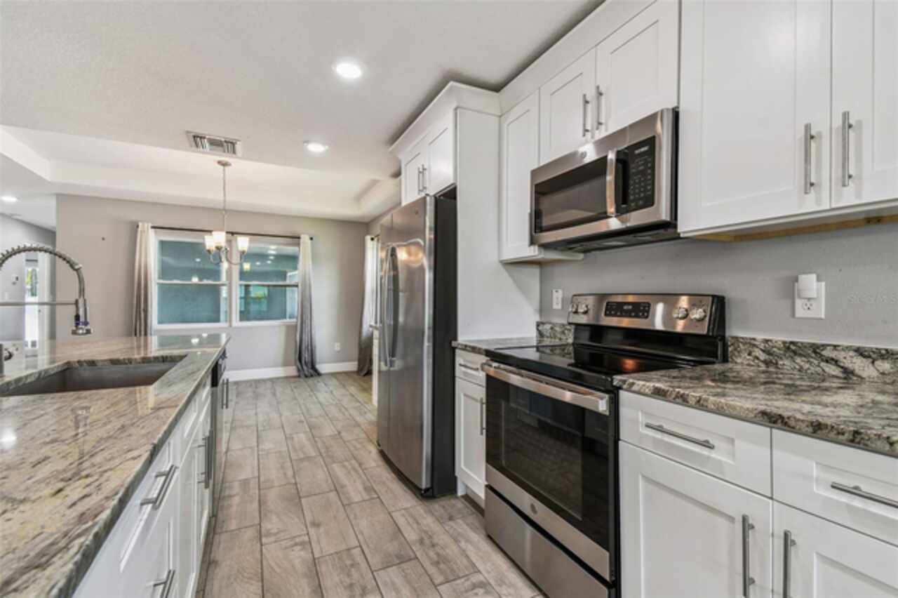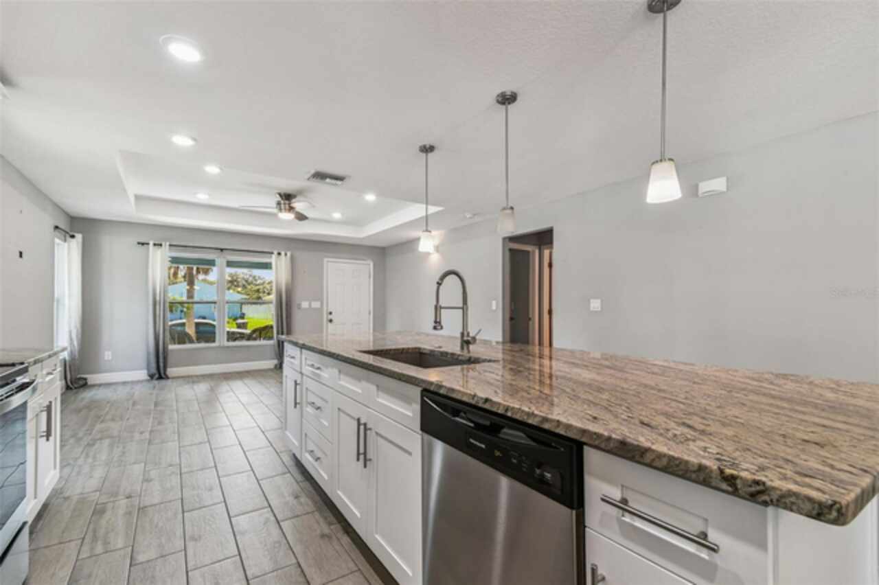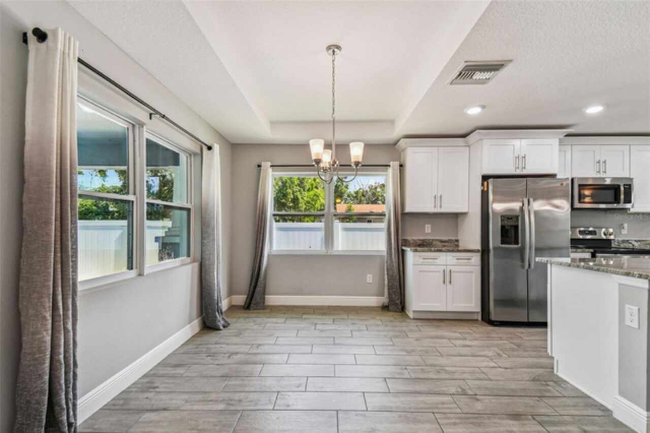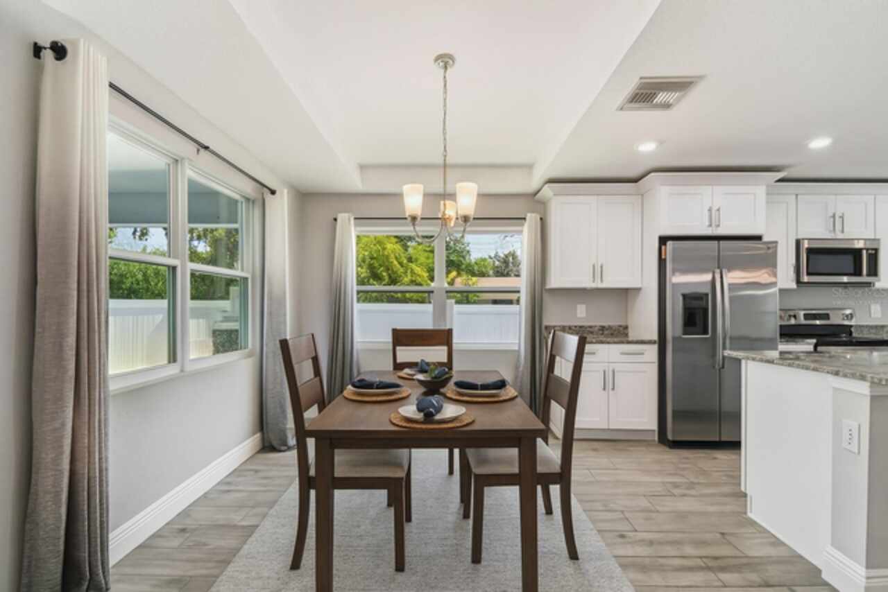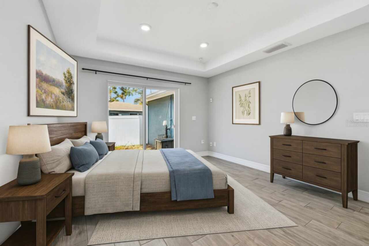 One or more photo(s) has been virtually staged. Major Price reduction!! Welcome to this stunning newer block-construction home built in 2022 and featuring three bedrooms, two bathrooms and a spacious oversized one car garage. Designed for modern living, this home offers a functional open-concept floor plan highlighted by exquisite finishes and thoughtful details throughout. The heart of the home is a sleek, modern kitchen showcasing stylish granite countertops, shaker-style cabinetry, and high-end stainless steel appliances. Porcelain wood-like plank tile flows seamlessly flows throughout the entire home, while the bathrooms boast elegant, polished fixtures and tile finishes. The luxurious primary suite features his & hers walk-in closets and beautiful private bathroom with a dual-sink vanity and an oversized walk-in shower with a contemporary glass door. Step outside and enjoy two lanais overlooking a fenced backyard—perfect for outdoor entertaining, relaxing or enjoying Florida's beautiful weather. The home is conveniently located just minutes from vibrant downtown St. Petersburg and the white sand and blue water of the Gulf Beaches. This stunning home offers the perfect blend of space, style, and functionality. Don’t miss your chance to see this amazing home—schedule your tour today!