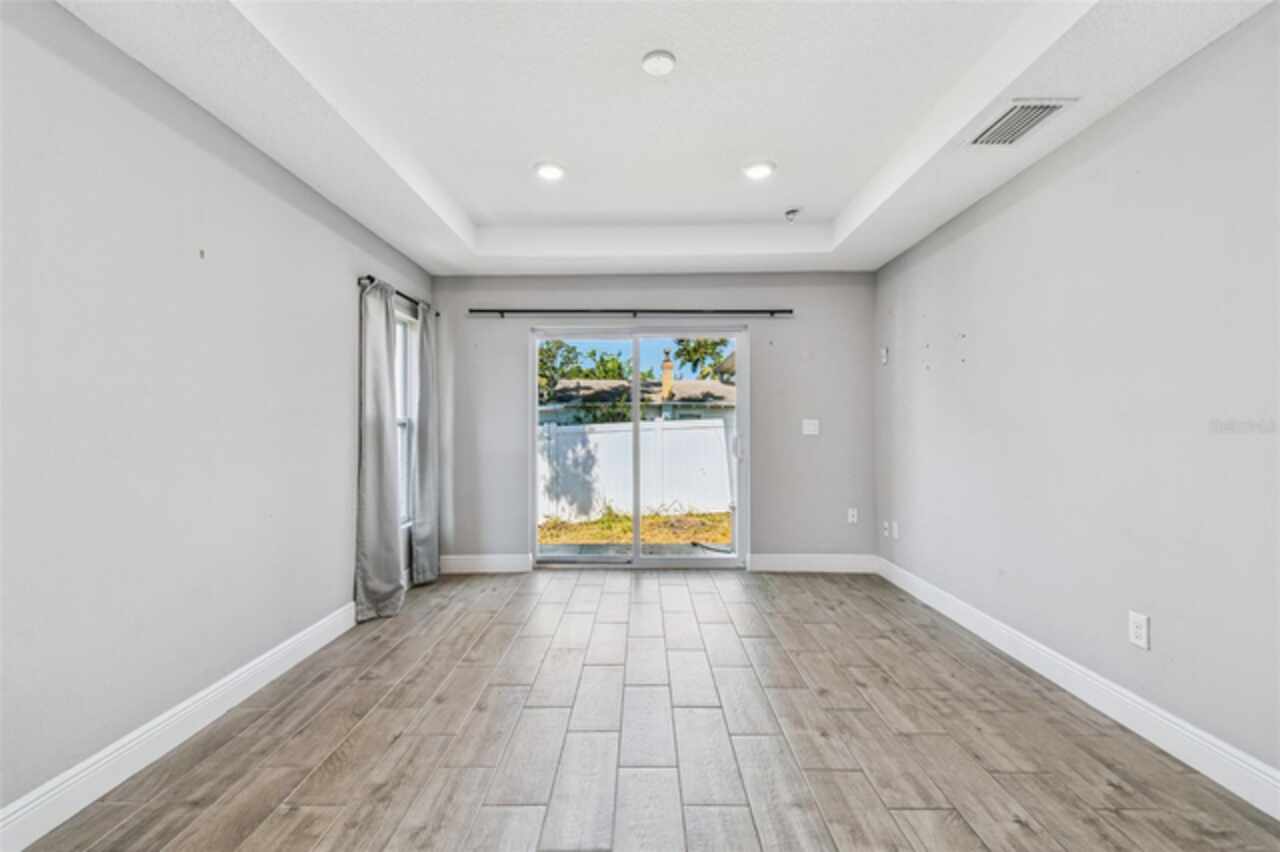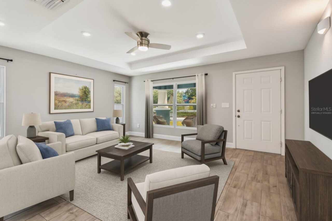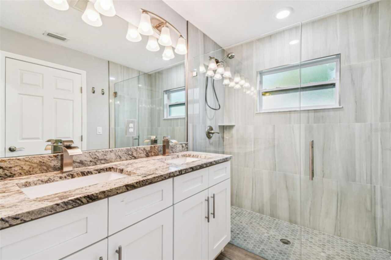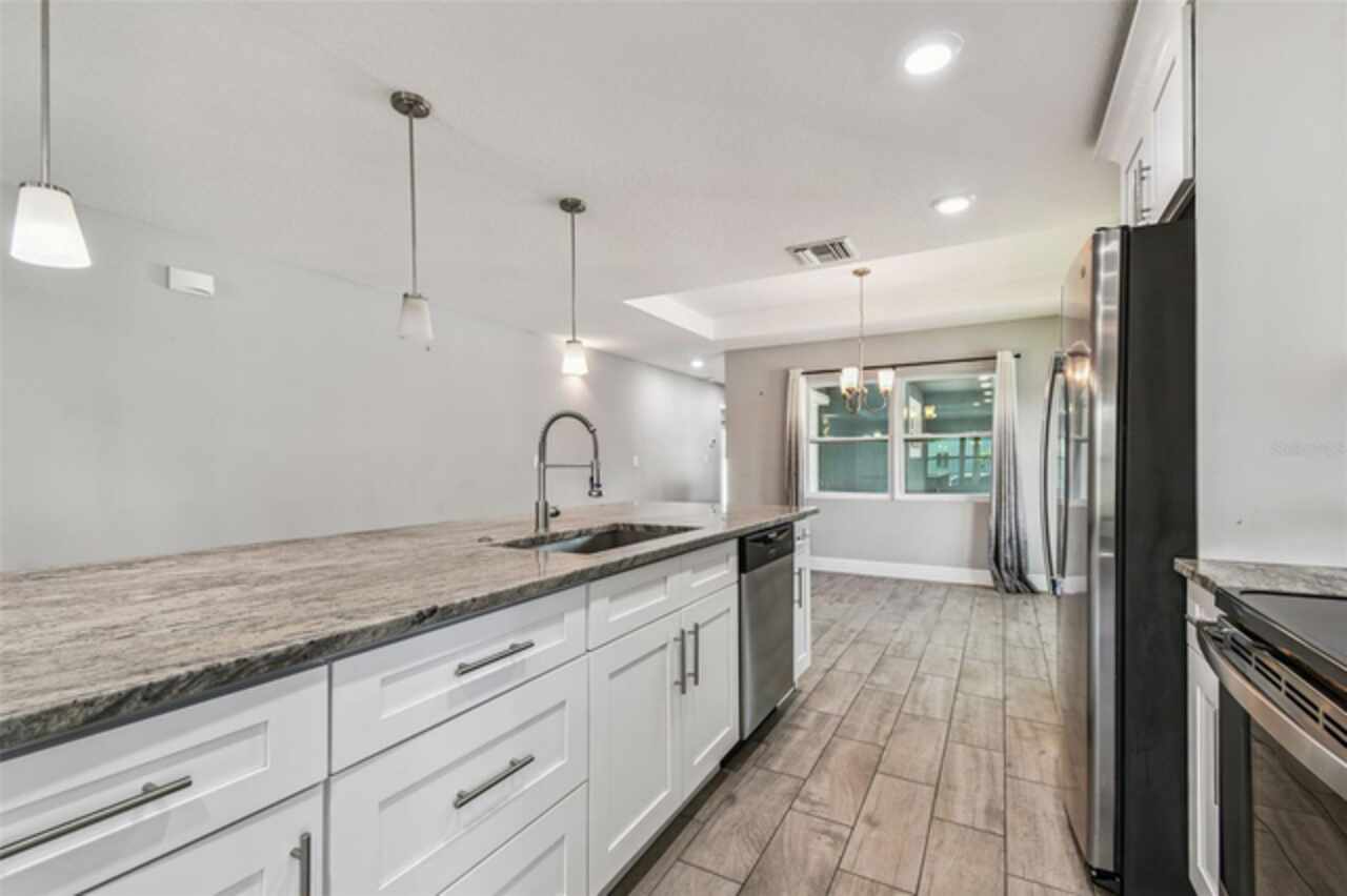 One or more photo(s) has been virtually staged. Major Price reduction!! Welcome to this stunning newer block-construction home built in 2022 and featuring three bedrooms, two bathrooms and a spacious oversized one car garage. Designed for modern living, this home offers a functional open-concept floor plan highlighted by exquisite finishes and thoughtful details throughout. The heart of the home is a sleek, modern kitchen showcasing stylish granite countertops, shaker-style cabinetry, and high-end stainless steel appliances. Porcelain wood-like plank tile flows seamlessly flows throughout the entire home, while the bathrooms boast elegant, polished fixtures and tile finishes. The luxurious primary suite features his & hers walk-in closets and beautiful private bathroom with a dual-sink vanity and an oversized walk-in shower with a contemporary glass door. Step outside and enjoy two lanais overlooking a fenced backyard—perfect for outdoor entertaining, relaxing or enjoying Florida's beautiful weather. The home is conveniently located just minutes from vibrant downtown St. Petersburg and the white sand and blue water of the Gulf Beaches. This stunning home offers the perfect blend of space, style, and functionality. Don’t miss your chance to see this amazing home—schedule your tour today!