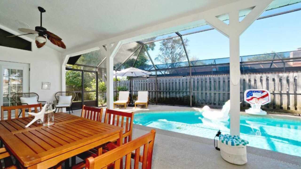 Welcome to the highly sought after Palma Sola Bay. This Turn Key Furnished updated spacious Pool home has three bedrooms and three baths. There is also large room that can be used as a 4th bedroom or living room. No HOA makes this home perfect for short term rentals. Some great features are the updated kitchen and bathrooms, fenced in yard for privacy, large screened in lanai to sunbathe and only a few minutes to the beaches of Anna Maria Island. New roof to be put on before closing.