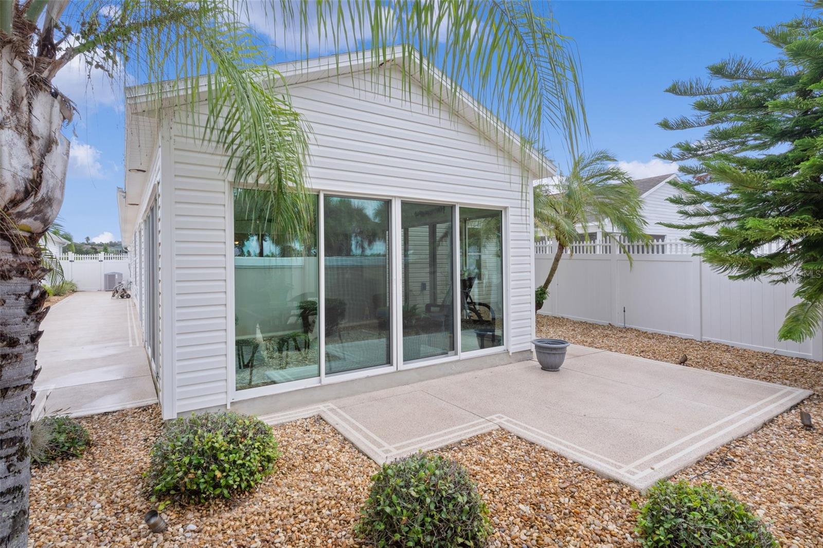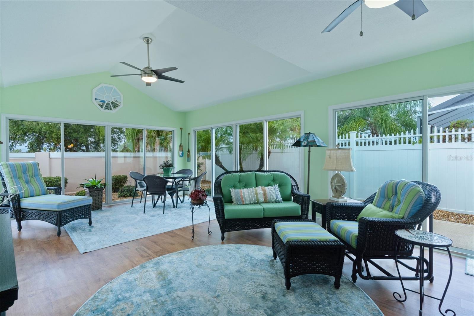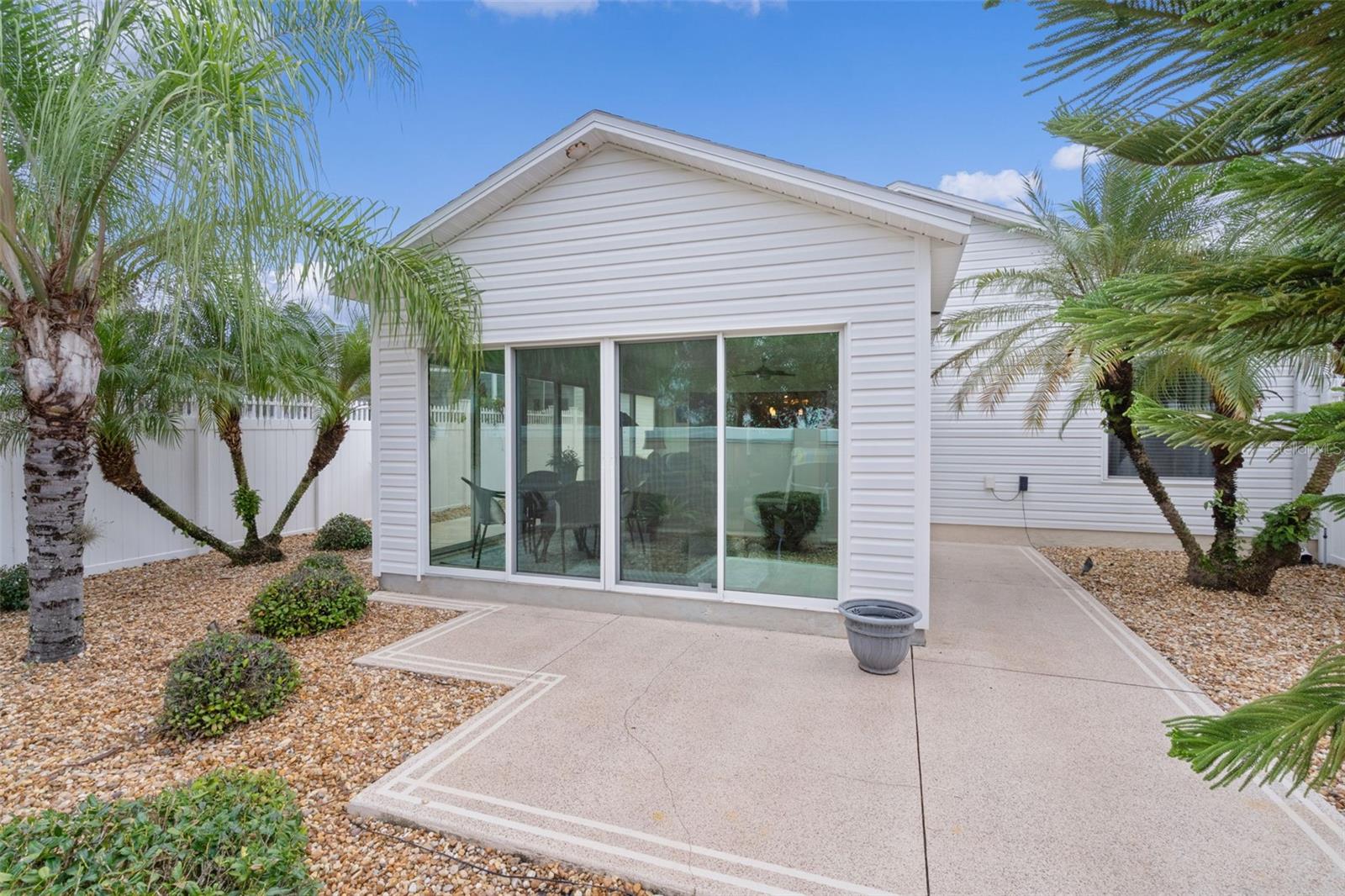 PRIVACY, BEAUTY, GORGEOUS SUNSETS & EASY LIVING in this Upgraded BONITA Courtyard Villa barely begin to describe this exceptional 3-bedroom, 2-bath home with a large 345 sq. ft. GLASS-ENCLOSED LANAI! Located with no homes behind and a PEEK-A-BOO VIEW of the Kenya Championship Golf Course, this villa offers a serene and private setting you’ll fall in love with. All the UPGRADES are already done—simply move right in and start enjoying: >>QUARTZ countertops (kitchen & baths) >>LAMINATE & TILE flooring (no carpet!) >>STAINLESS STEEL appliances >>CROWN moulding highlighting VAULTED knockdown ceilings. Step inside and your eyes will be drawn to the stunning GLASS-ENCLOSED LANAI featuring FULL-LENGTH Dual-paned windows—perfect for year-round enjoyment. The wrap-around patio offers lush tropical landscaping, complete privacy, and no grass to mow for truly easy living! The kitchen is a chef’s delight with ample counter space, Maple cabinets with Pull-out shelves, a large breakfast bar, and pendant plus over-cabinet accent lighting. The open-concept living and dining areas provide flexible furniture arrangements and flow effortlessly through French doors to the lanai. There’s also a convenient slider off the dining area for easy grilling access. The primary suite boasts a walk-in closet and en-suite bath with an updated rectangular sink, and a step-in shower. Guests will enjoy their own private suite with a full tub/shower combo, while the third bedroom is perfect for an office, craft room, or additional guest space. Additional features include: >>Inside laundry room with washer, dryer, utility tub & extra cabinetry >>NEW ROOF (2024) >>Water Heater (2018) >>Epoxy-coated garage floor, insulated garage door & keyless entry >>Pull-out shelves in baths, motion & timed exterior lighting, and more! Tax line reflects property taxes only. CDD Line reflects the combination of annual maintenance, fire district, and bond assessment. Bond Balance: $6, 874.64. Don’t miss the video tour to truly appreciate all this home has to offer. So… what are you waiting for? If not now—when?