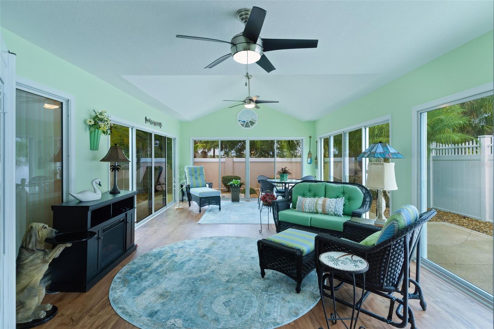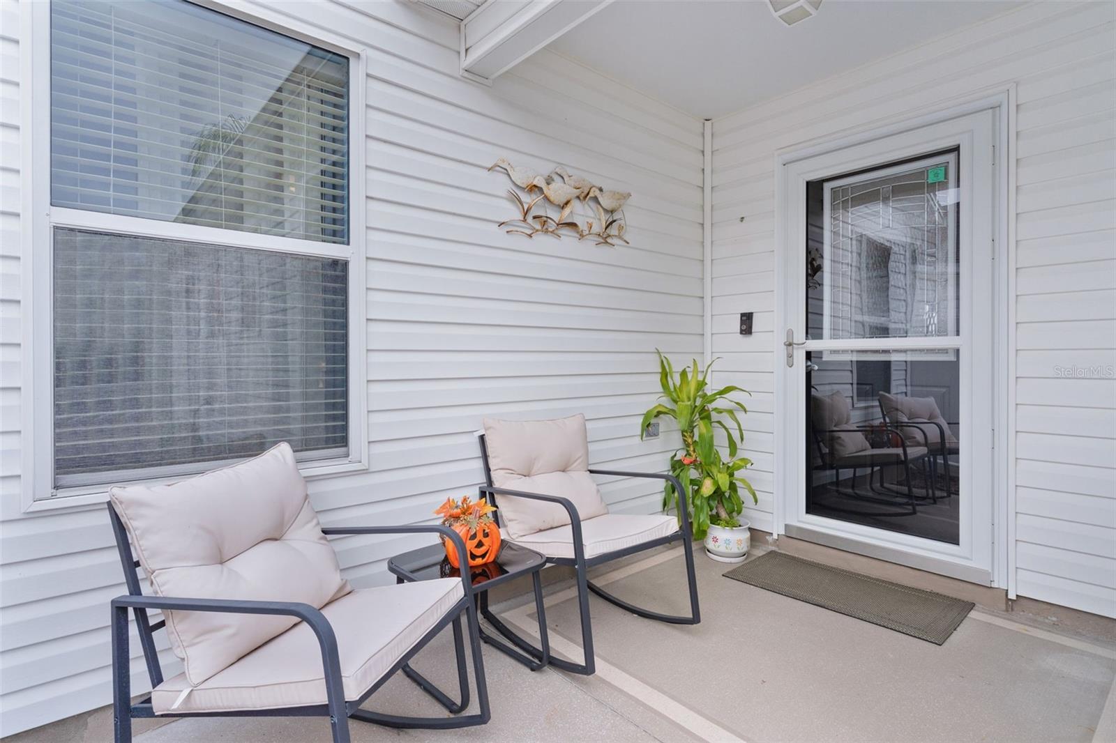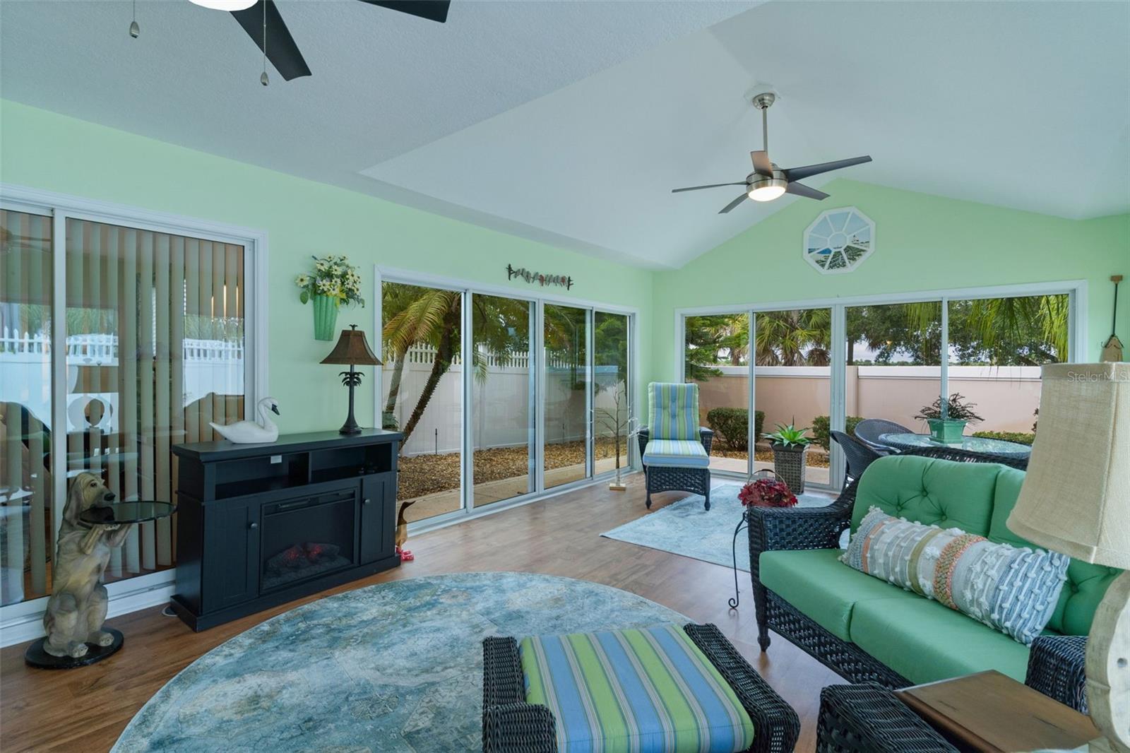PRIVACY, BEAUTY, GORGEOUS SUNSETS & EASY LIVING in this Upgraded BONITA Courtyard Villa barely begin to describe this exceptional 3-bedroom, 2-bath home with a large 345 sq. ft. GLASS-ENCLOSED LANAI! Located with no homes behind and a PEEK-A-BOO VIEW of the Kenya Championship Golf Course, this villa offers a serene and private setting you’ll fall in love with. All the UPGRADES are already done—simply move right in and start enjoying: >>QUARTZ countertops (kitchen & baths) >>LAMINATE & TILE flooring (no carpet!) >>STAINLESS STEEL appliances >>CROWN moulding highlighting VAULTED knockdown ceilings. Step inside and your eyes will be drawn to the stunning GLASS-ENCLOSED LANAI featuring FULL-LENGTH Dual-paned windows—perfect for year-round enjoyment. The wrap-around patio offers lush tropical landscaping, complete privacy, and no grass to mow for truly easy living! The kitchen is a chef’s delight with ample counter space, Maple cabinets with Pull-out shelves, a large breakfast bar, and pendant plus over-cabinet accent lighting. The open-concept living and dining areas provide flexible furniture arrangements and flow effortlessly through French doors to the lanai. There’s also a convenient slider off the dining area for easy grilling access. The primary suite boasts a walk-in closet and en-suite bath with an updated rectangular sink, and a step-in shower. Guests will enjoy their own private suite with a full tub/shower combo, while the third bedroom is perfect for an office, craft room, or additional guest space. Additional features include: >>Inside laundry room with washer, dryer, utility tub & extra cabinetry >>NEW ROOF (2024) >>Water Heater (2018) >>Epoxy-coated garage floor, insulated garage door & keyless entry >>Pull-out shelves in baths, motion & timed exterior lighting, and more! Tax line reflects property taxes only. CDD Line reflects the combination of annual maintenance, fire district, and bond assessment. Bond Balance: $6, 874.64. Don’t miss the video tour to truly appreciate all this home has to offer. So… what are you waiting for? If not now—when?