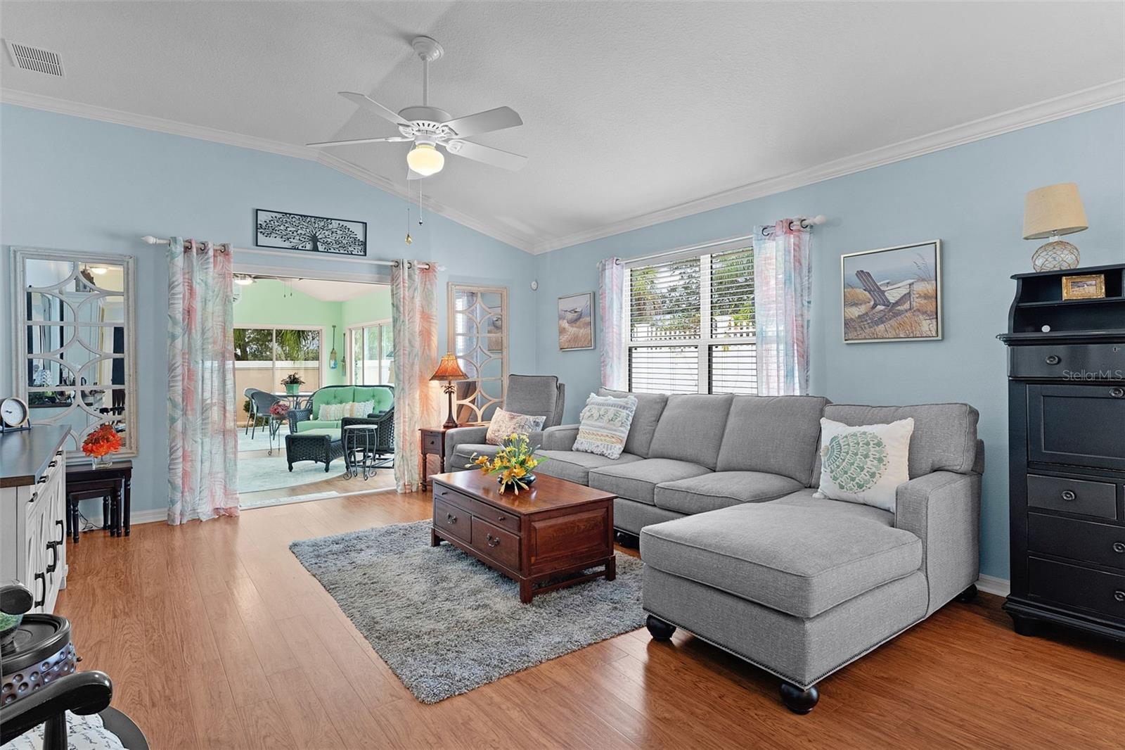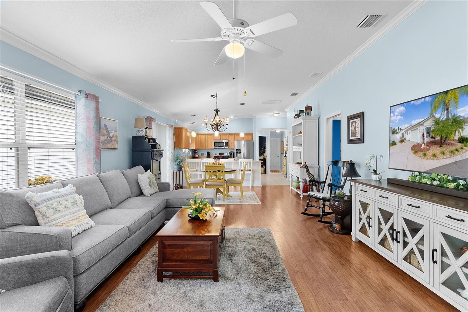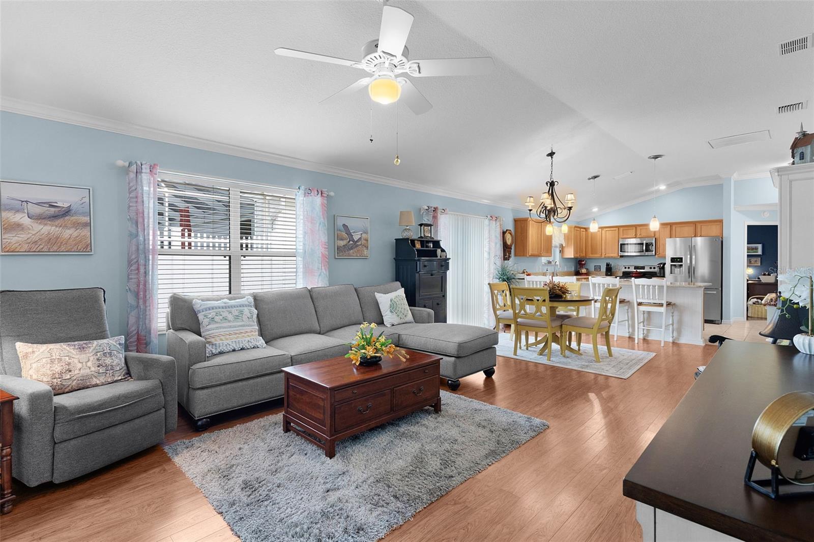 Ceiling Fans(s), Crown Molding, Living Room/Dining Room Combo, Open Floorplan, Stone Counters, Vaulted Ceiling(s), Walk-In Closet(s), Window Treatments
