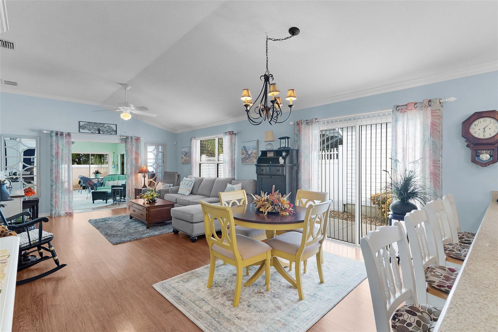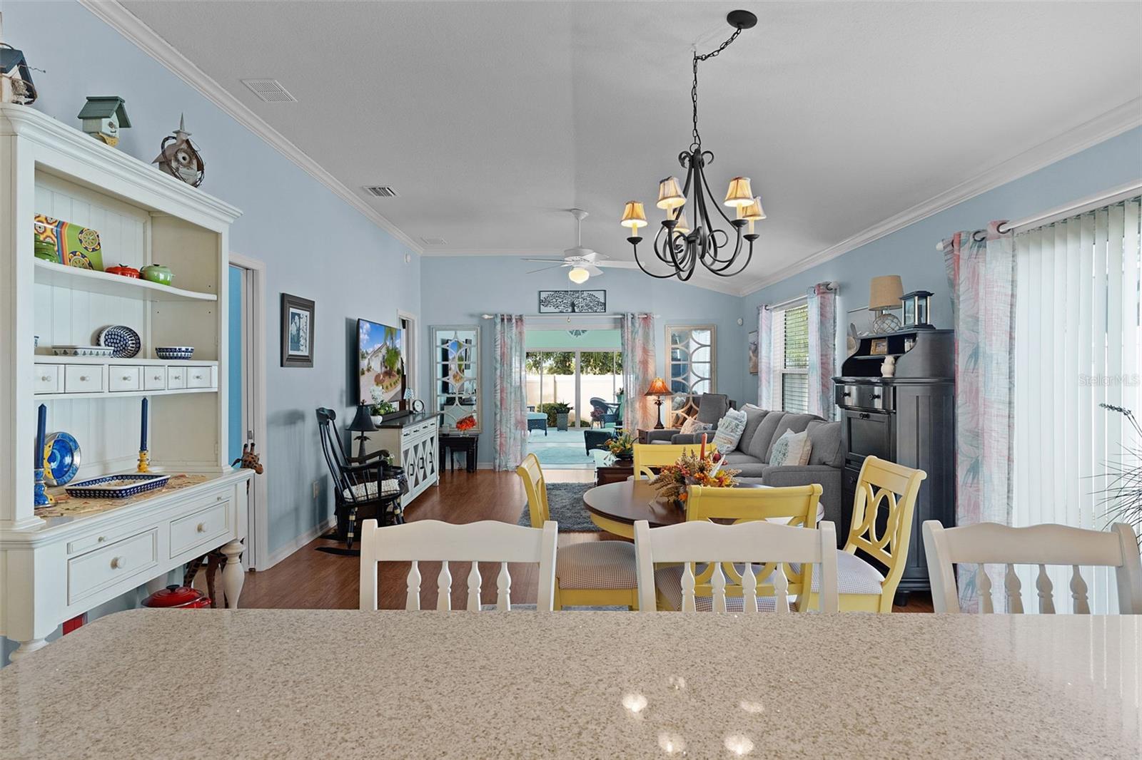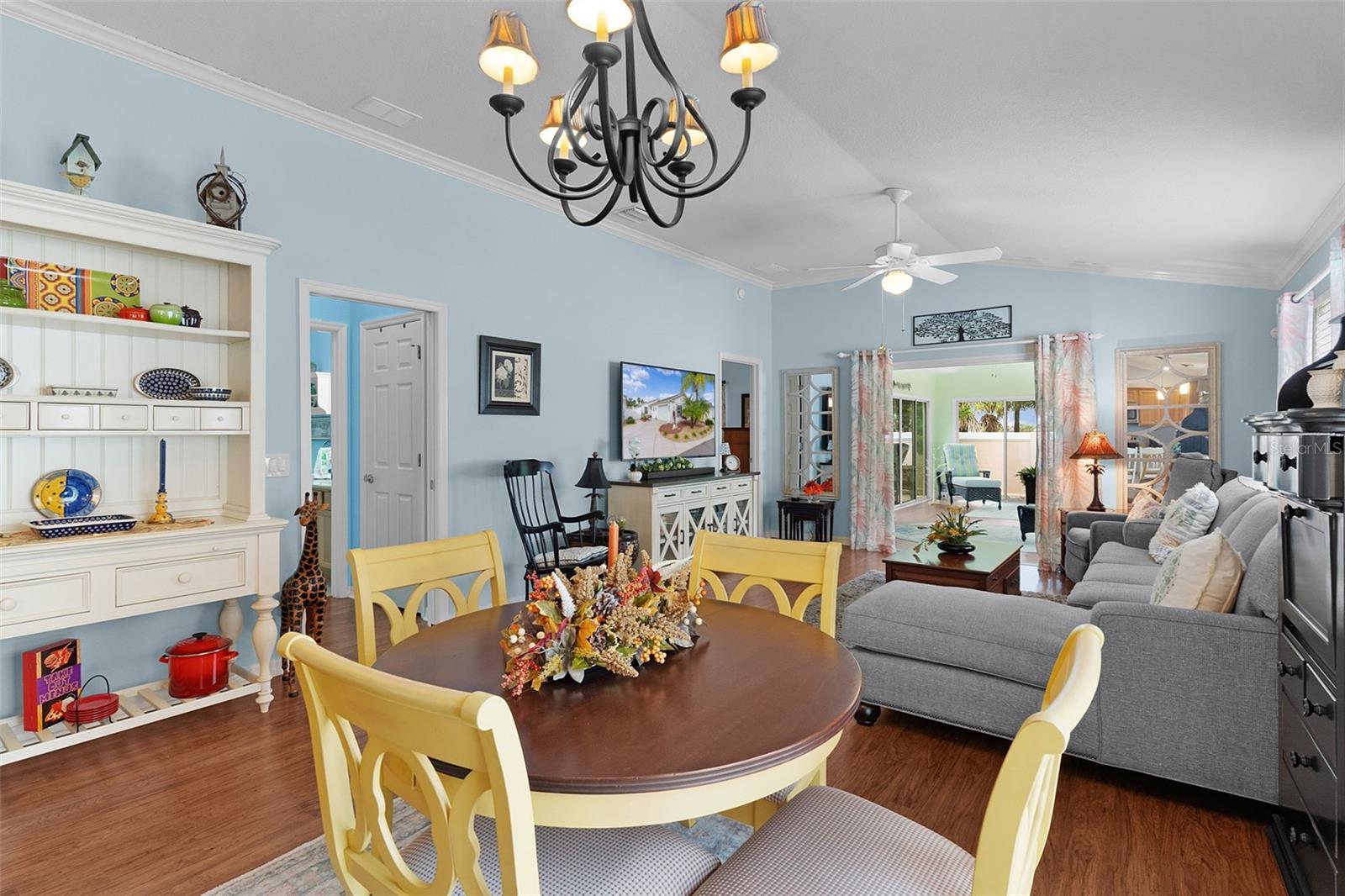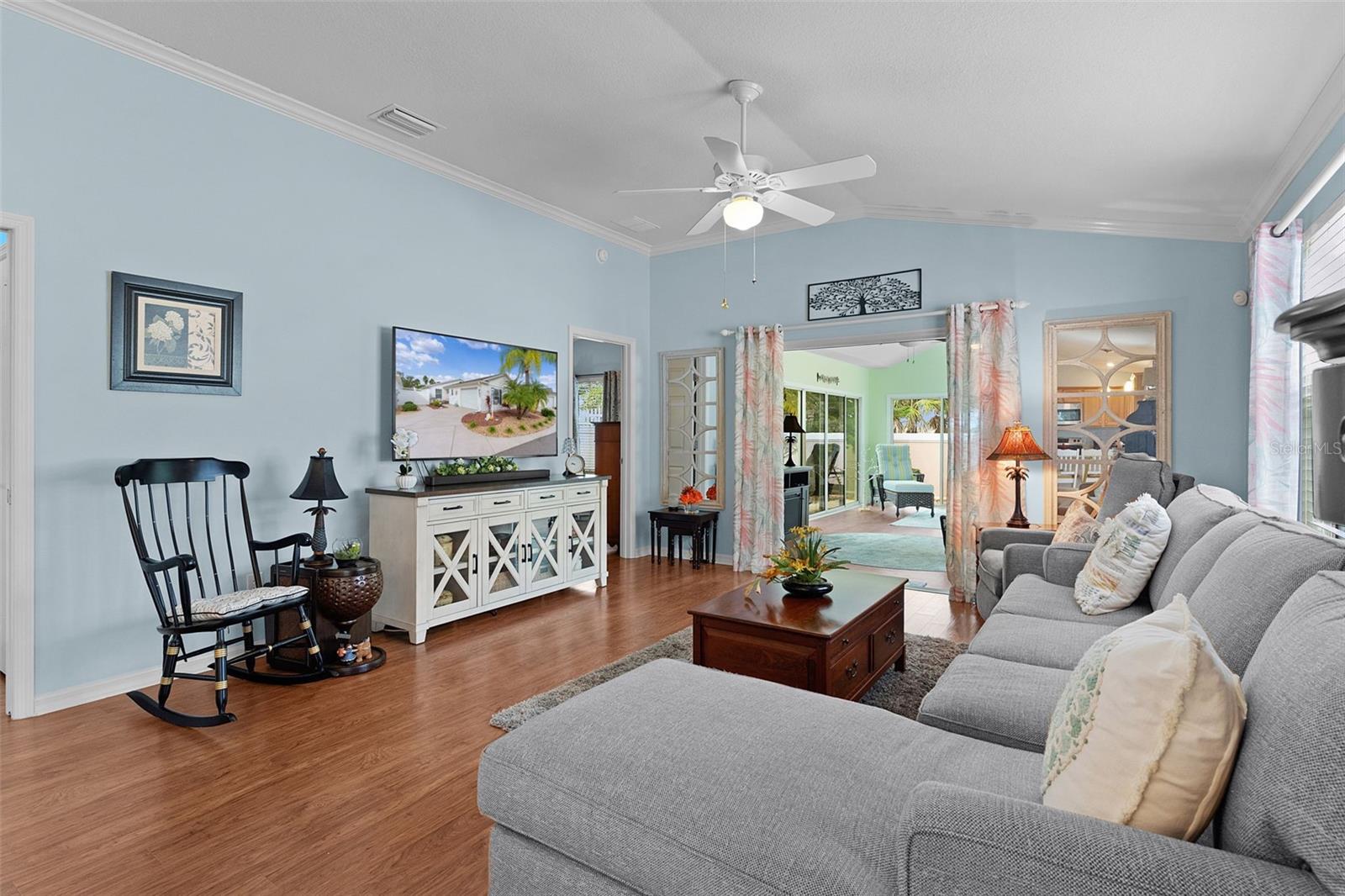 Ceiling Fans(s), Crown Molding, Living Room/Dining Room Combo, Open Floorplan, Stone Counters, Vaulted Ceiling(s), Walk-In Closet(s), Window Treatments