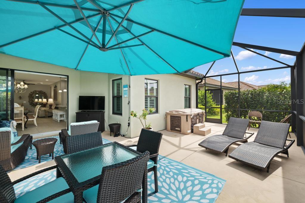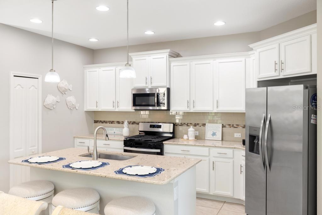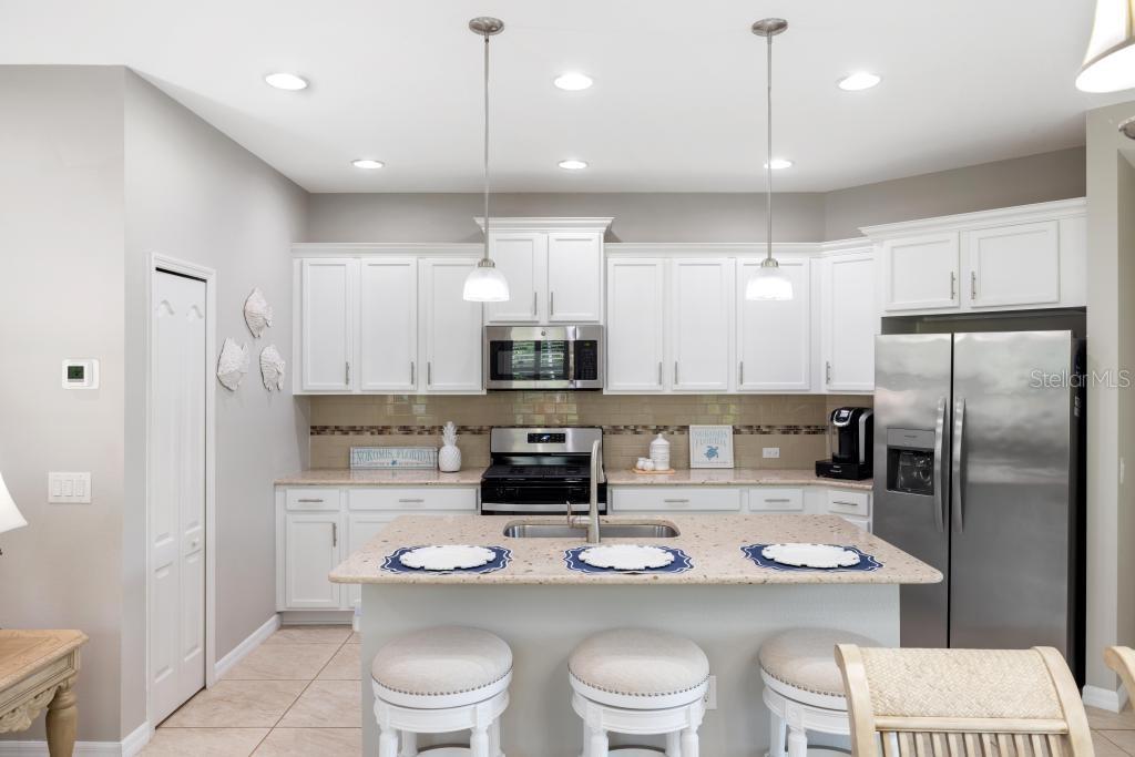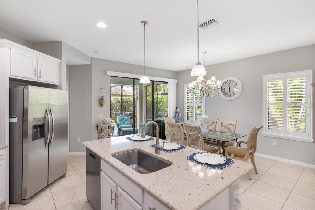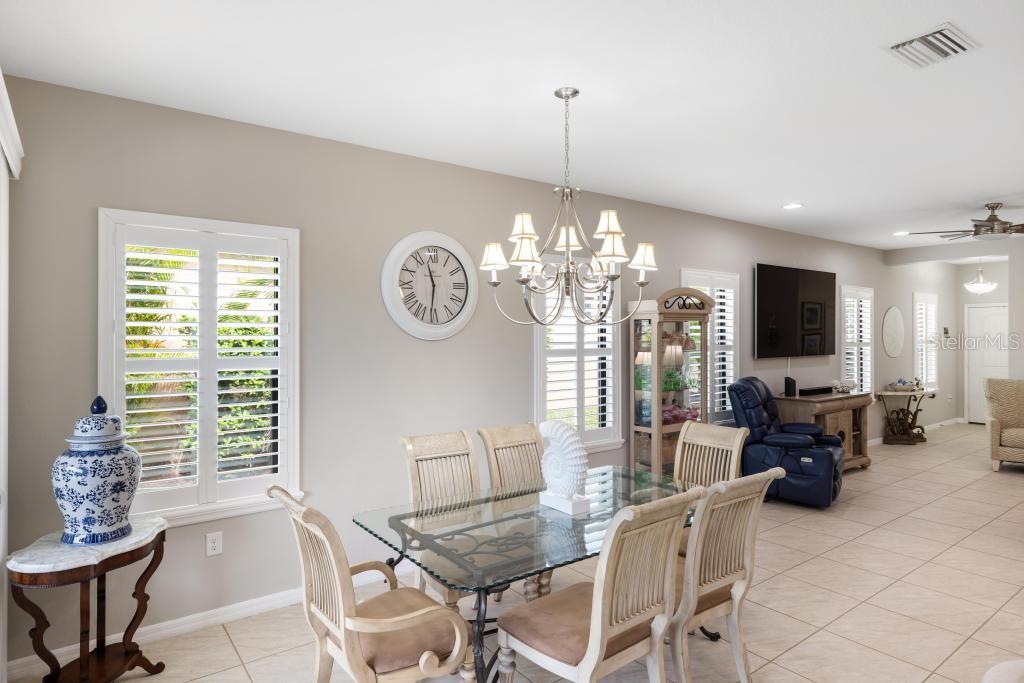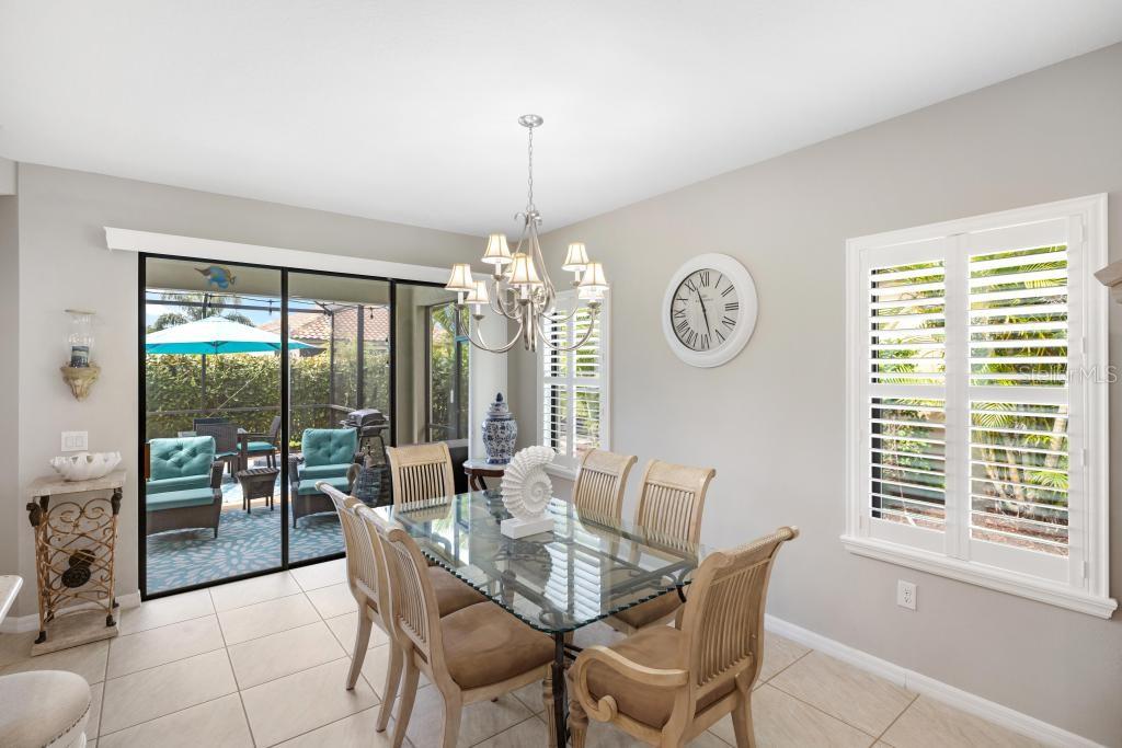 This 3 bedroom, 2 bath Patriot floorplan by Neal Communities offers 1, 685 sq ft of thoughtfully designed living space and sits in an X FLOOD ZONE SO NO FLOOD INSURANCE IS REQUIRED. A rare find in Nokomis, the home features NATURAL GAS, including a gas range that cooks will love. The kitchen features granite countertops, a spacious center island with sink and counter seating, a tile backsplash, a Frigidaire refrigerator (2023), and a brand new GE dishwasher (Sept 2025). The dining area includes a large chandelier and opens seamlessly to the EXPANDED SCREENED LANAI through sliding glass doors. The open great room layout is perfect for entertaining, while the primary suite includes a walk in closet and walk in shower. One secondary bedroom has been transformed into a DREAM CUSTOM WALK IN CLOSET, offering boutique style storage, yet can easily be converted back if desired. Plantation shutters and a custom lanai slider shade add stylish touches. Washer and dryer are included. Owners love the quiet neighborhood near I-75 and the oversized lanai for outdoor living. Milano is a gated, Tuscan inspired community with resort style amenities including a clubhouse, resort pool and spa, hot tub, outdoor pavilion with fireplace, dog park, pickleball and bocce courts, and an on site lifestyle director offering weekly activities.