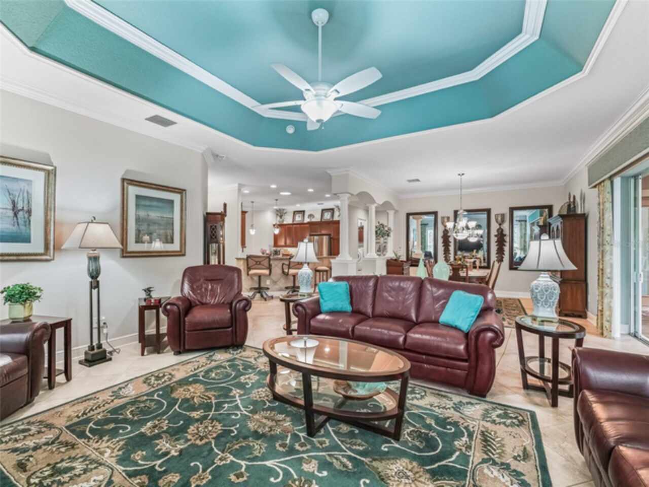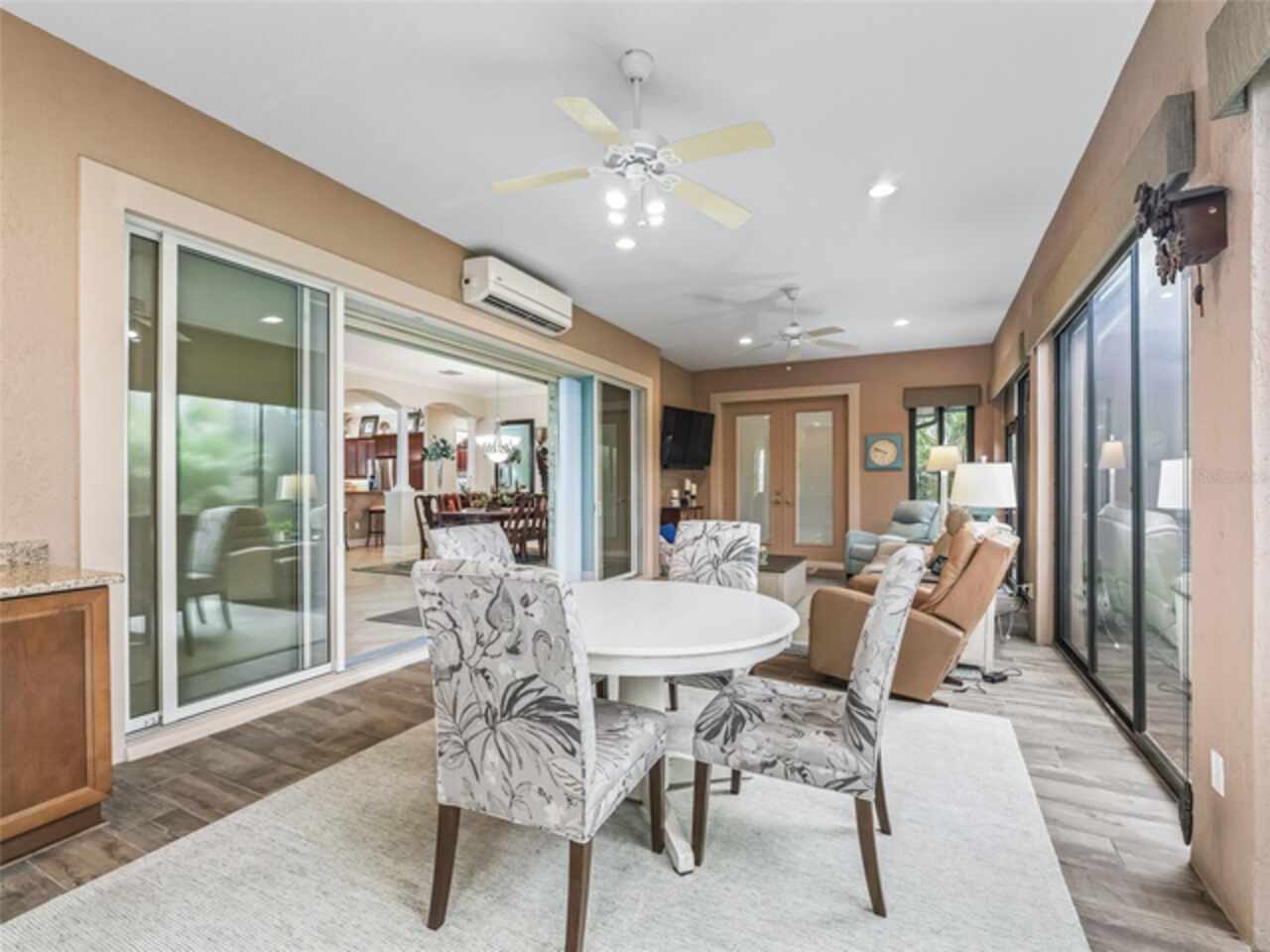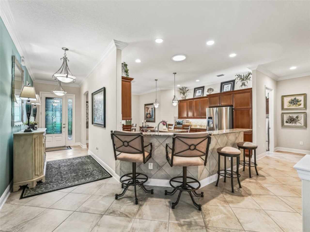 This is a BIG DEAL the price just dropped. Located in the desirable Villages of Pinellas, this beautiful Premier Williamsburg home has 2683 square feet. This home puts you in the middle between Brownwood Square and Lake Sumter Landing. Step into luxury at its best from the moment you enter this indoor/outdoor entertainer's paradise with spacious rooms and crown molding throughout. The kitchen includes a breakfast nook, granite countertops, beautiful wood cabinets with numerous rollouts, and an instant hot water faucet. The primary bedroom is oversized with tray ceilings. The dining room, living room, and enclosed lanai with remote control blinds and mini bar with ice maker are an entertainer's dream. There is room for a pool outside the very large, screened patio. If you're looking for that oversized garage it is here. There is a Home Warranty, Choice Warranty that is transferrable and good until May 2030. There is no carpet in the home, and it has beautiful wood flooring and tile. Don't miss this gorgeous home! It is exactly what you've been looking for. We have a new HVAC, just installed with a warranty that is transferrable to the new owners. Today is the best time to view this home. It is a beautiful retreat for relaxing and perfectly located for easy access to Brownwood Square and Lake Sumter Landing. Shopping centers are close by in either direction. You are sure to be amazed with all these wonderful neighbors in the Village of Pinellas.