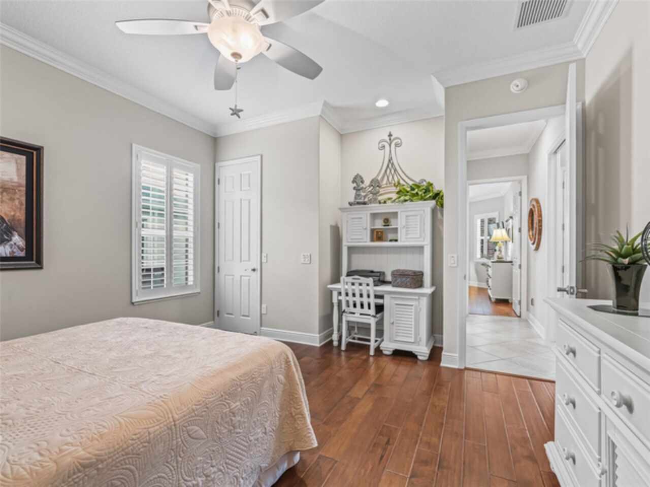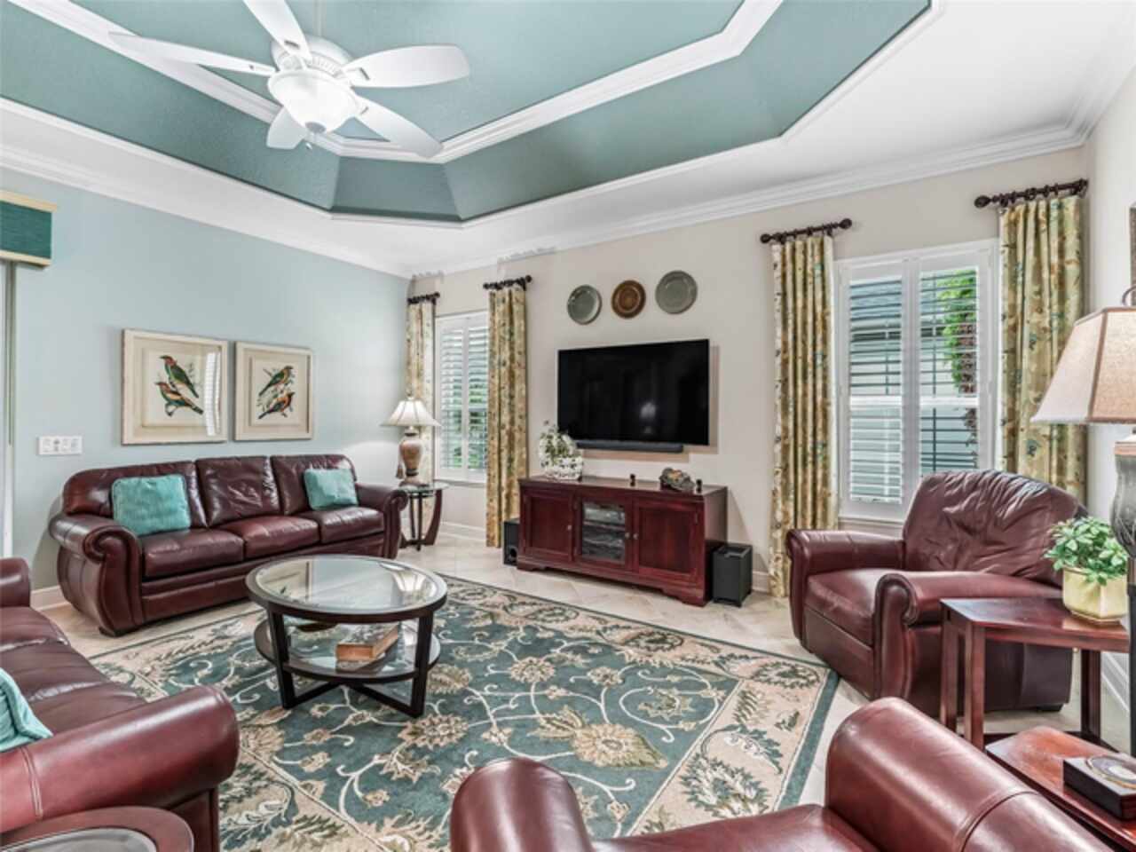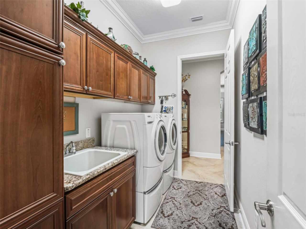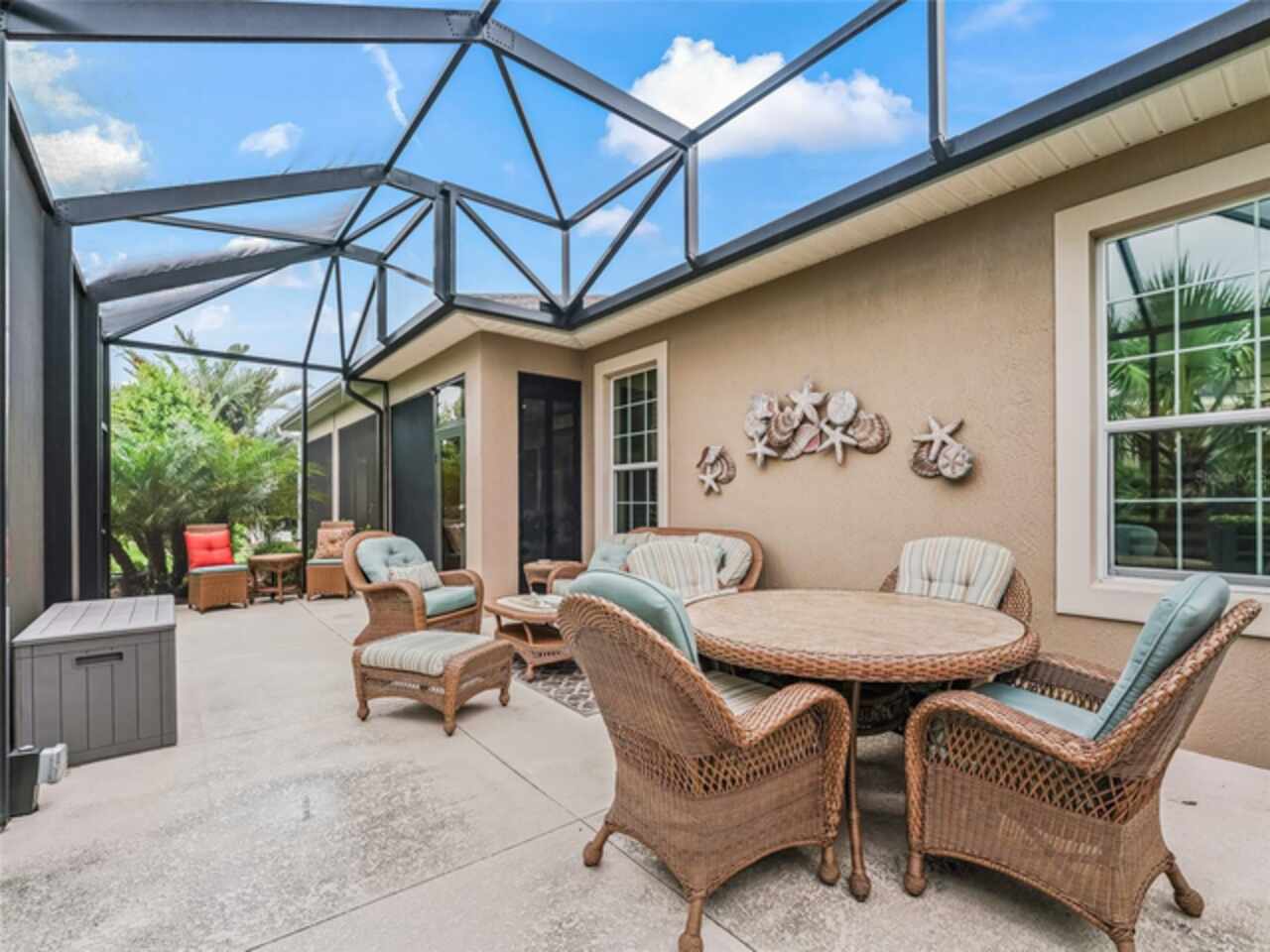 This is a BIG DEAL the price just dropped. Located in the desirable Villages of Pinellas, this beautiful Premier Williamsburg home has 2683 square feet. This home puts you in the middle between Brownwood Square and Lake Sumter Landing. Step into luxury at its best from the moment you enter this indoor/outdoor entertainer's paradise with spacious rooms and crown molding throughout. The kitchen includes a breakfast nook, granite countertops, beautiful wood cabinets with numerous rollouts, and an instant hot water faucet. The primary bedroom is oversized with tray ceilings. The dining room, living room, and enclosed lanai with remote control blinds and mini bar with ice maker are an entertainer's dream. There is room for a pool outside the very large, screened patio. If you're looking for that oversized garage it is here. There is a Home Warranty, Choice Warranty that is transferrable and good until May 2030. There is no carpet in the home, and it has beautiful wood flooring and tile. Don't miss this gorgeous home! It is exactly what you've been looking for. We have a new HVAC, just installed with a warranty that is transferrable to the new owners. Today is the best time to view this home. It is a beautiful retreat for relaxing and perfectly located for easy access to Brownwood Square and Lake Sumter Landing. Shopping centers are close by in either direction. You are sure to be amazed with all these wonderful neighbors in the Village of Pinellas.