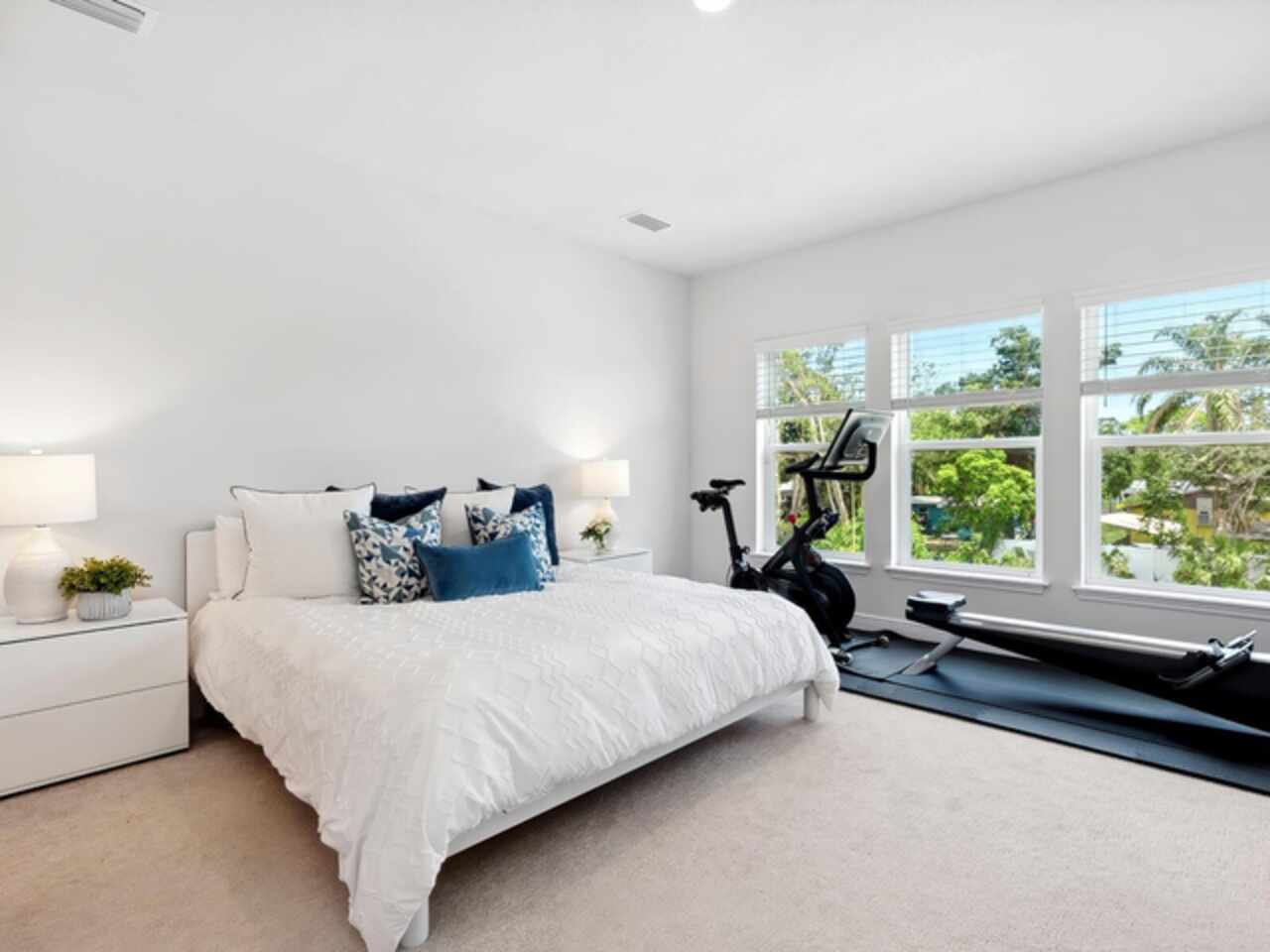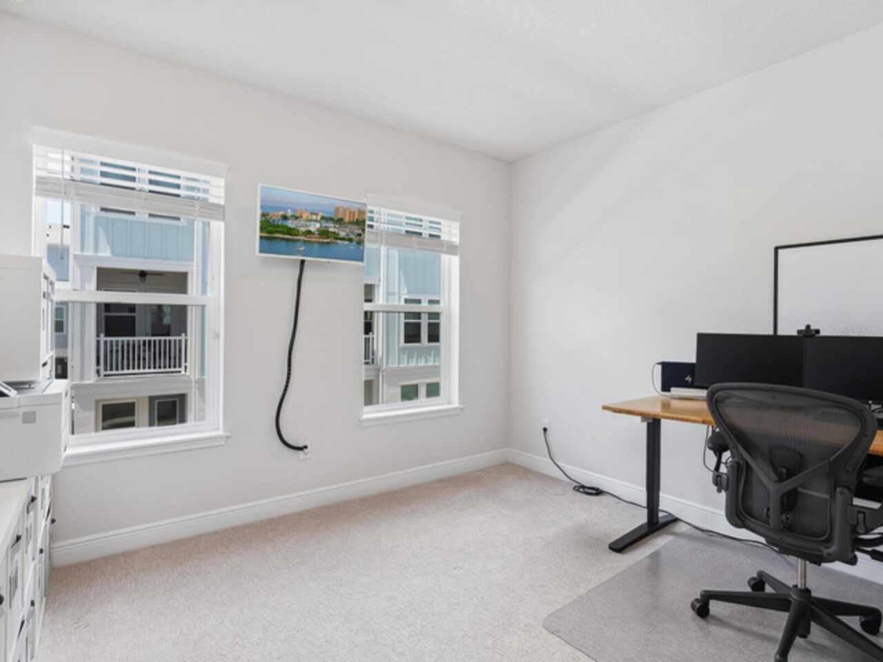 Under contract-accepting backup offers. Welcome to this beautifully designed David Weekley home, in the desirable Payne Park Village in the heart of Sarasota. Built in 2020, this exceptional single-family residence features the unique and thoughtfully designed Littlebury floor plan, offering four bedrooms, 3.5 baths and approximately 2, 711 square feet of sophisticated living space across three expansive levels. The first floor serves as the central gathering place of the home, boasting an open-concept layout that seamlessly connects the family room, gourmet kitchen and outdoor living space. At the center of the home, the gourmet kitchen impresses with white solid wood cabinetry, gleaming quartz countertops, and a suite of stainless-steel appliances, including a built-in oven, microwave, refrigerator and an electric cooktop. A large undermount apron-front farmhouse sink adds both charm and functionality, while the expansive island with seating provides a stylish hub for casual meals and conversation. Perfect for entertaining, this space flows effortlessly onto a newly enhanced outdoor living area featuring an oversized patio, lush tropical plantings, maintenance-free artificial turf and a privacy fence, ideal for relaxing or hosting gatherings year-round. Conveniently just off the kitchen, the attached two-car garage adds everyday practicality to this beautifully curated space and provides space for extra storage with two overhead storage racks. Many enhancements have been made with safety in mind, including hurricane-rated doors and impact windows, full home water system with a reverse osmosis system for drinking water and ultraviolet lights in the air conditioning space to avoid mold growth. Upstairs on the second floor, you'll find a serene and spacious primary suite flooded with natural light, soaring ceilings, a generous walk-in closet with custom built-ins, and a luxurious en-suite bath. The spa-like bath includes a double sink vanity, an oversized soaking tub and a sleek walk-in glass shower. Two additional guest bedrooms, a full bath, and a well-appointed laundry room complete this level. The third floor offers a private and flexible retreat, ideal for guests, a home office or media room. Here you'll find a 255-square-foot bonus room, the fourth bedroom with a walk-in closet, and another full bathroom with spacious, full double sink vanity, providing privacy and comfort. The neighborhood offers a large pool and dog park and is conveniently just steps from Payne Park, the Legacy Trail and moments from downtown Sarasota’s shopping, dining, cultural venues and Gulf Coast beaches, this home blends modern luxury with unbeatable convenience. Payne Park, formally a baseball spring training park, is now a 30-acre public park featuring a skateboard park, frisbee golf, tennis facilities, small waterpark and playground, an on-site café, and miles of recreational and biking paths around the park and lakes. Don't miss your opportunity to live in one of Sarasota’s most vibrant communities!